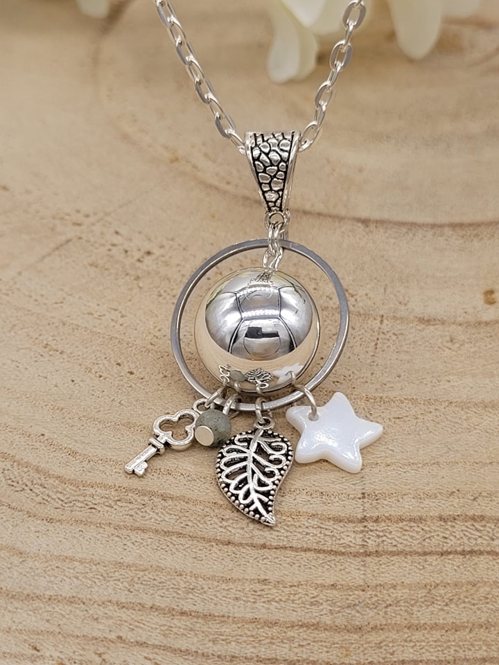 ✨ Bola de grossesse artisanal – Clé, feuille, étoile et labradorite ✨