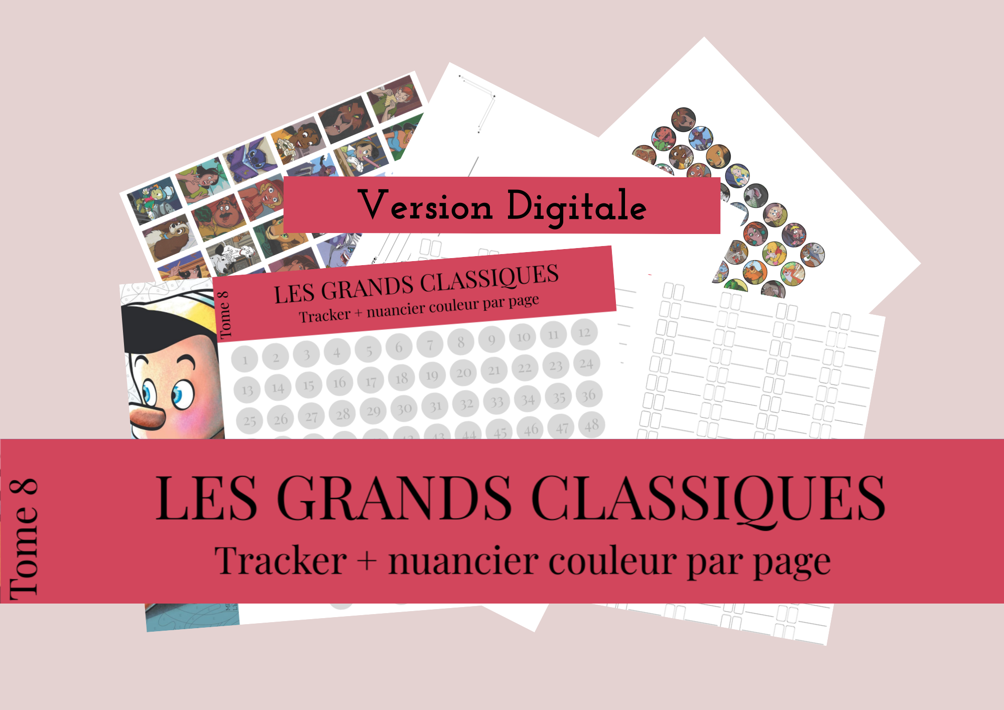 🖍️ Tracker + rond tracker et nuancier par page vierge + solution miniature pour chaque page de coloriages du tome 8 , numérique – Coloriage Mystère