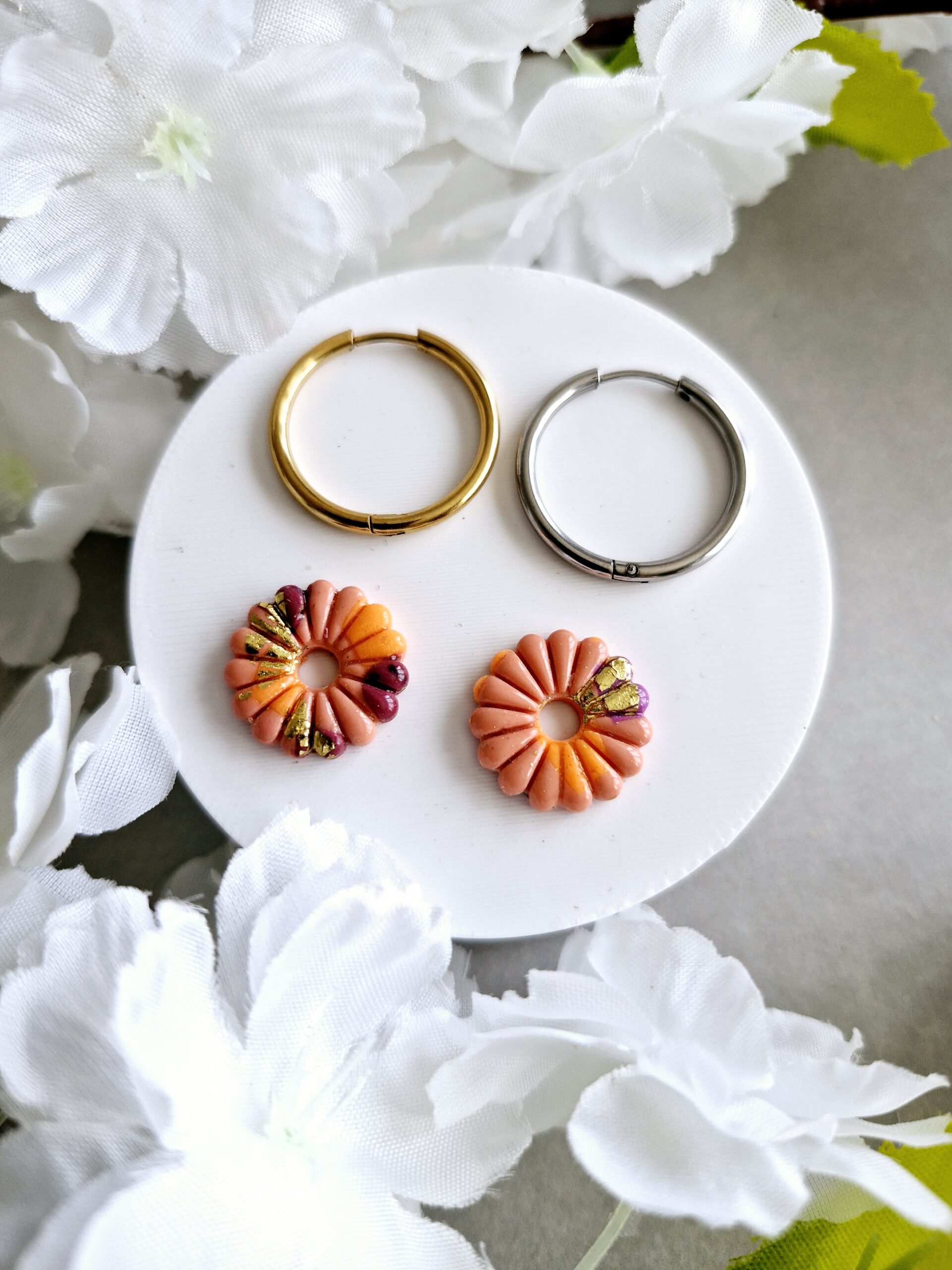 Ces pampilles en formes de fleurs sont réalisées à la main en pâte polymère, légères et agréables à porter.