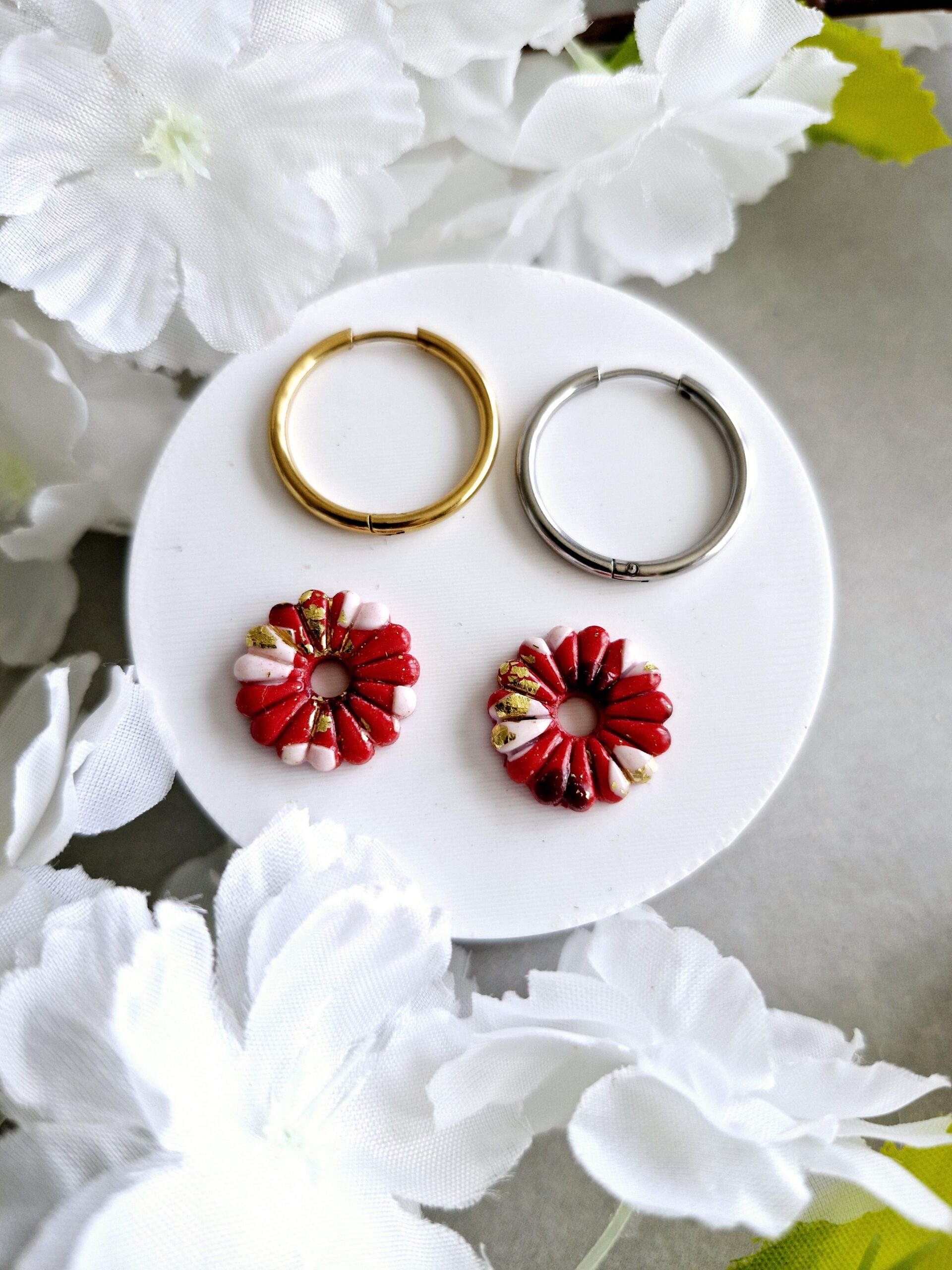 Ces pampilles en formes de fleurs sont réalisées à la main en pâte polymère, légères et agréables à porter.