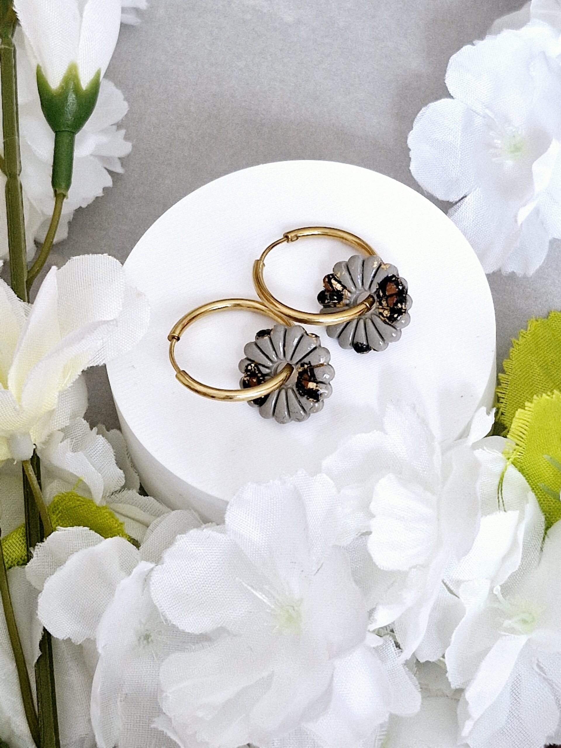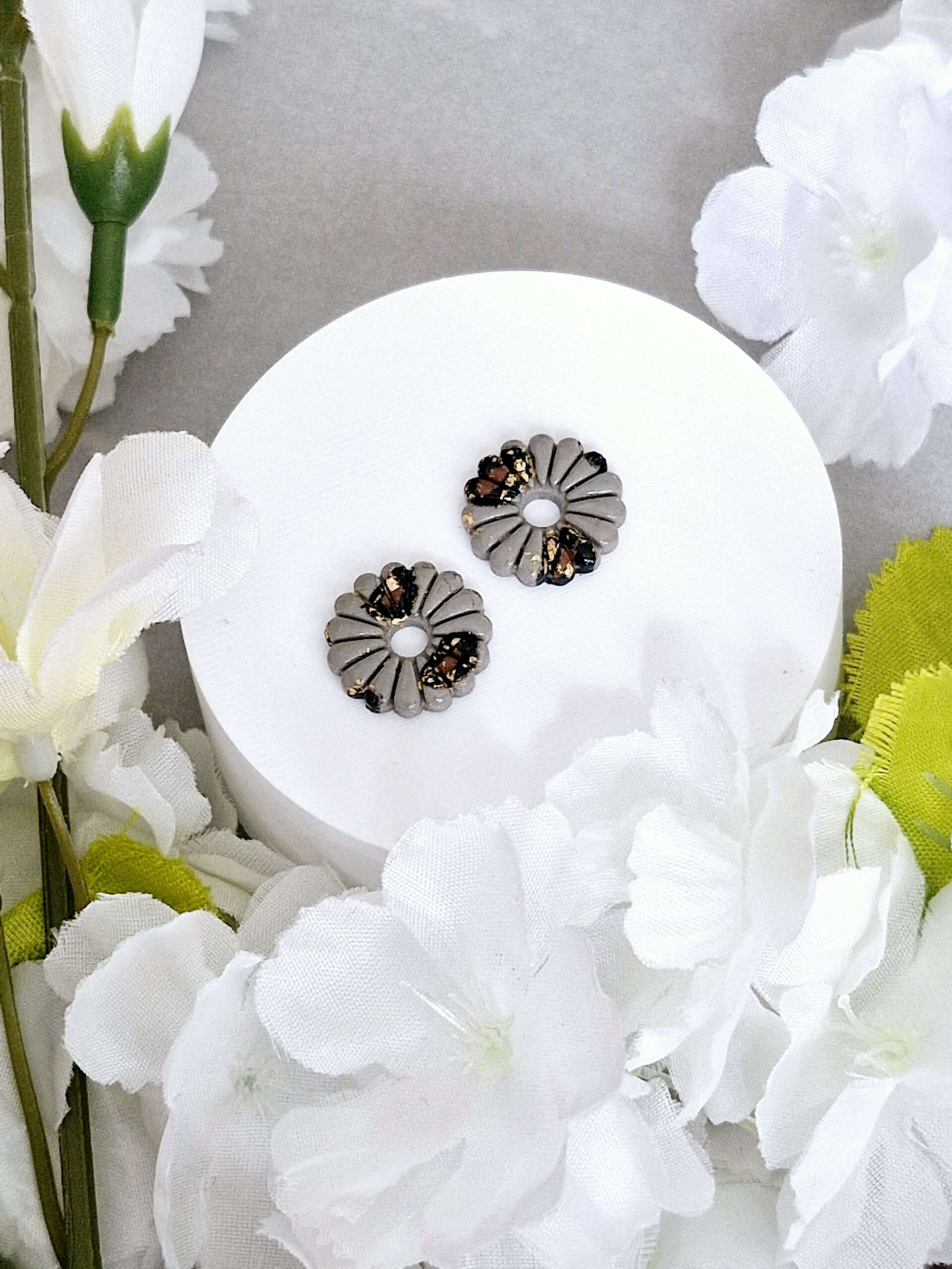 Ces pampilles en formes de fleurs sont réalisées à la main en pâte polymère, légères et agréables à porter.