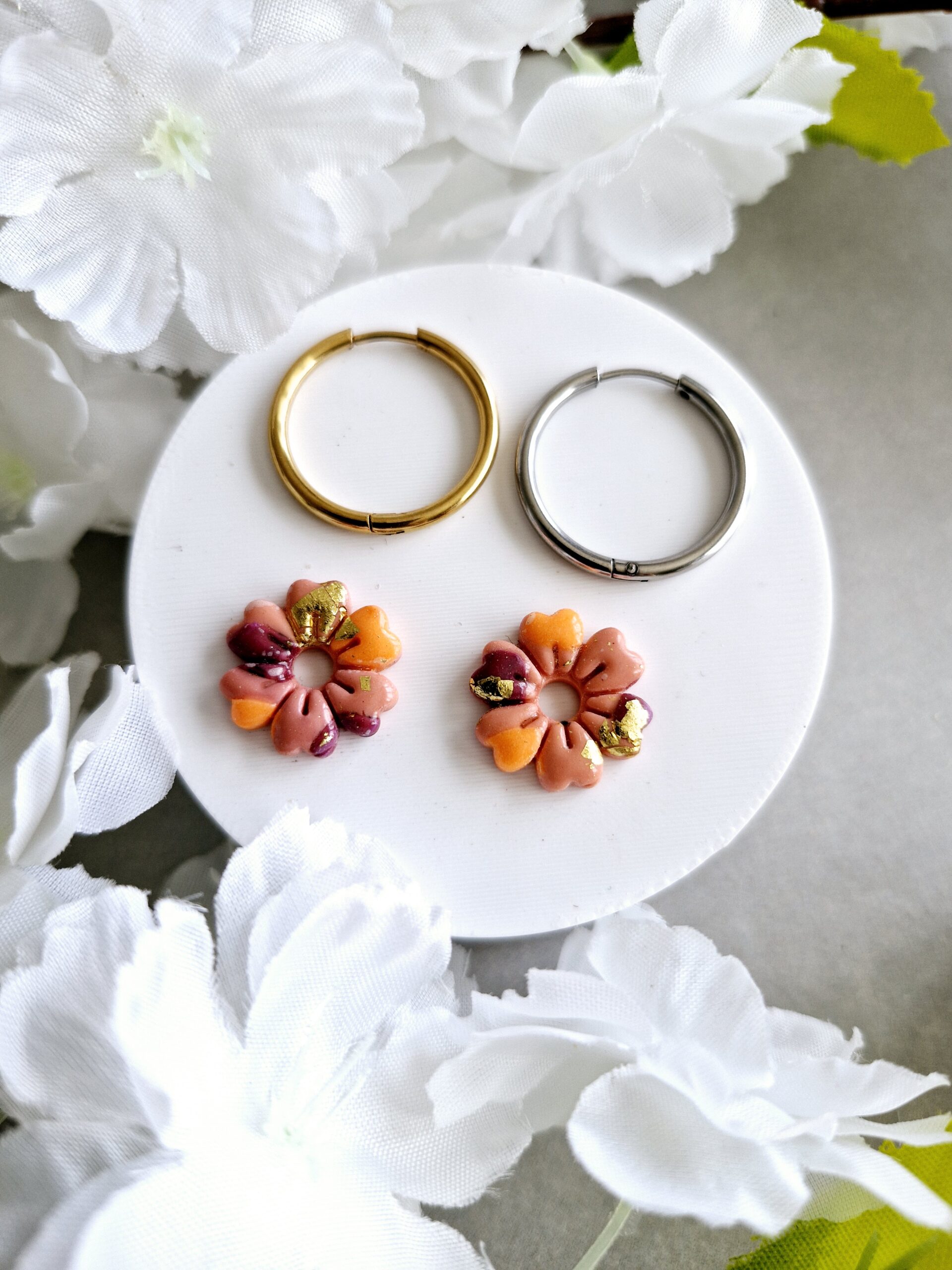 Ces pampilles en formes de fleurs sont réalisées à la main en pâte polymère, légères et agréables à porter.