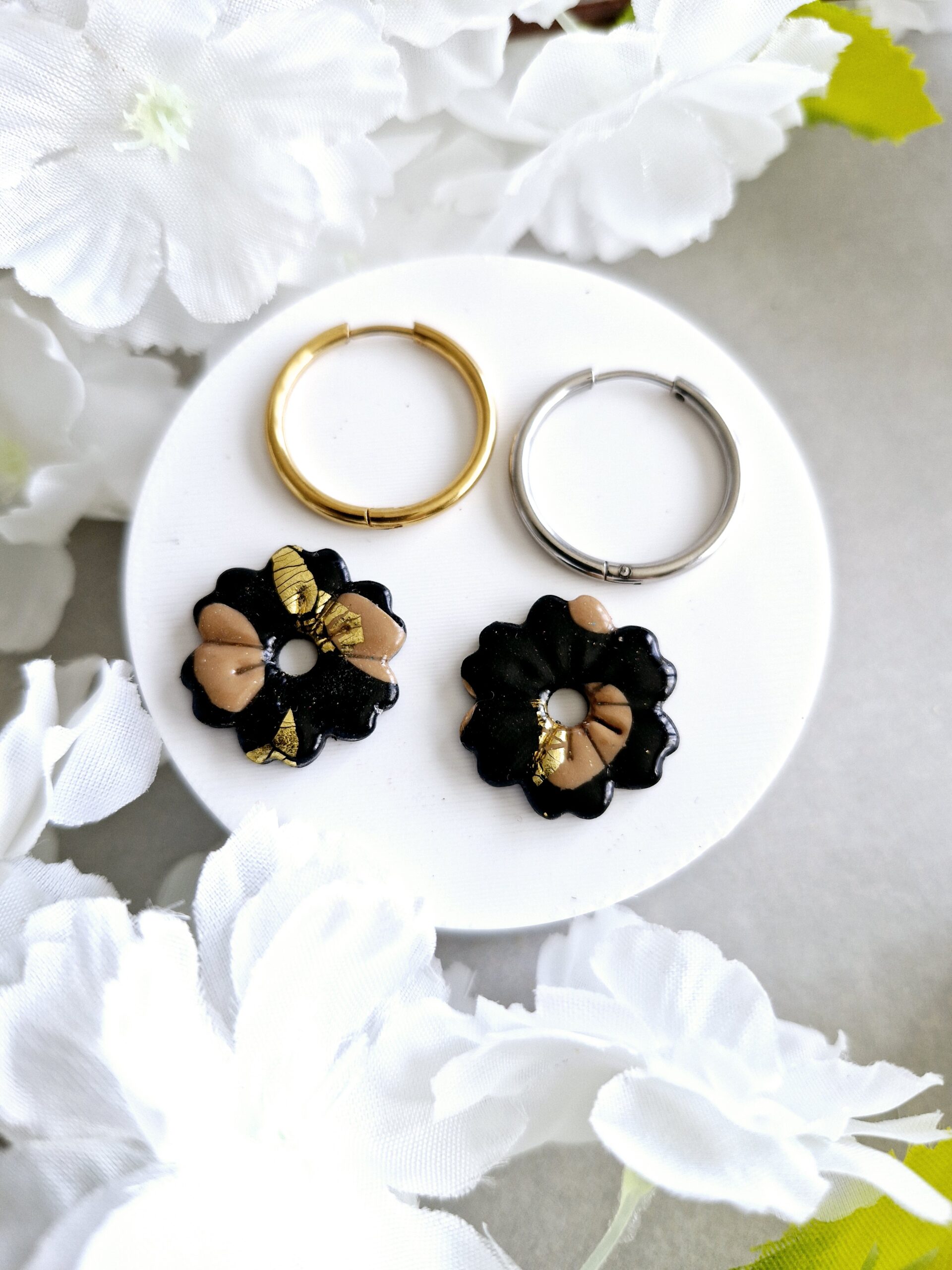 Ces pampilles en formes de fleurs sont réalisées à la main en pâte polymère, légères et agréables à porter.