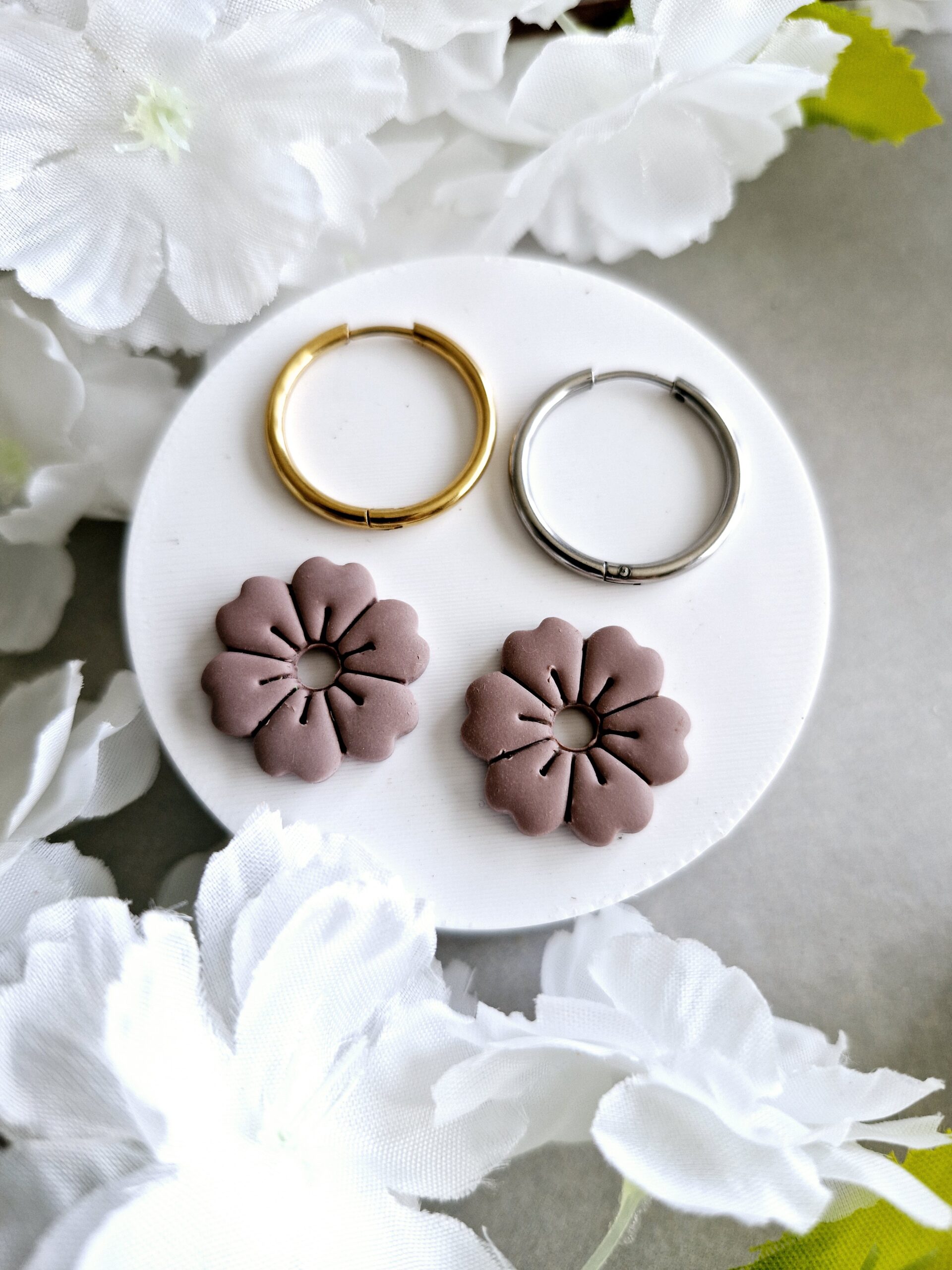 Ces pampilles en formes de fleurs sont réalisées à la main en pâte polymère, légères et agréables à porter.