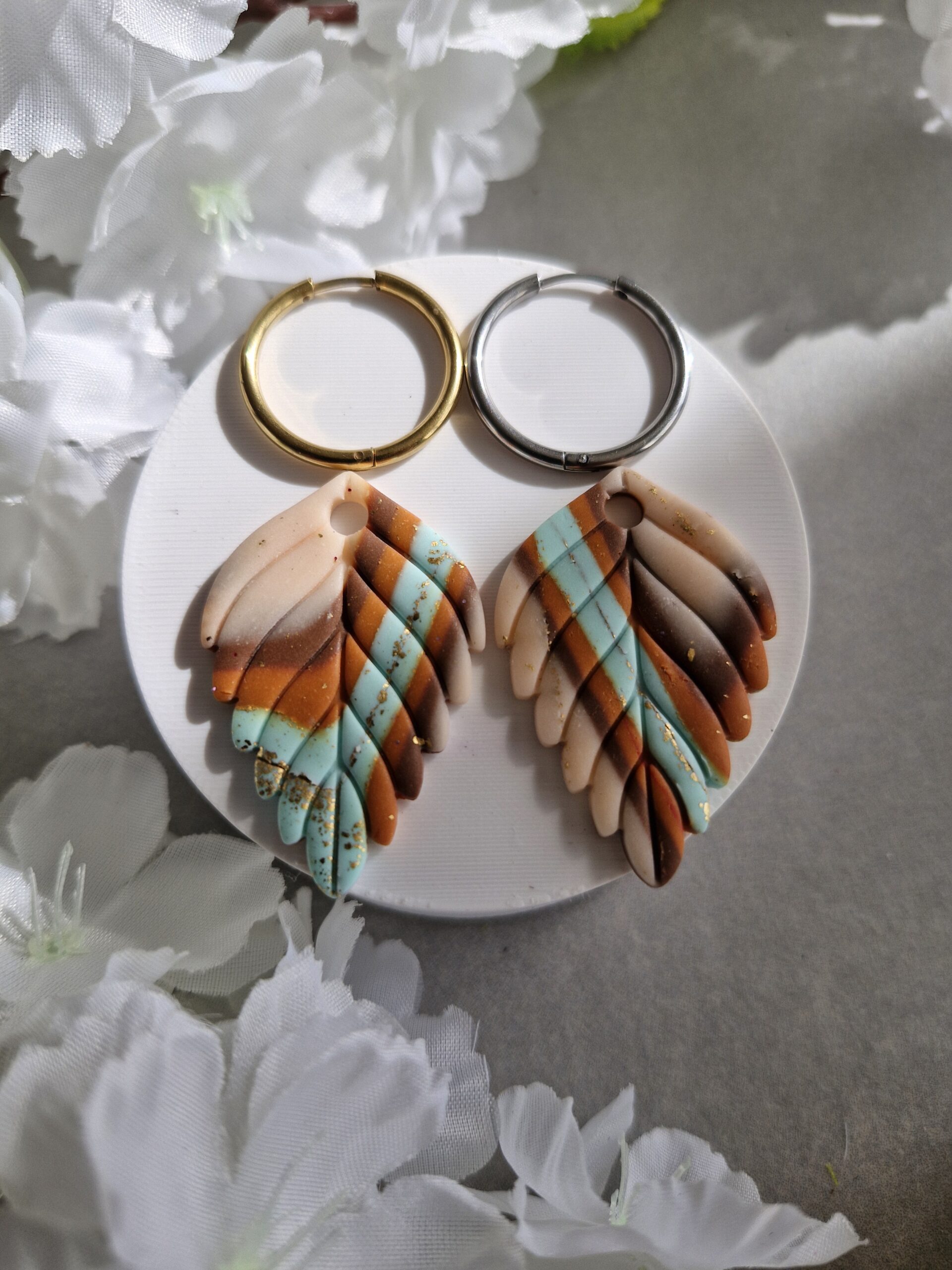 Ces pampilles en forme de feuilles sont réalisées à la main en pâte polymère, légères et agréables à porter.