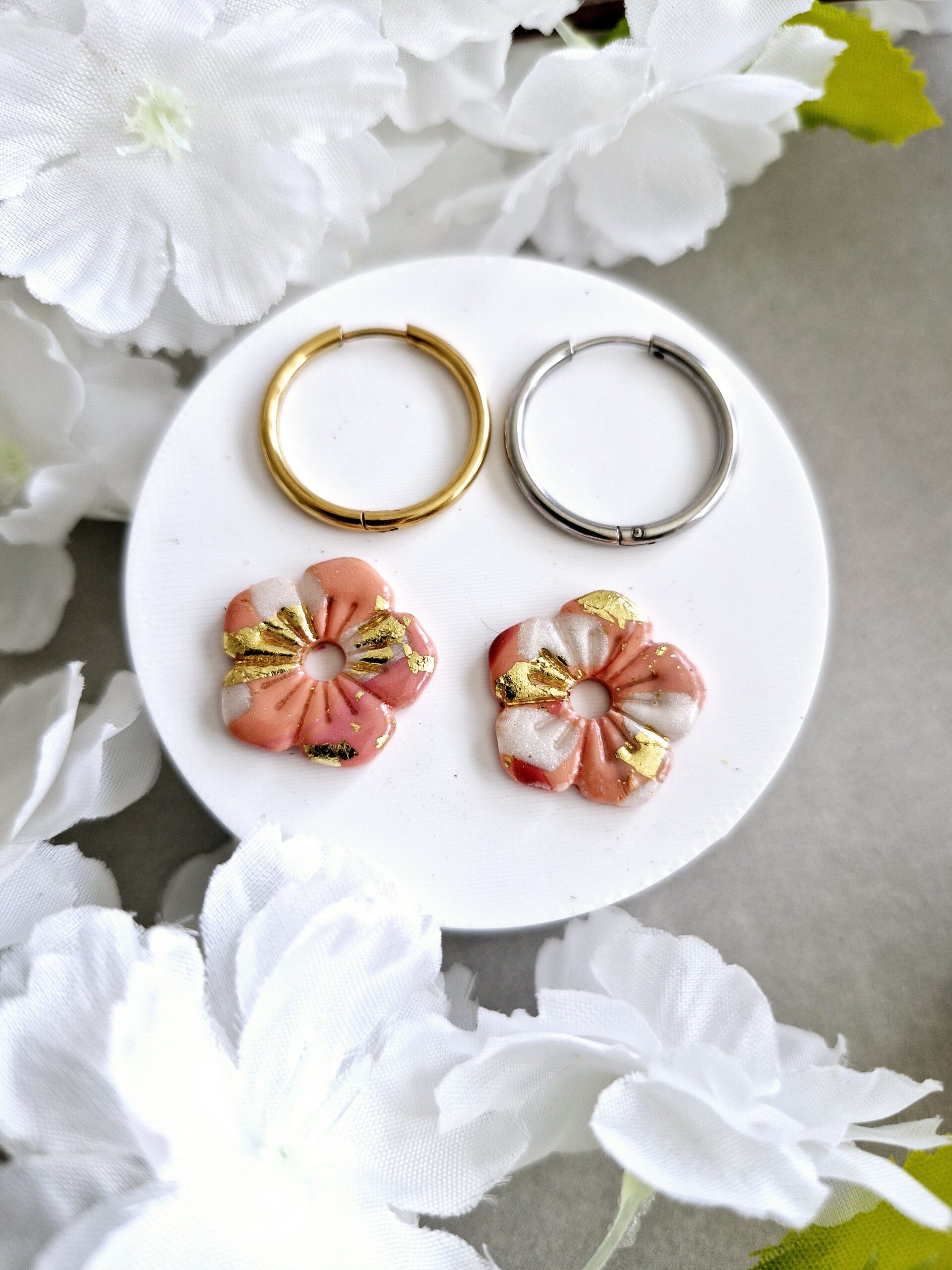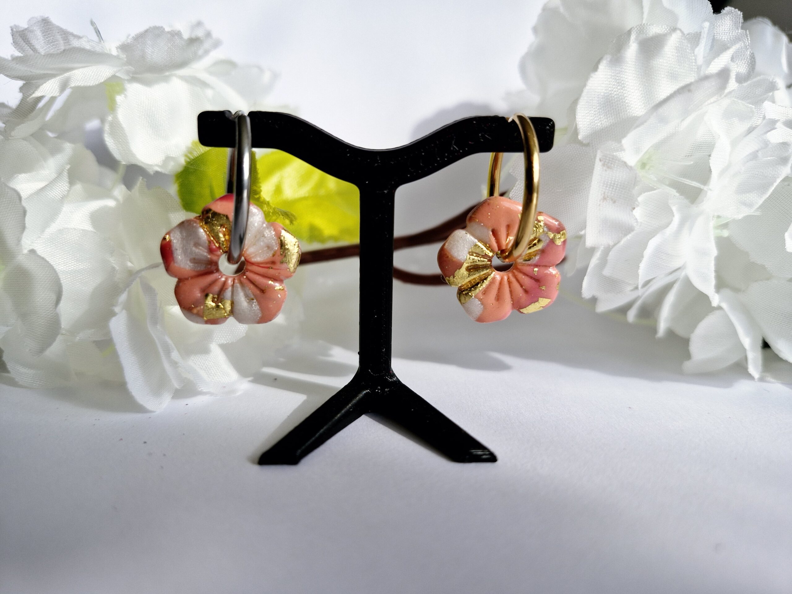 Ces pampilles en formes de fleurs sont réalisées à la main en pâte polymère, légères et agréables à porter.
