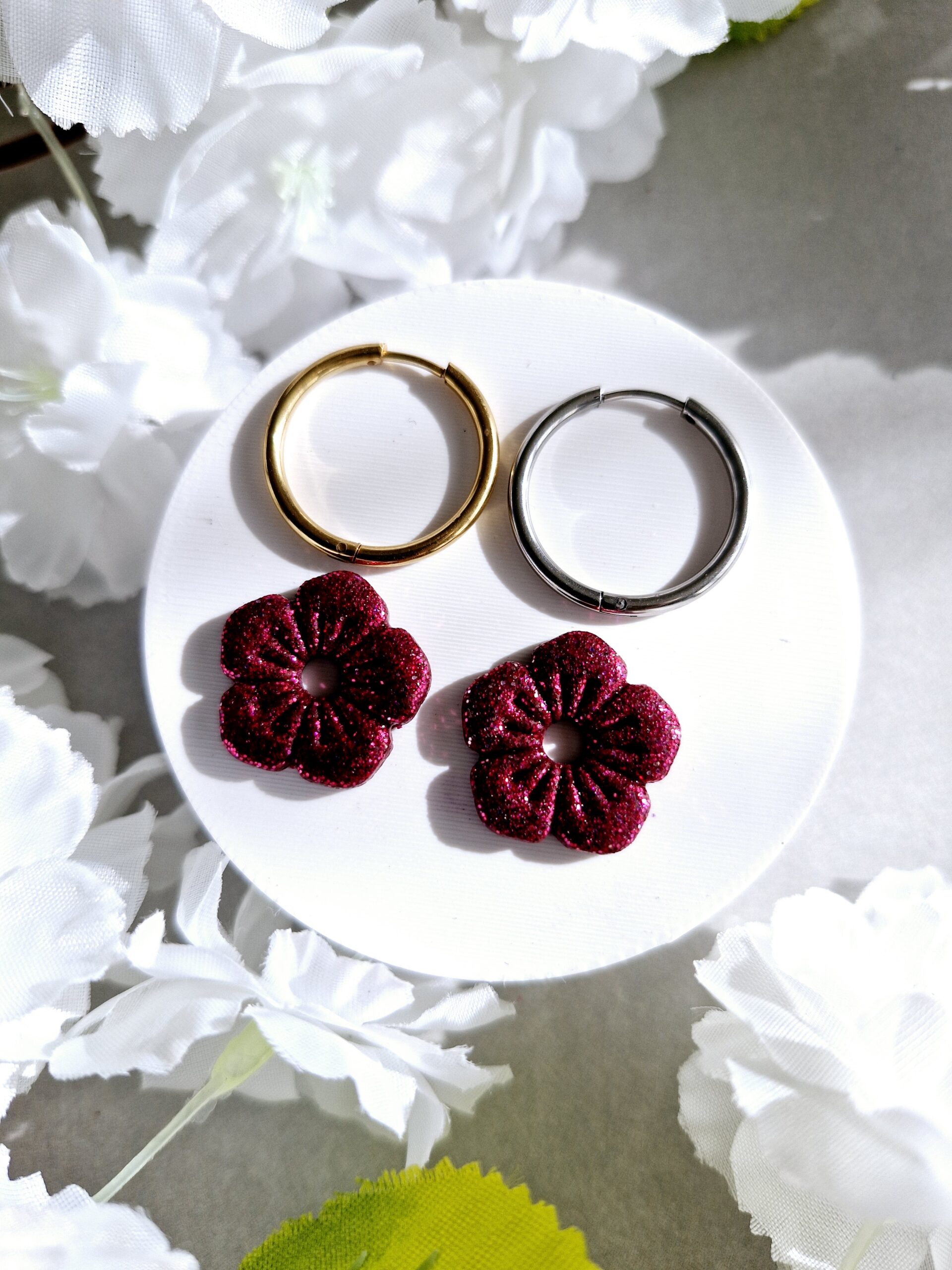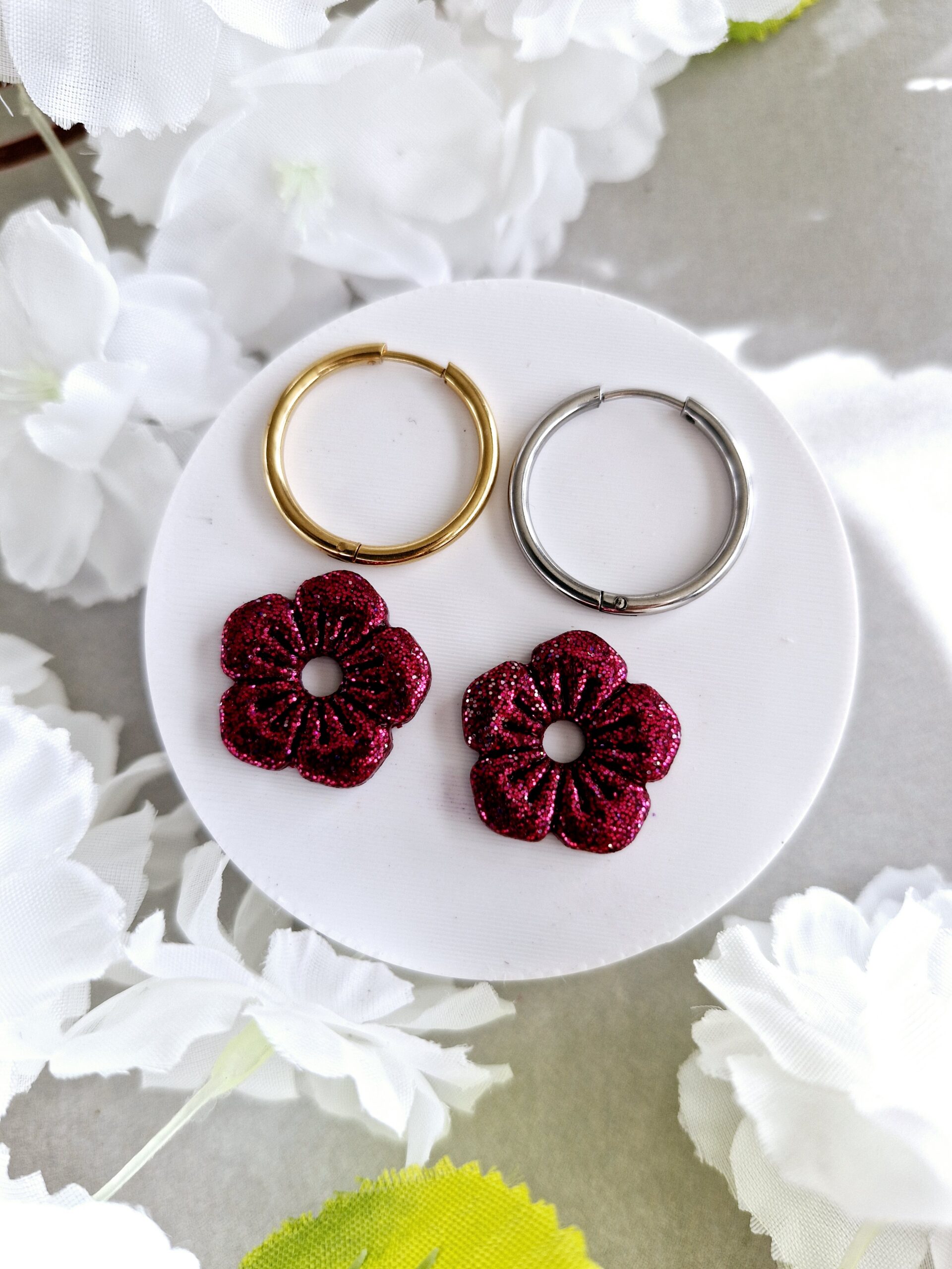 Ces pampilles en formes de fleurs sont réalisées à la main en pâte polymère, légères et agréables à porter.