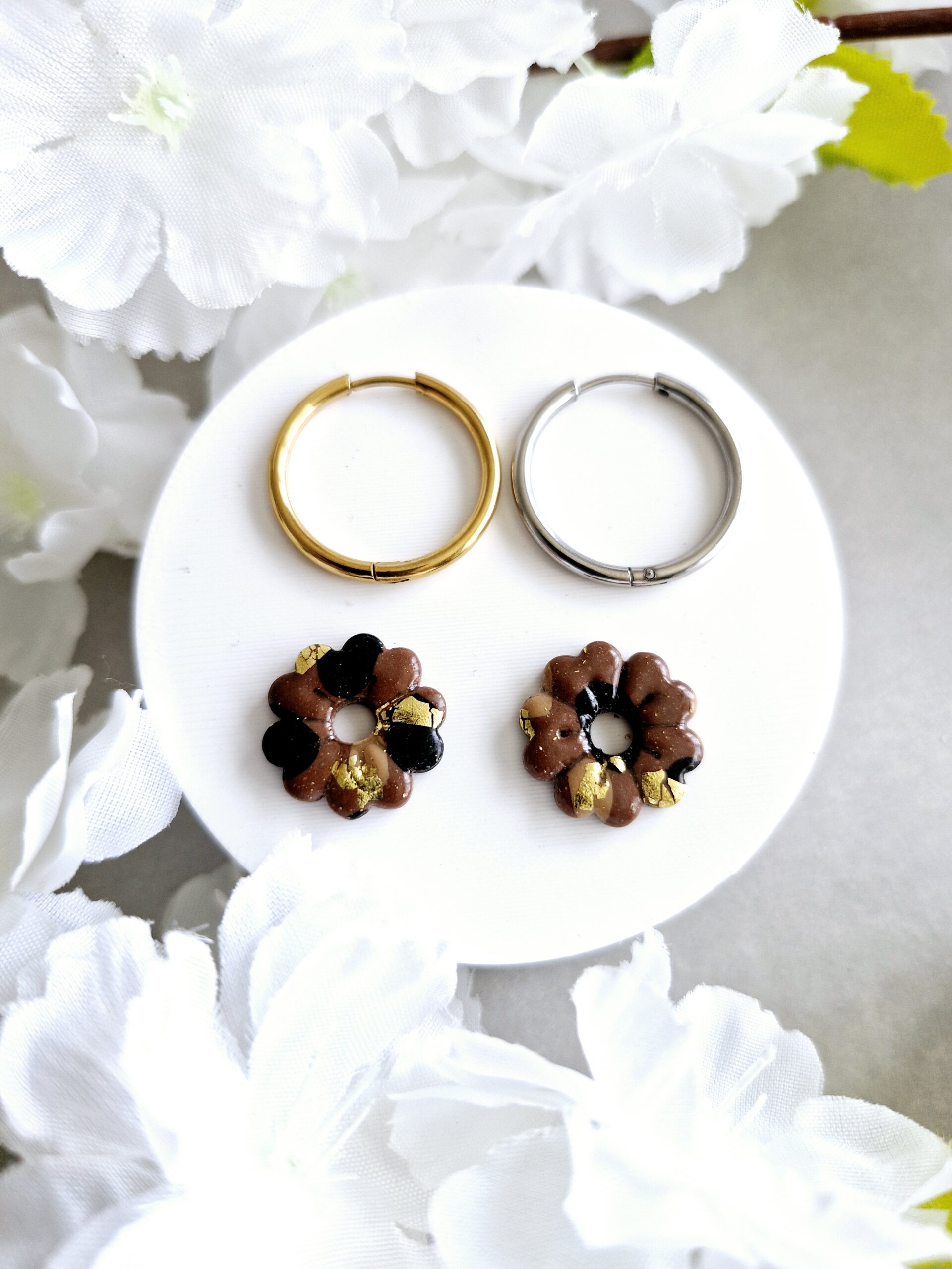 Ces pampilles en formes de fleurs sont réalisées à la main en pâte polymère, légères et agréables à porter.