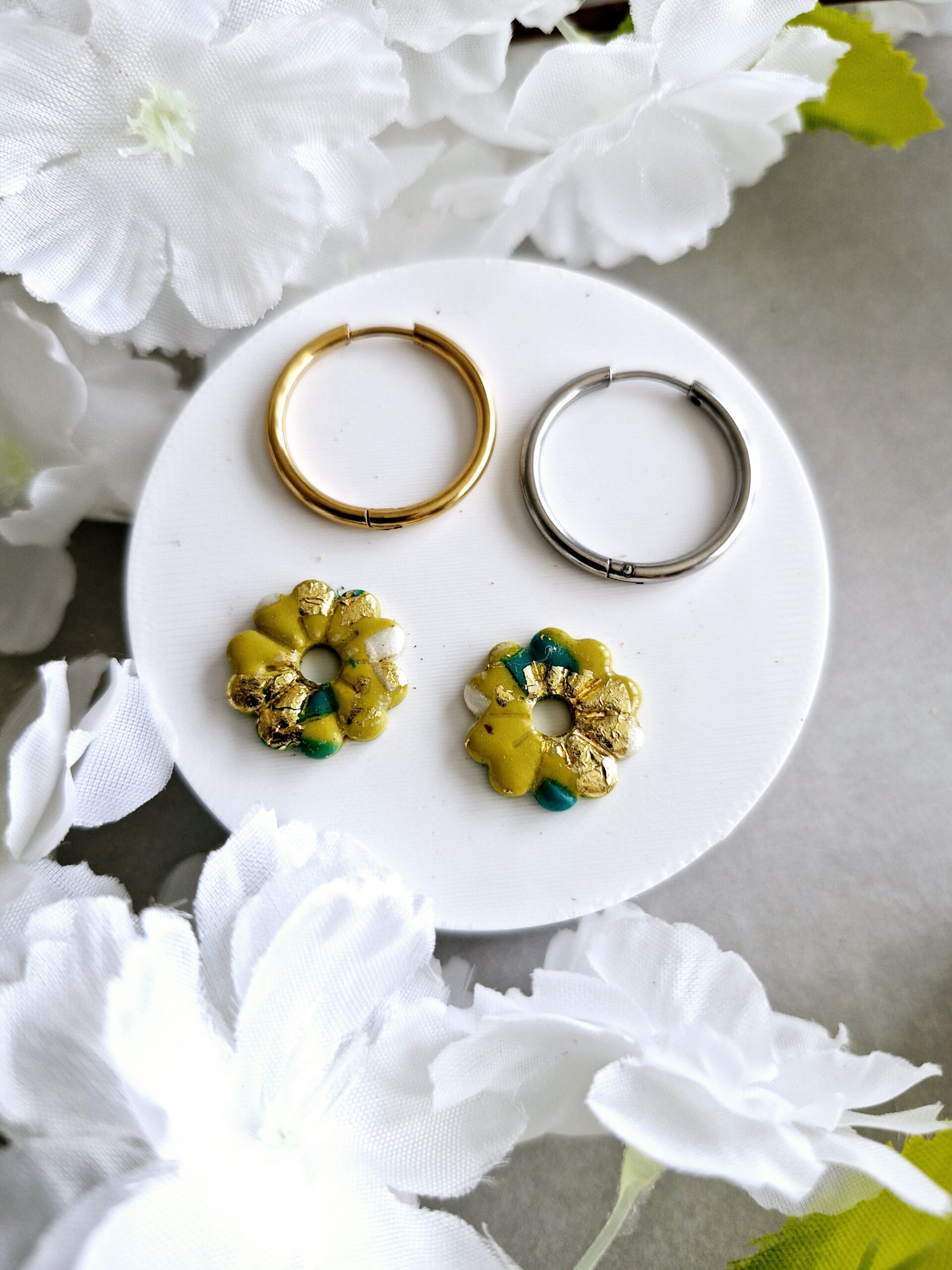 Ces pampilles en formes de fleurs sont réalisées à la main en pâte polymère, légères et agréables à porter.