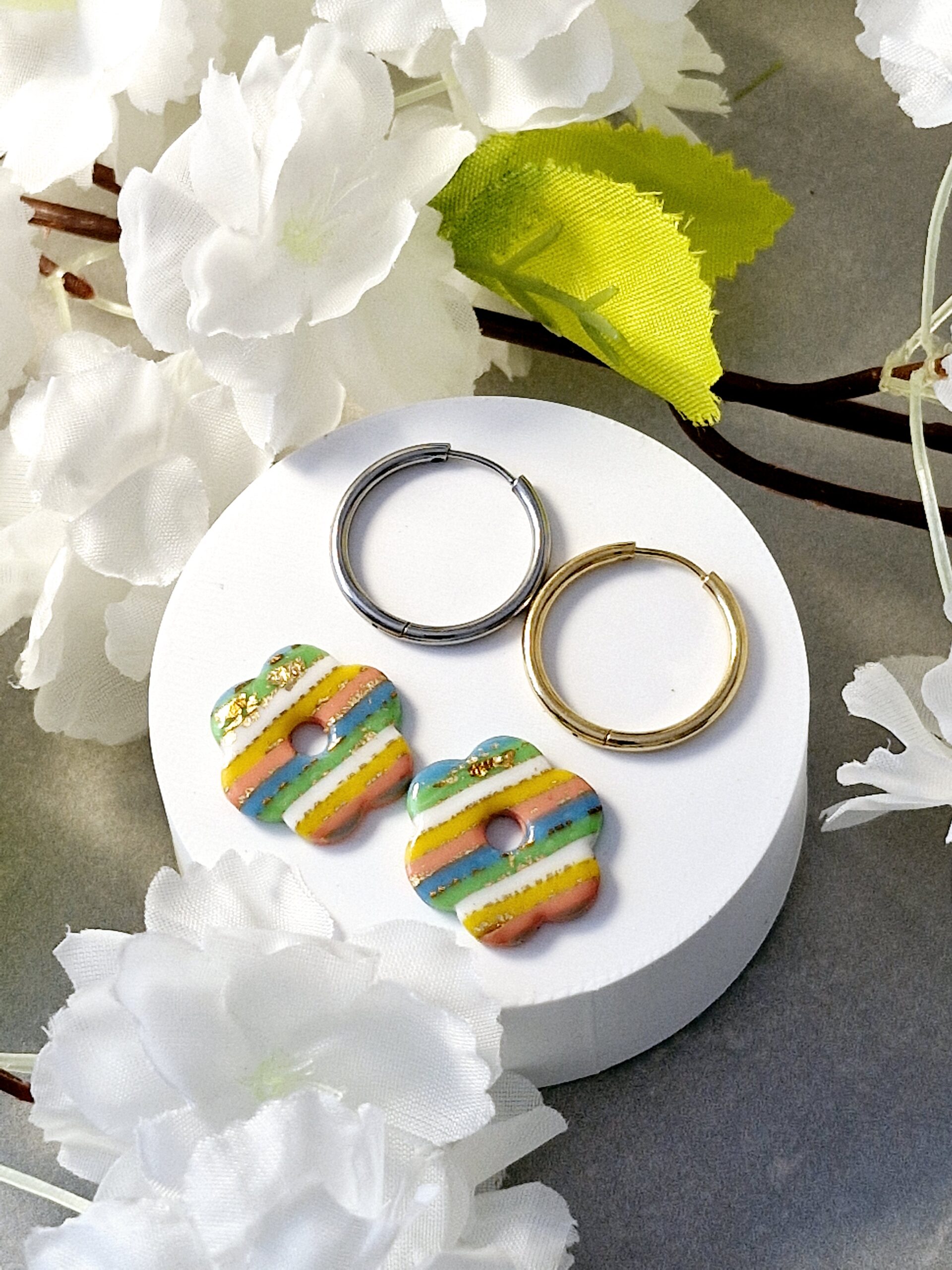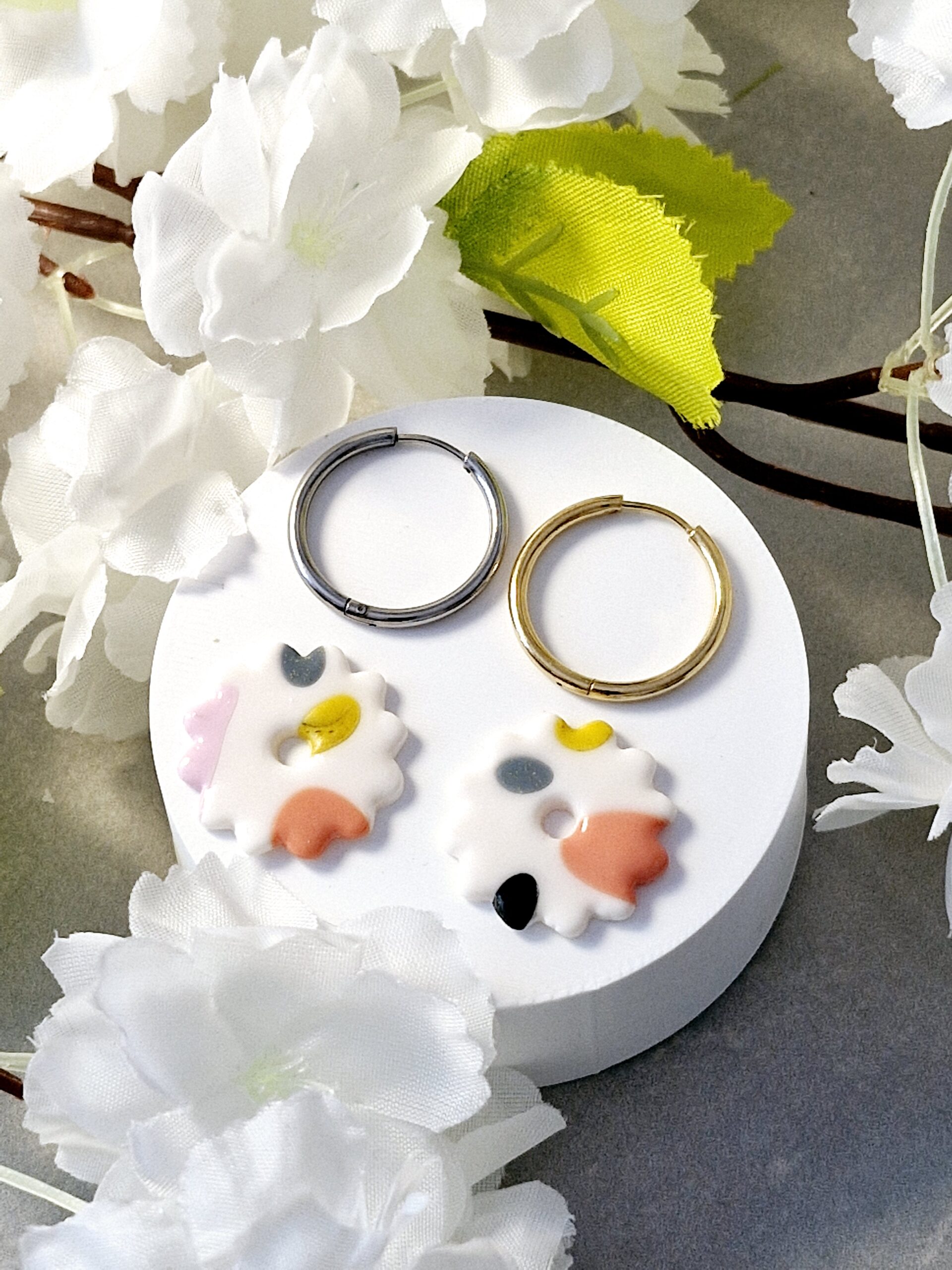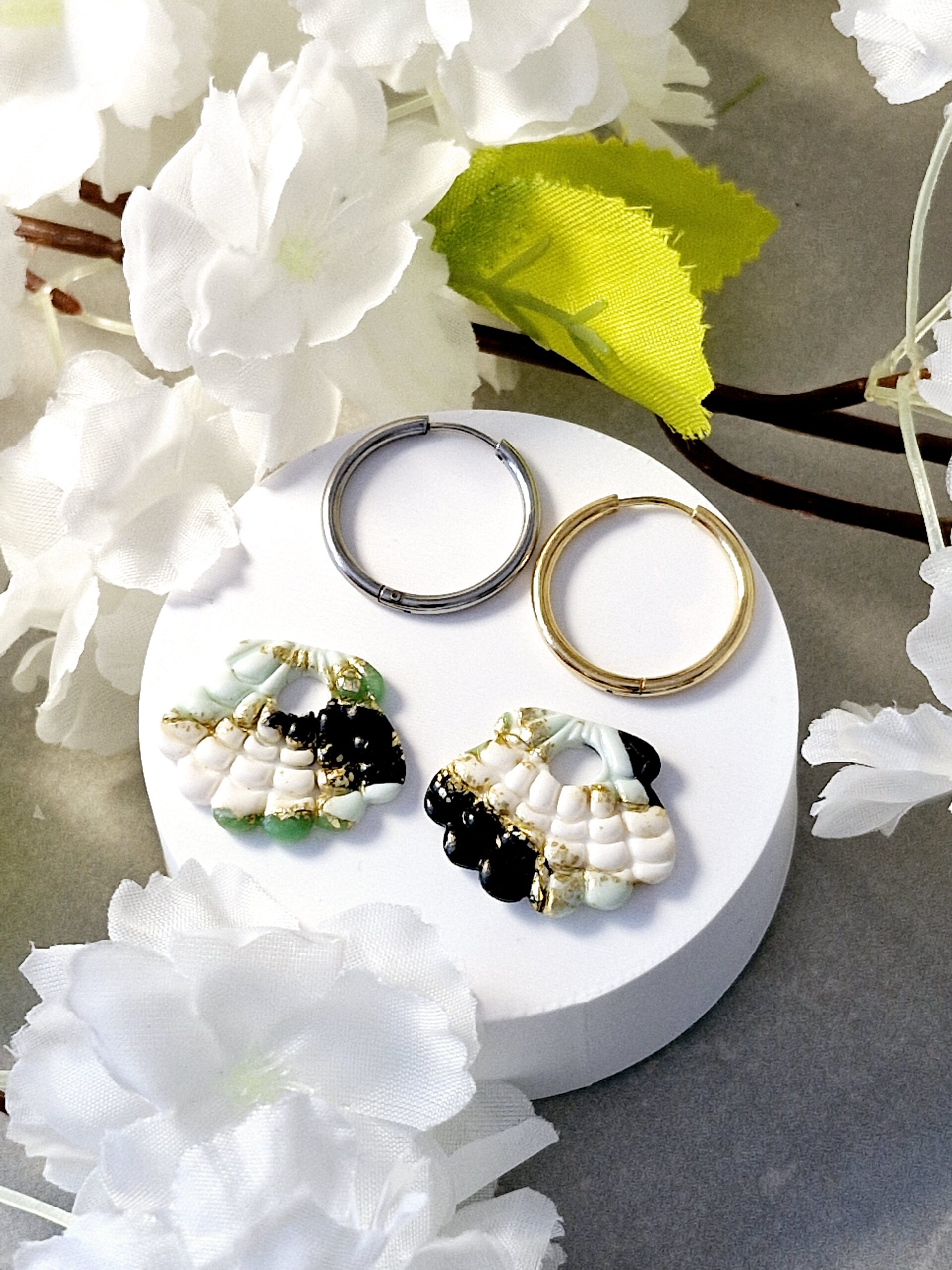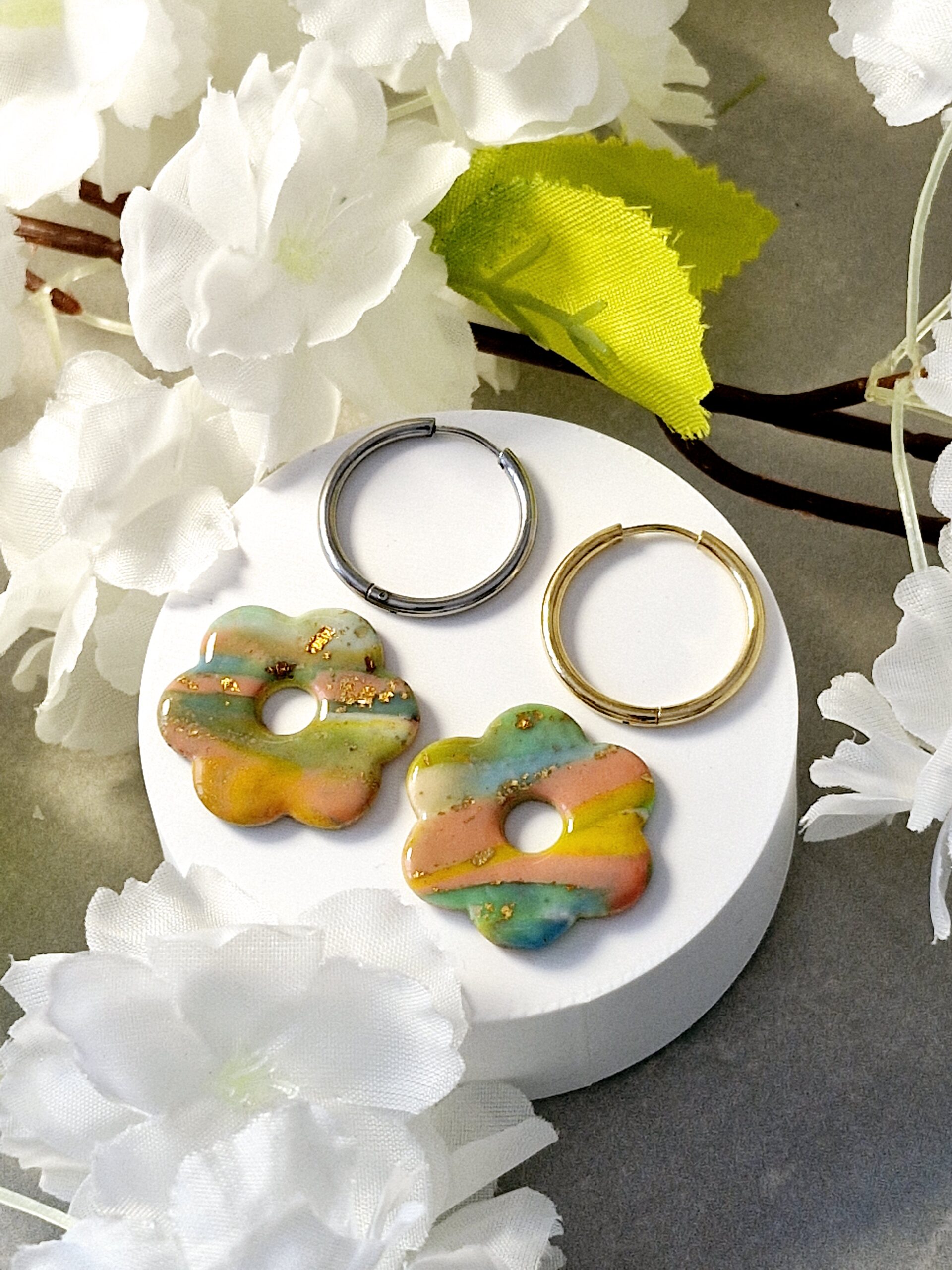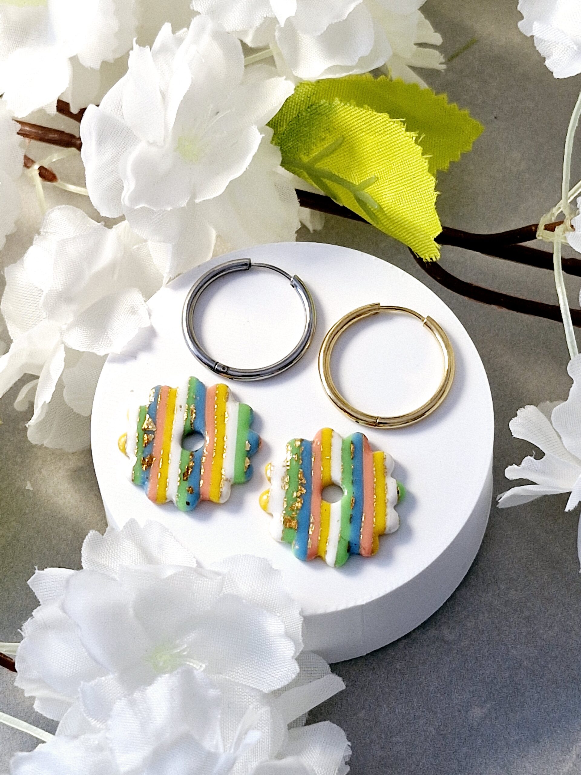 Ces pampilles sont réalisées à la main en pâte polymère, légères et agréables à porter.