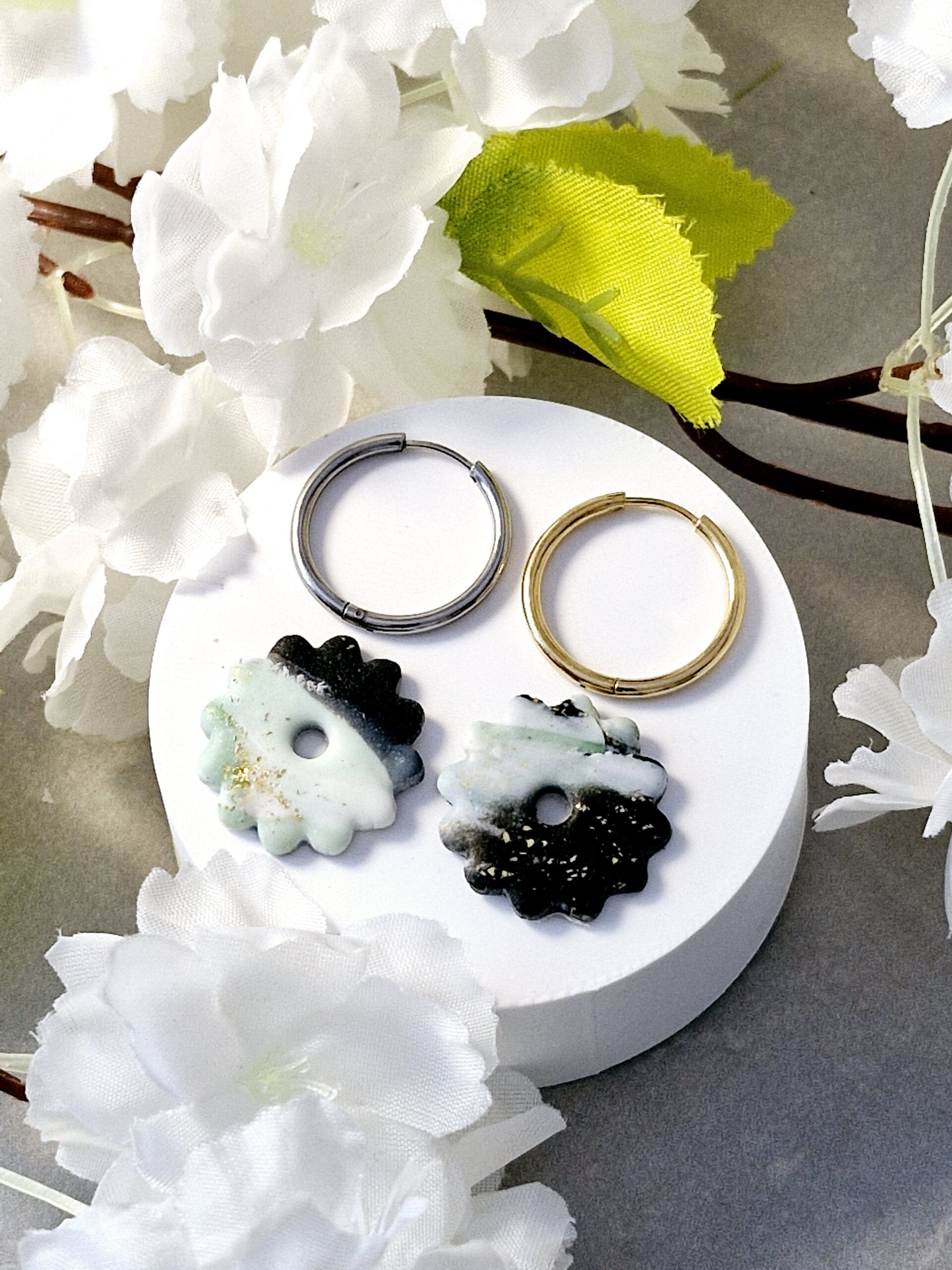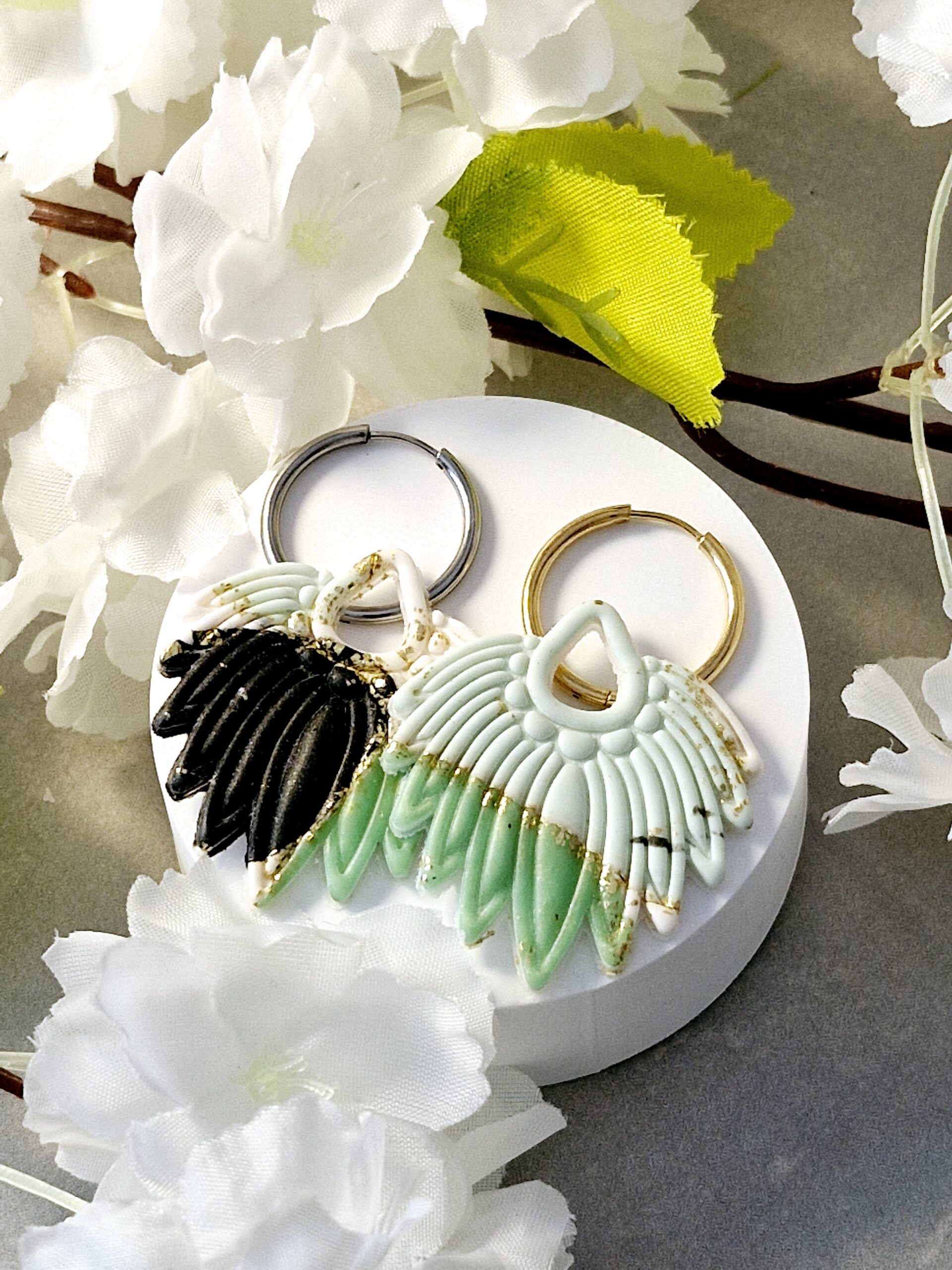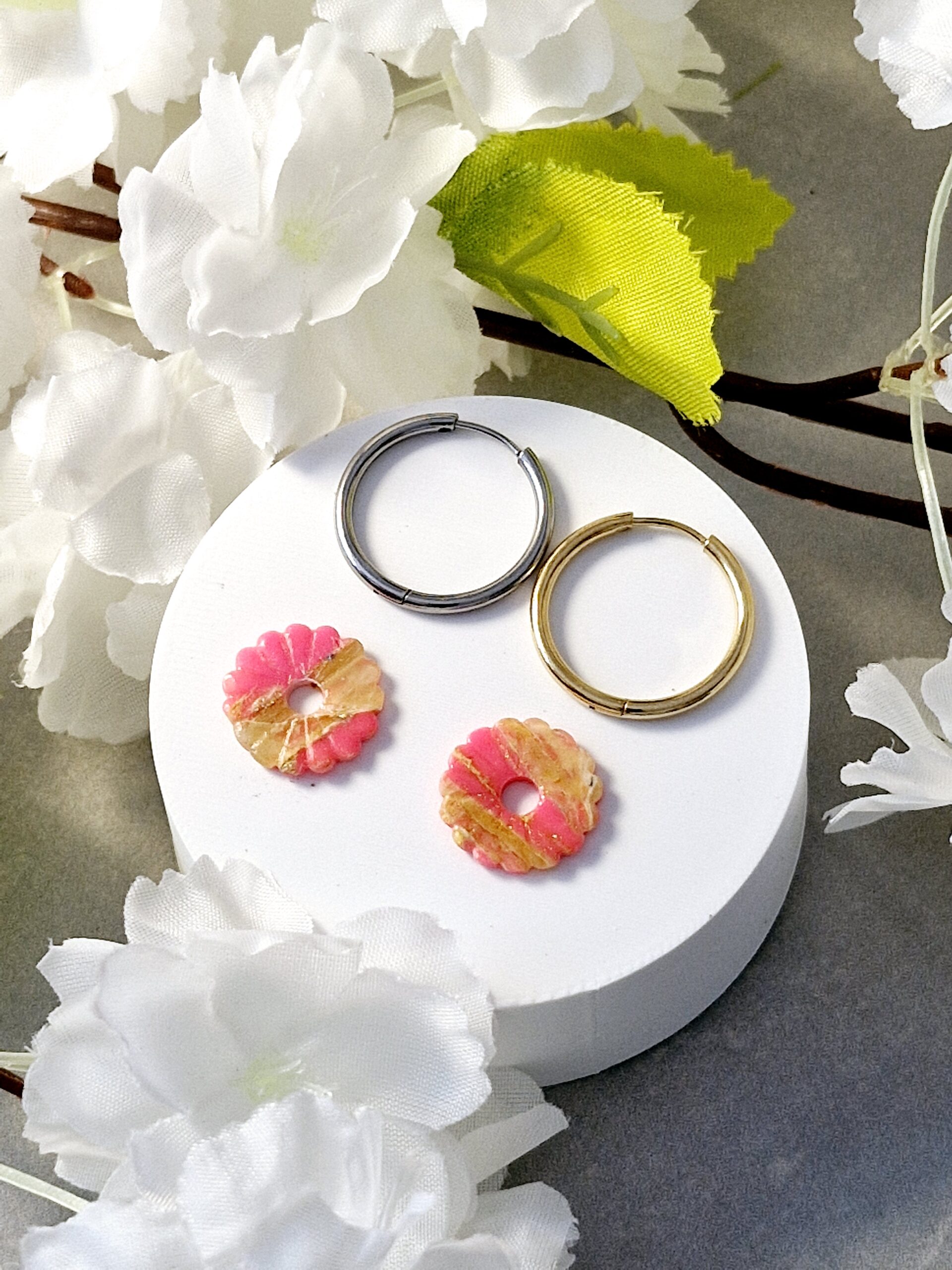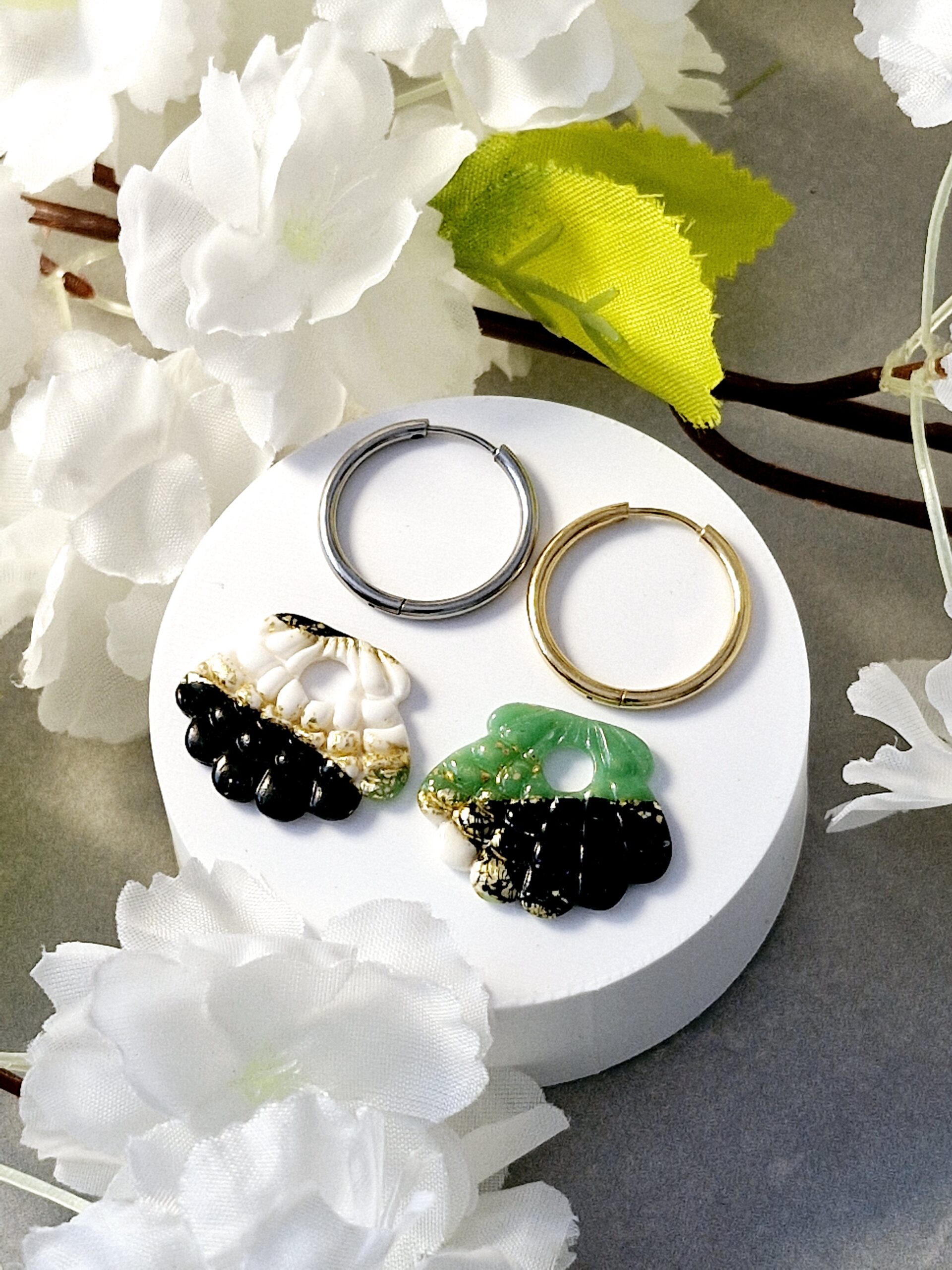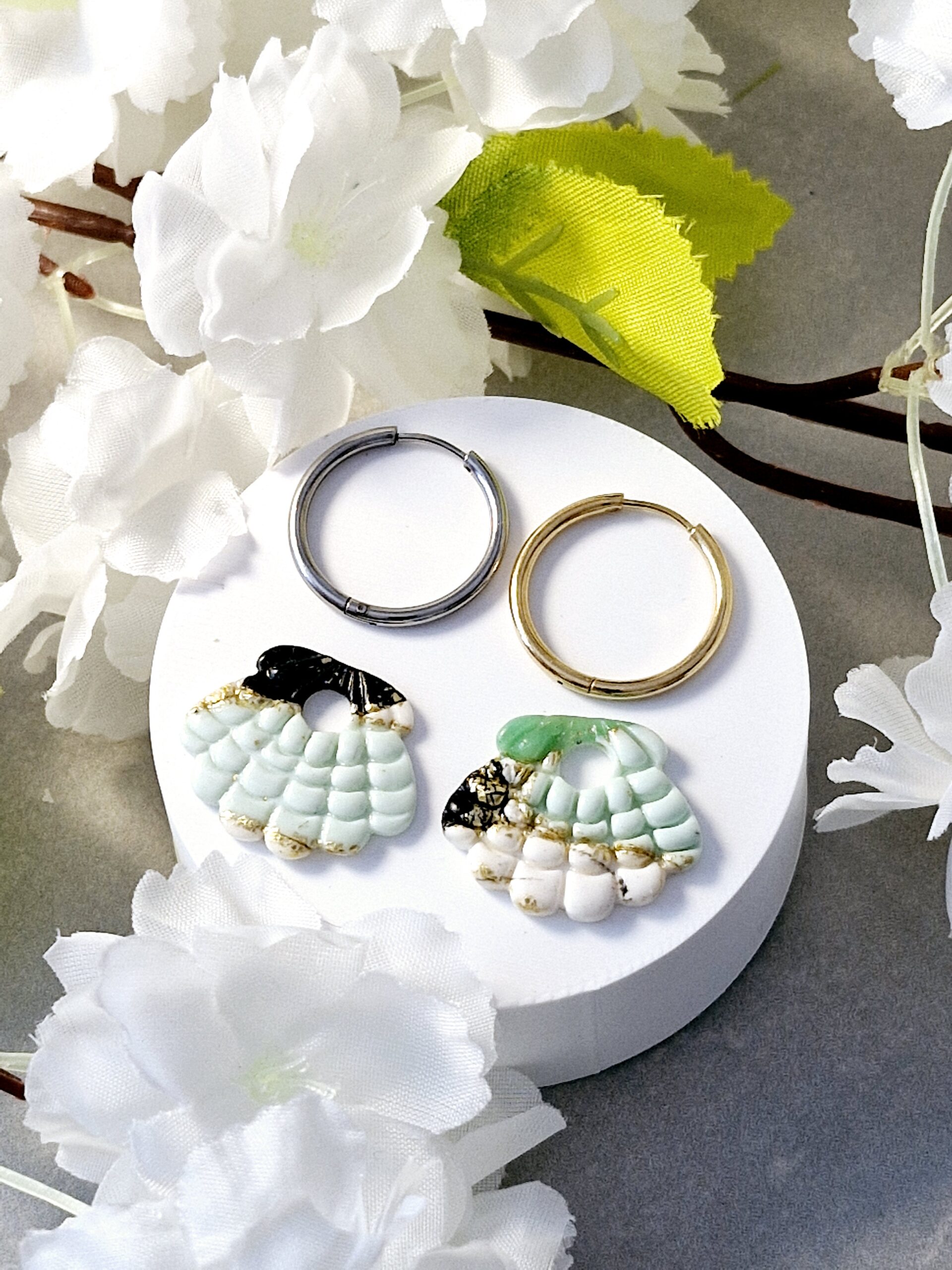 Ces pampilles sont réalisées à la main en pâte polymère, légères et agréables à porter.