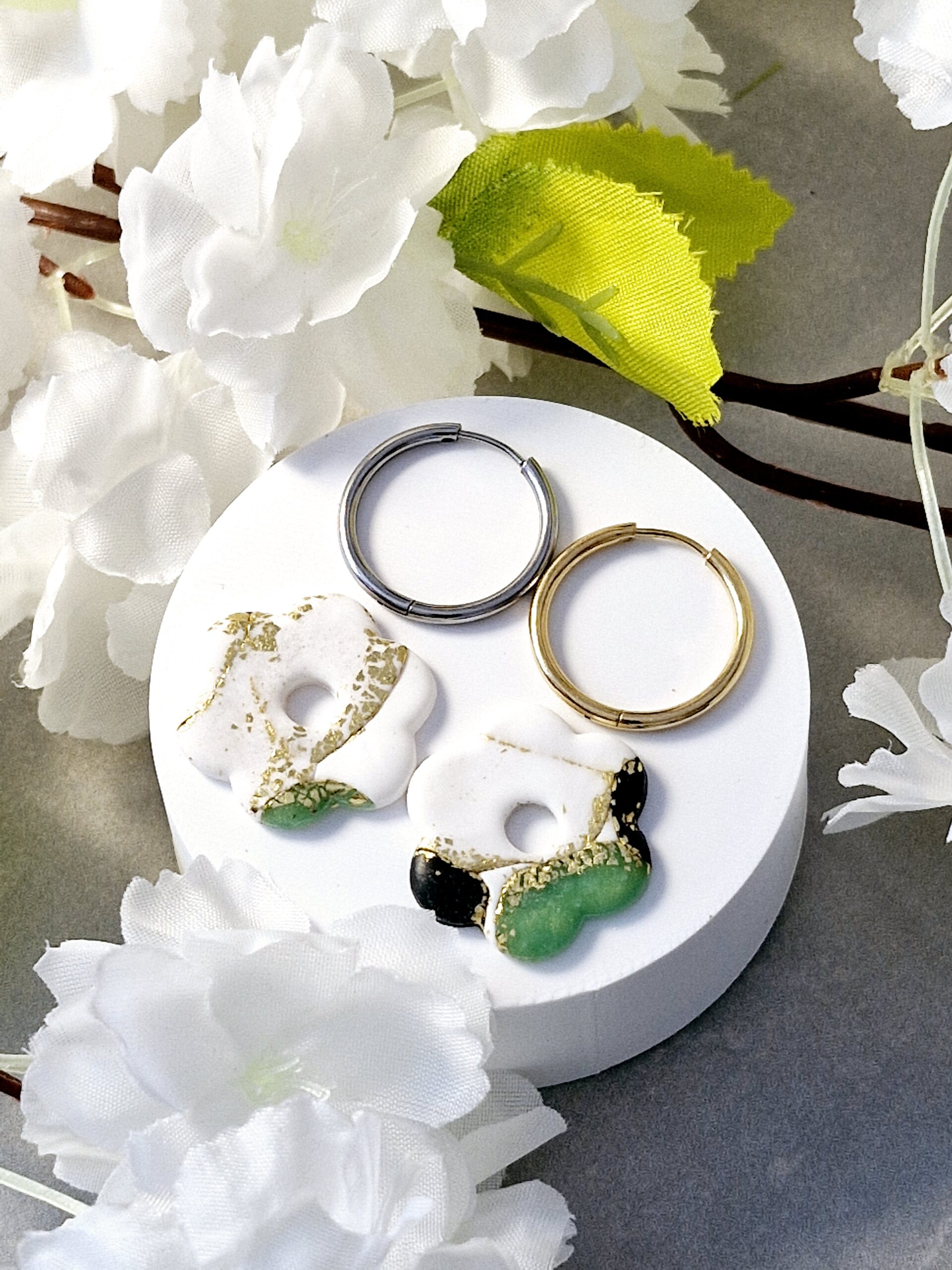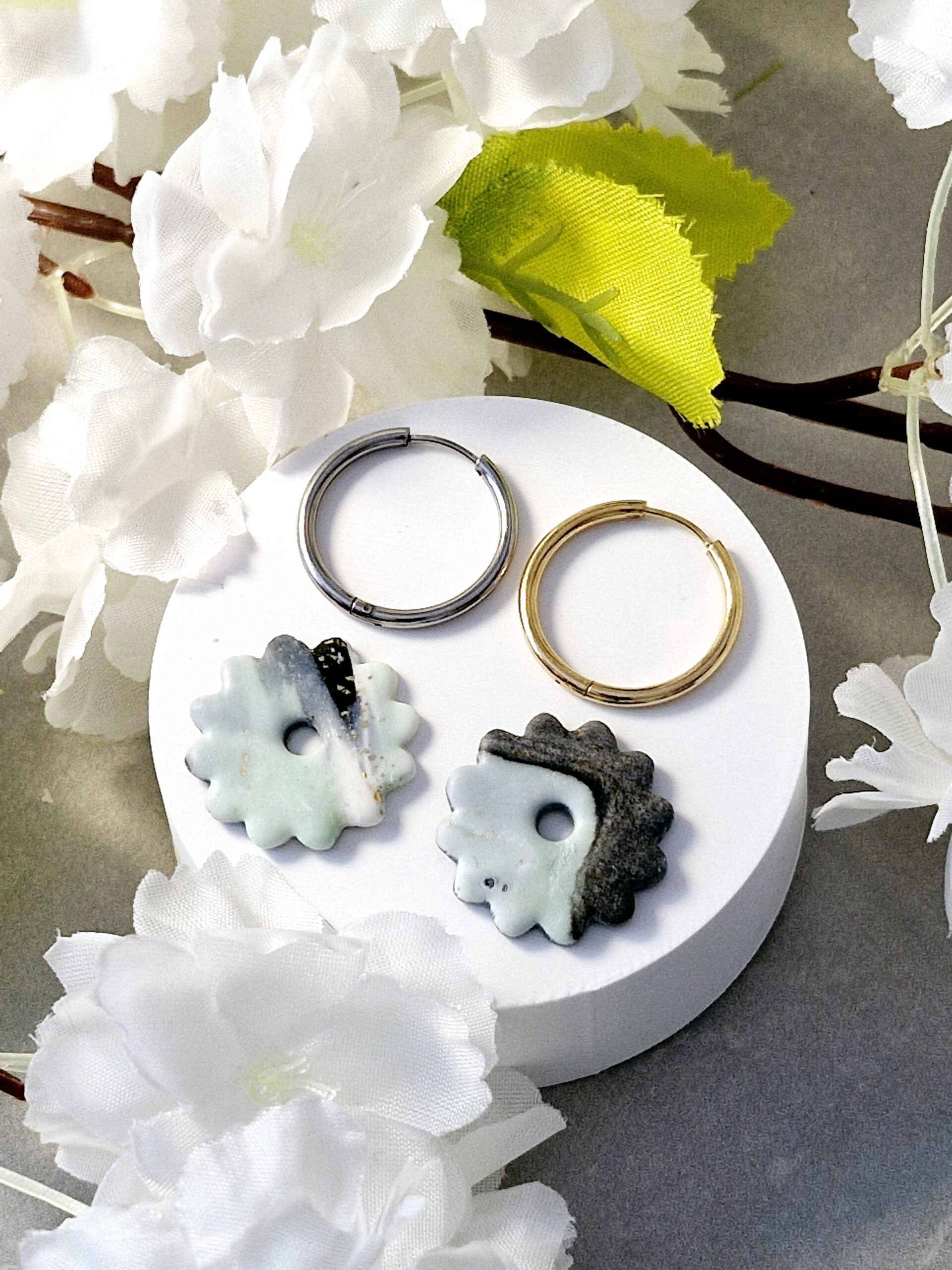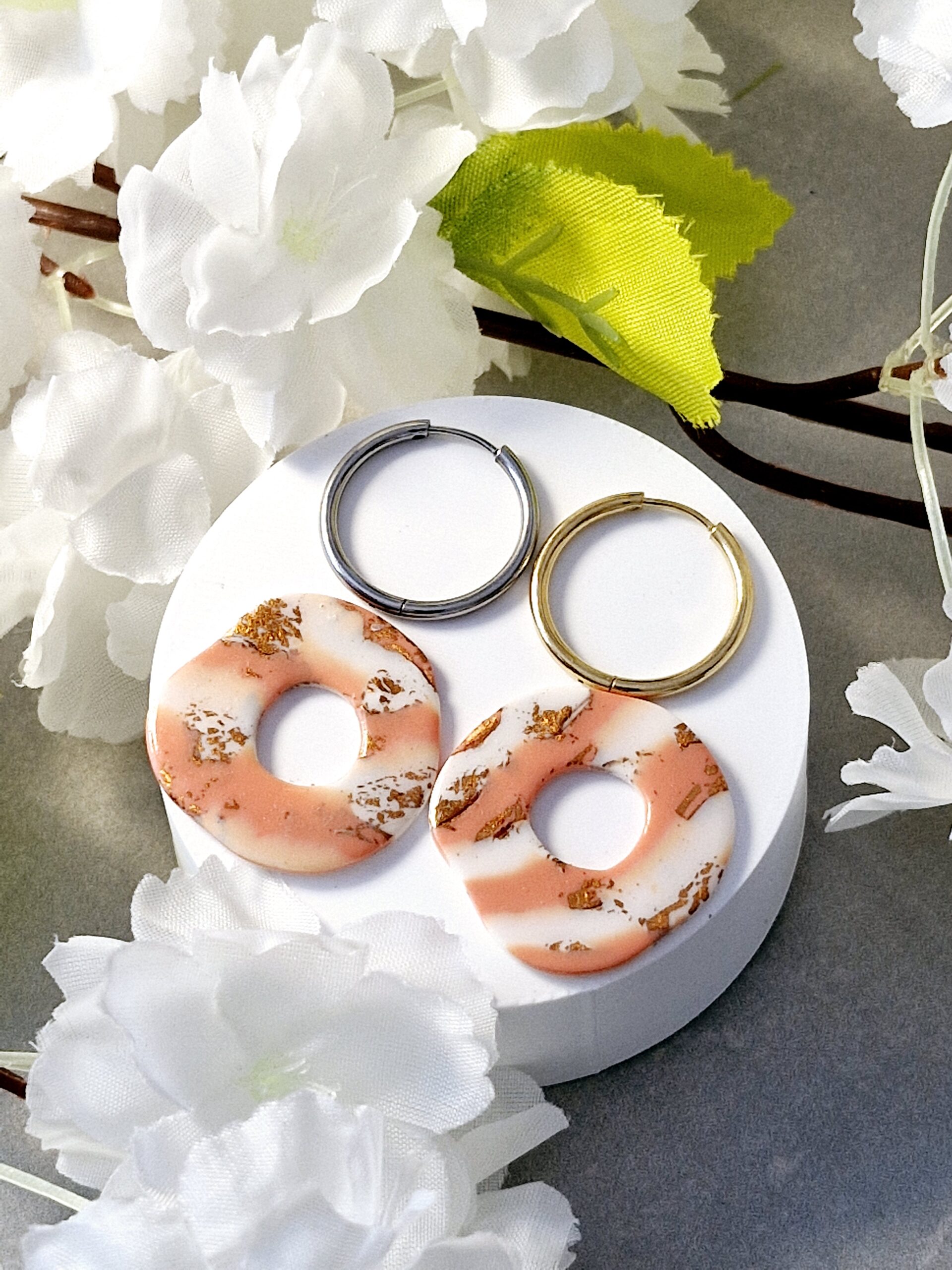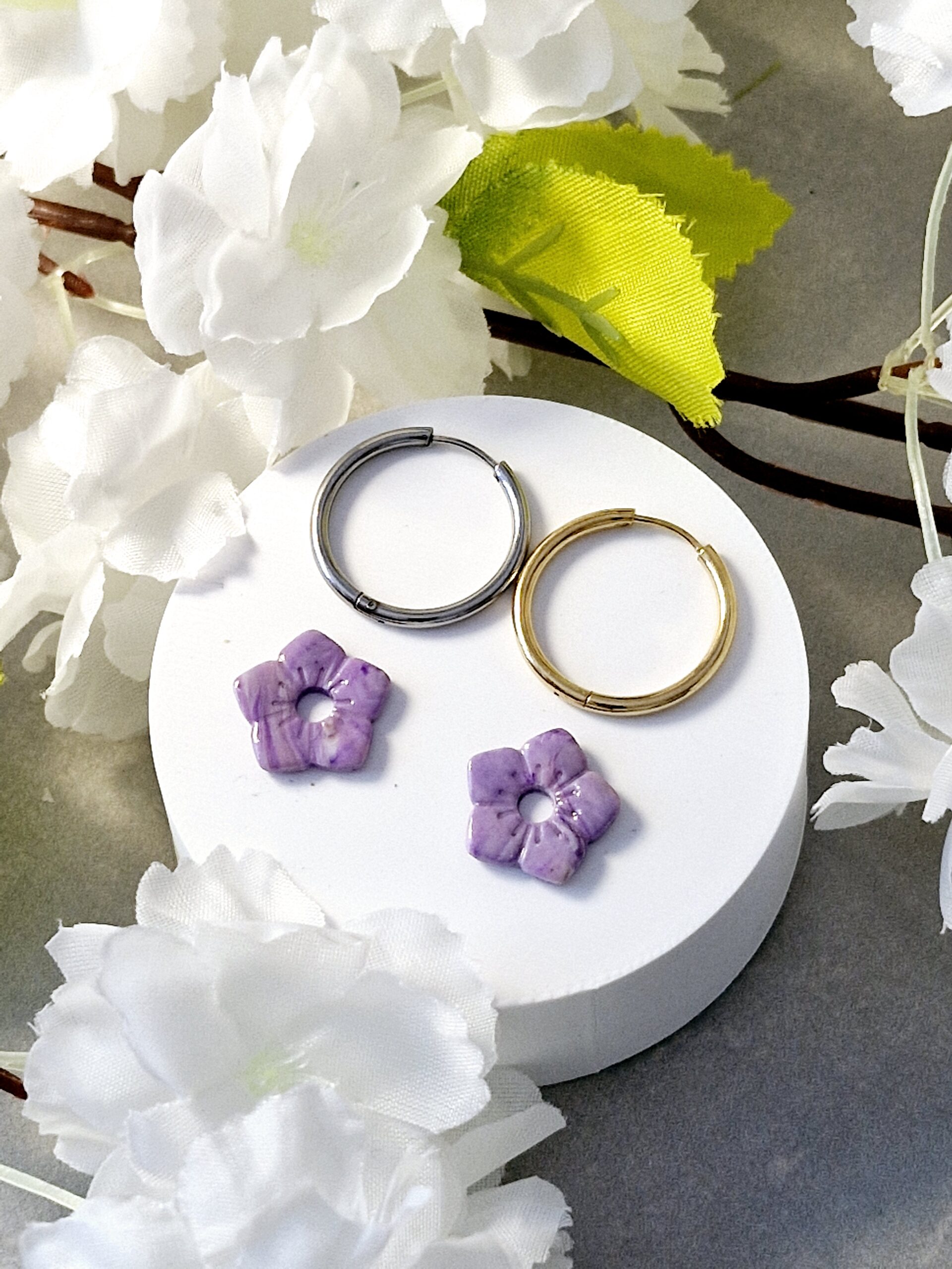 Ces pampilles sont réalisées à la main en pâte polymère, légères et agréables à porter.
