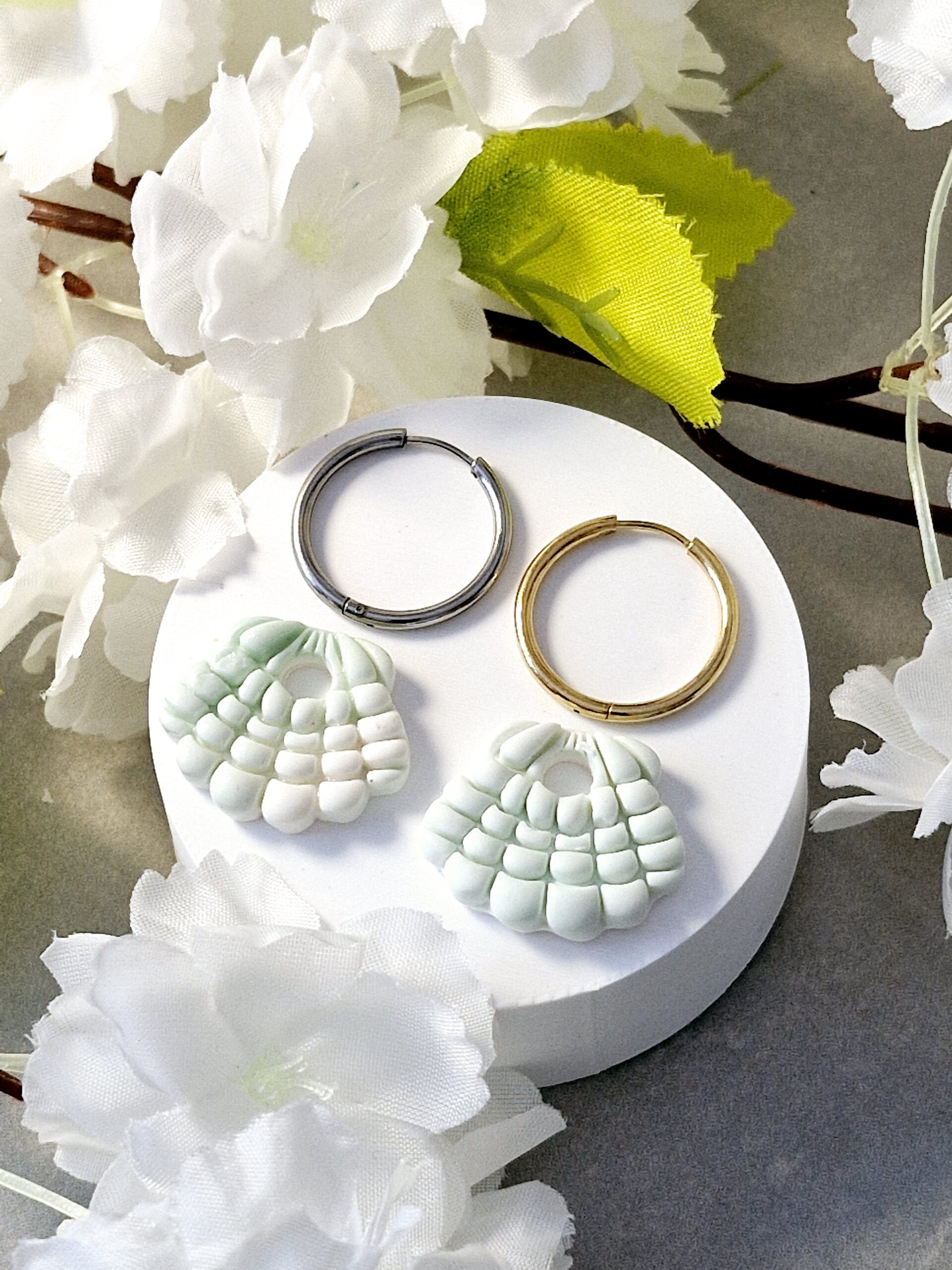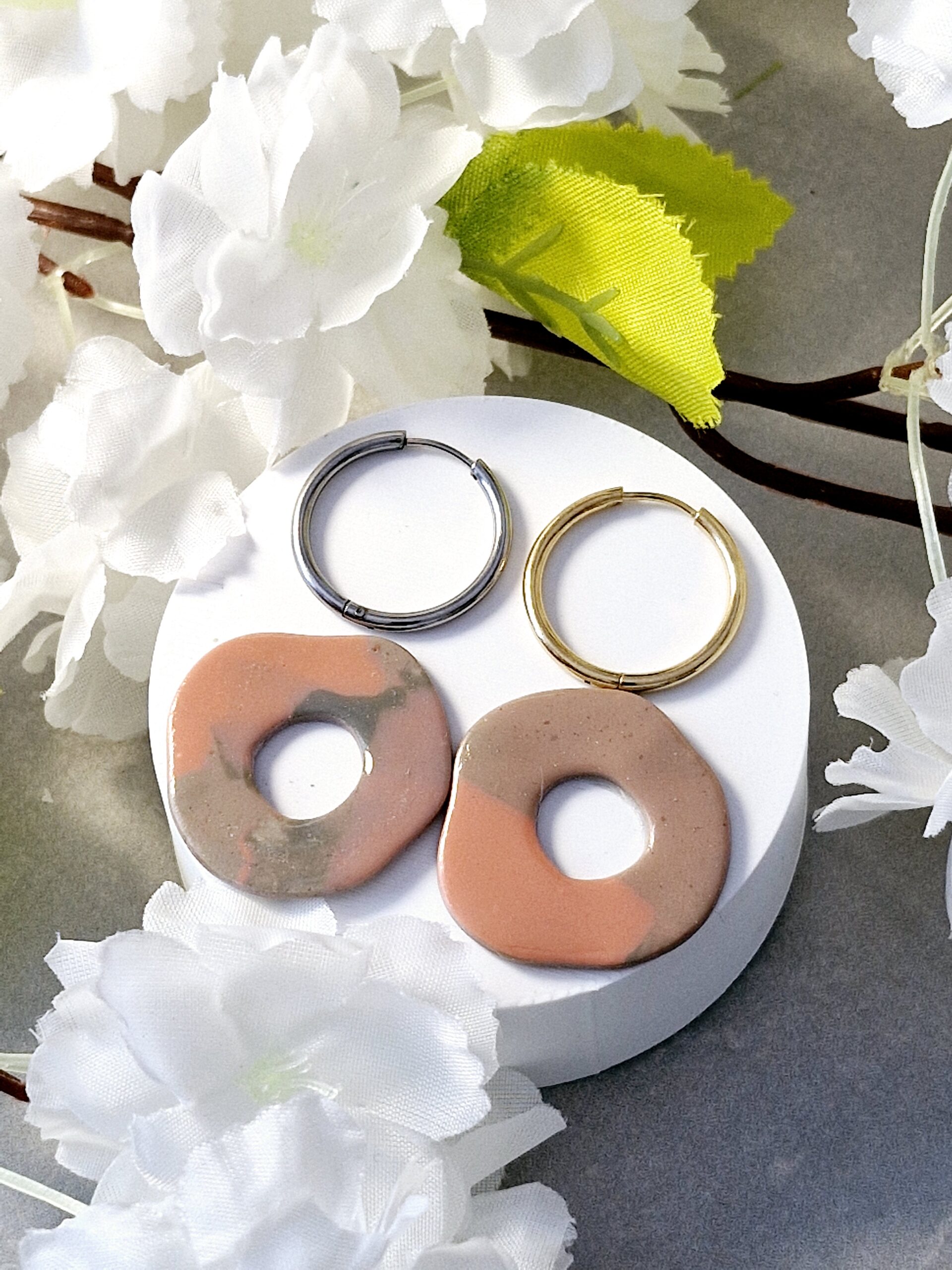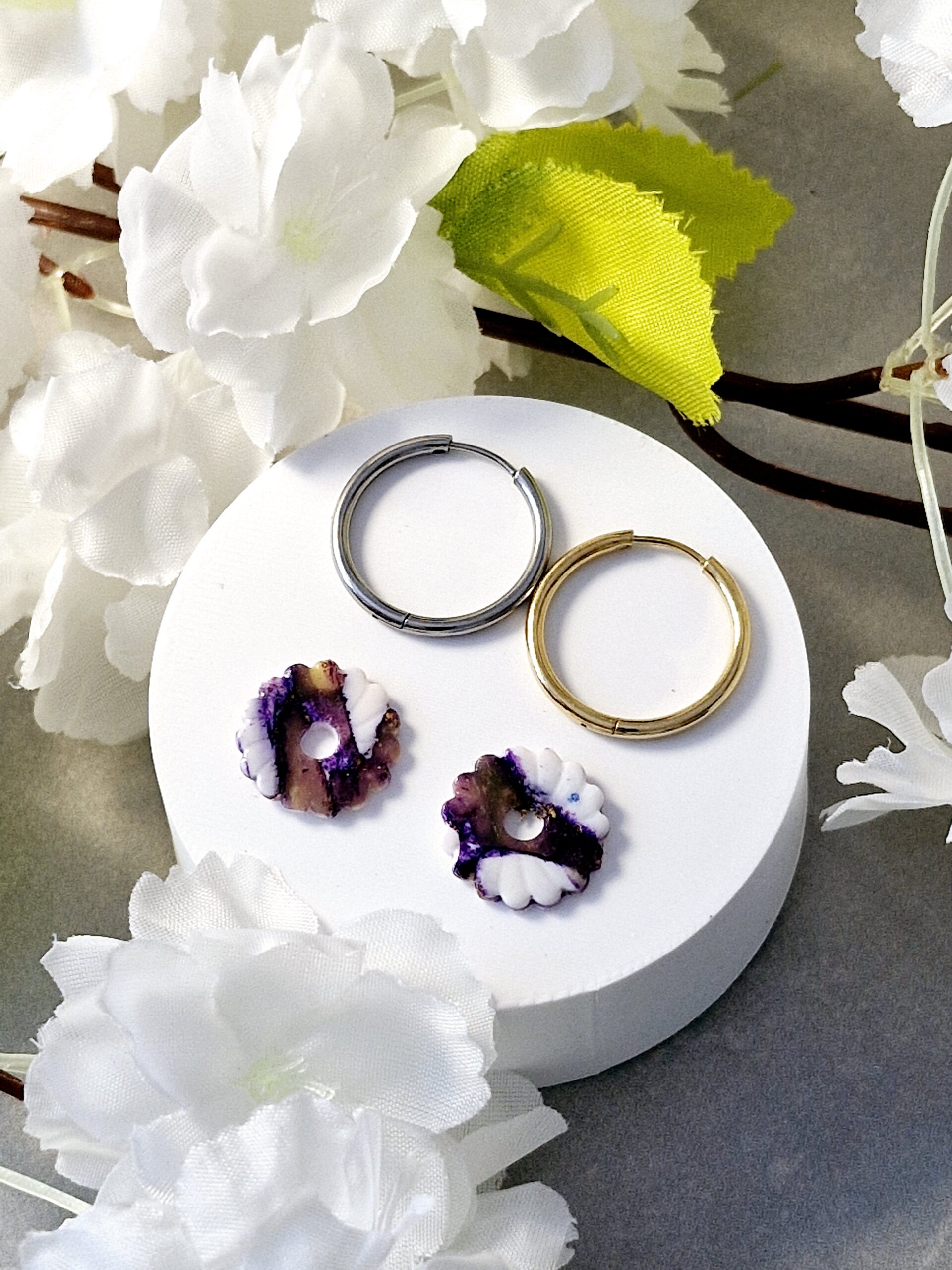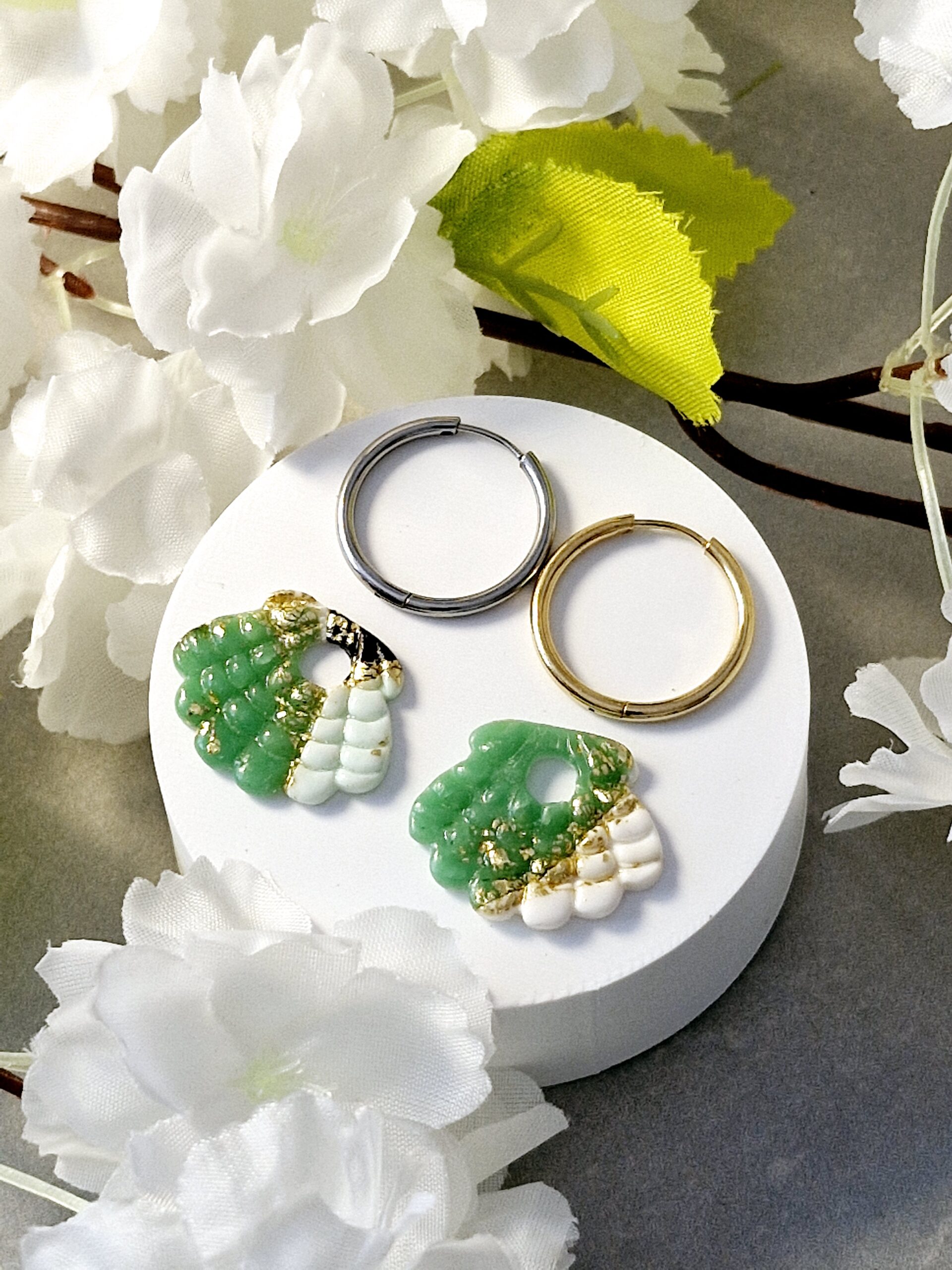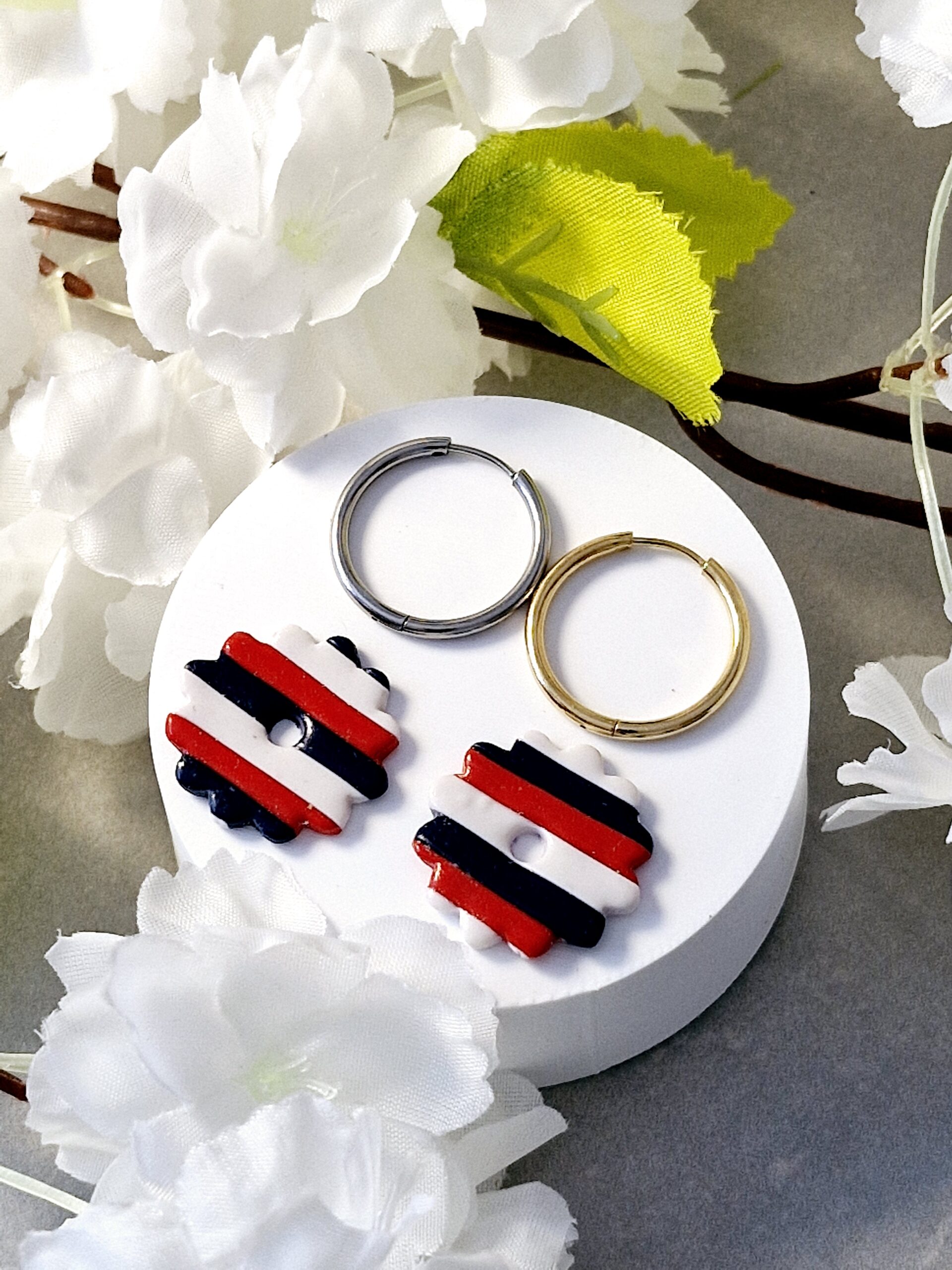 Ces pampilles sont réalisées à la main en pâte polymère, légères et agréables à porter.