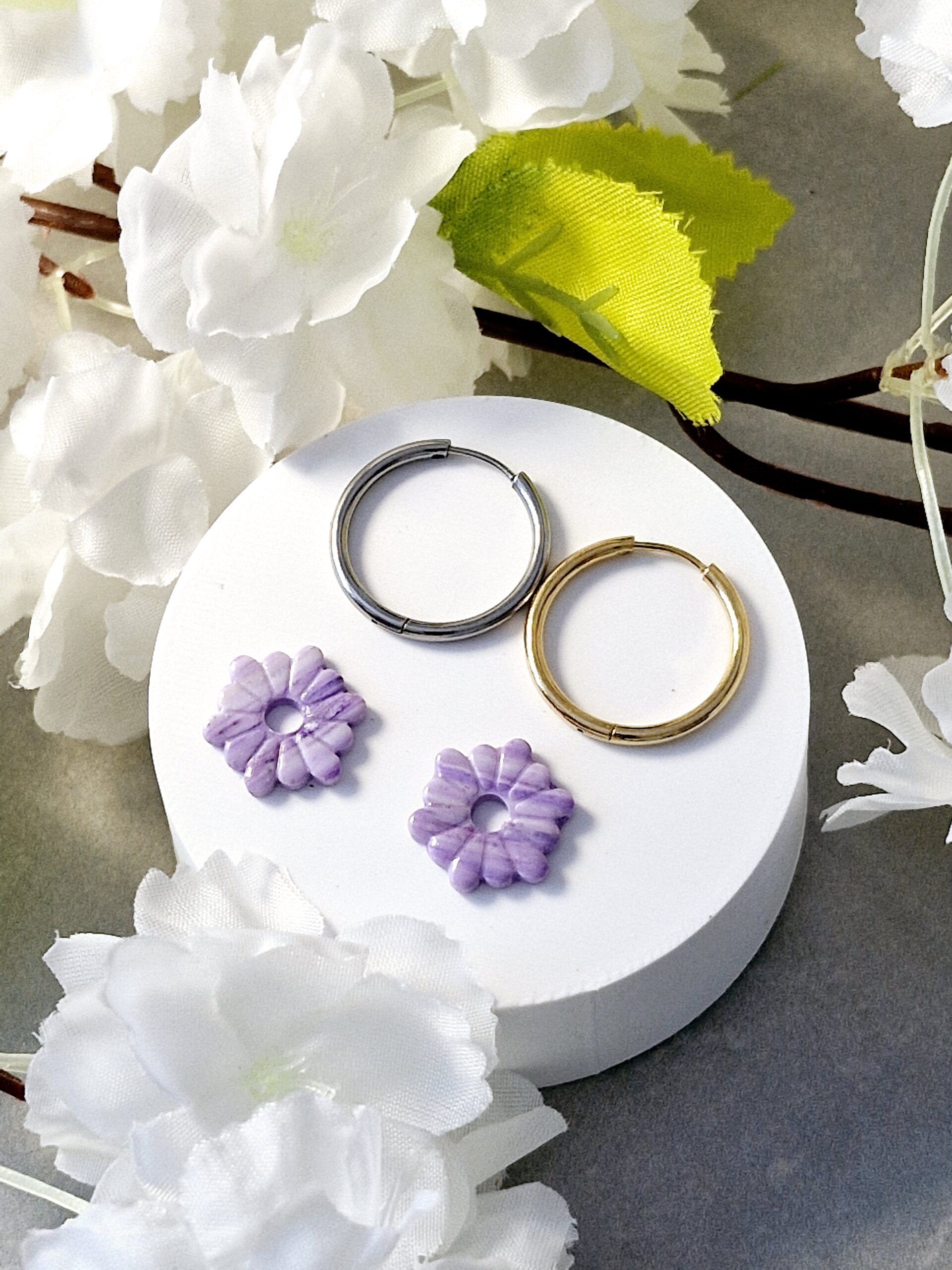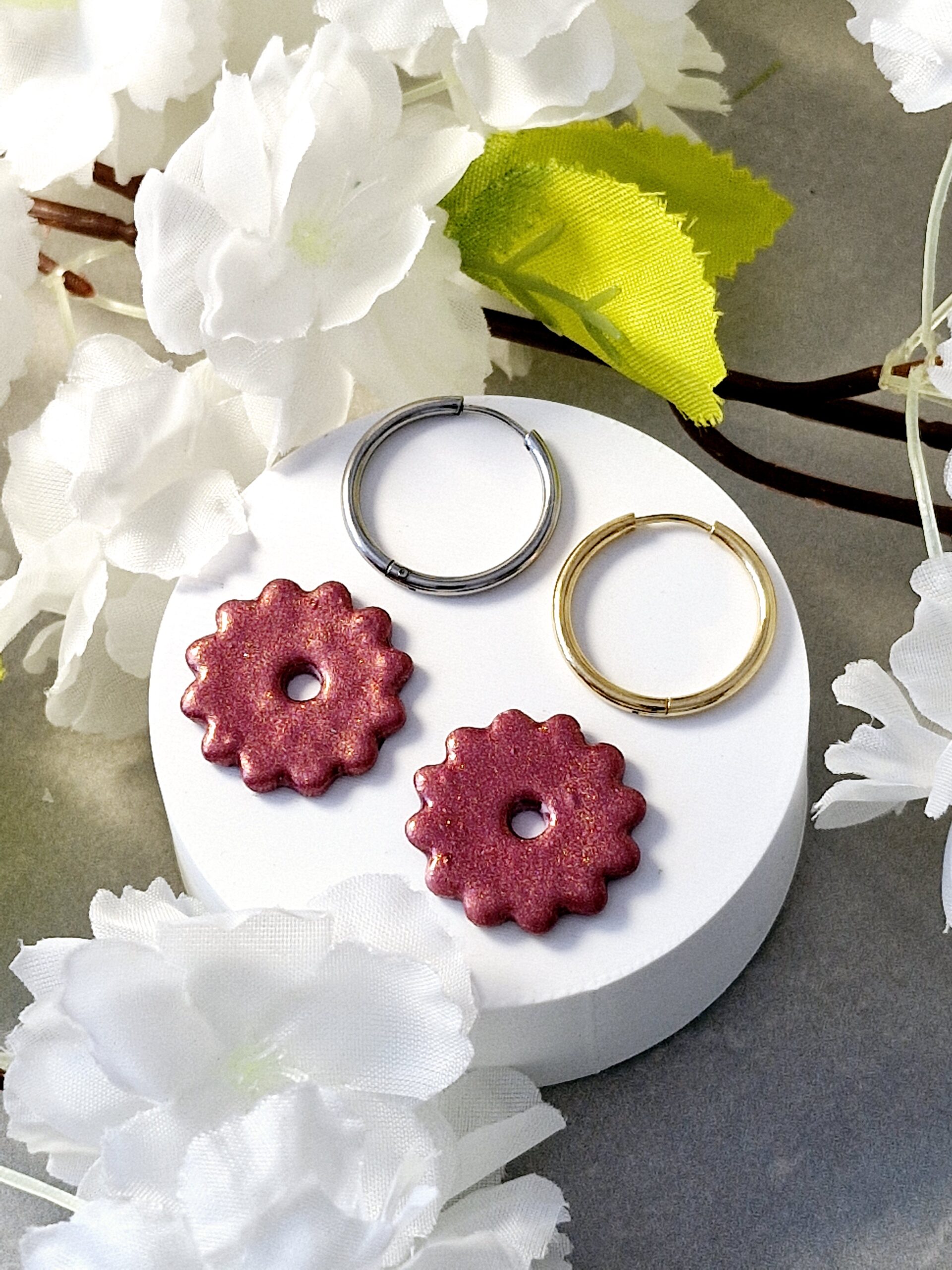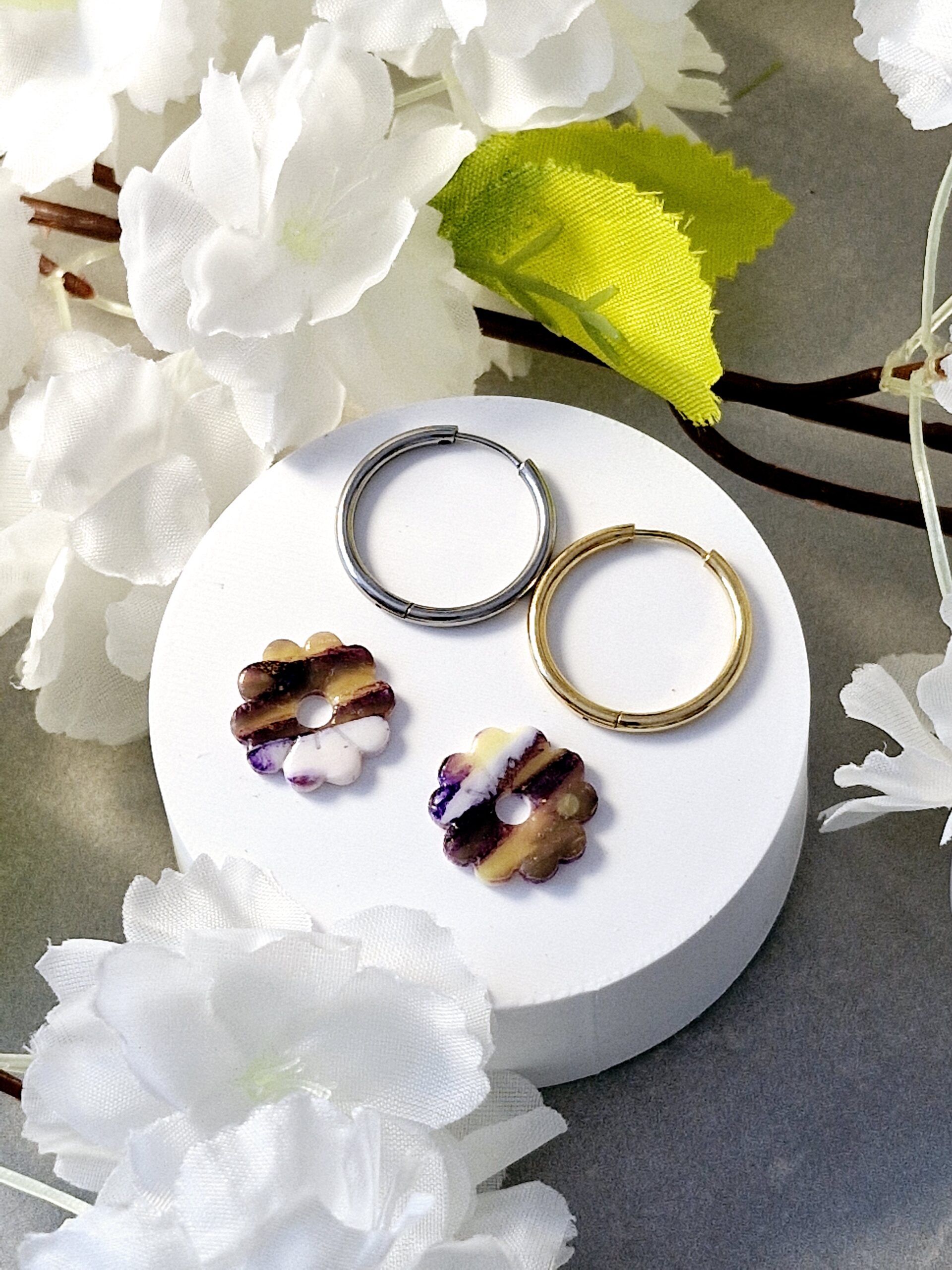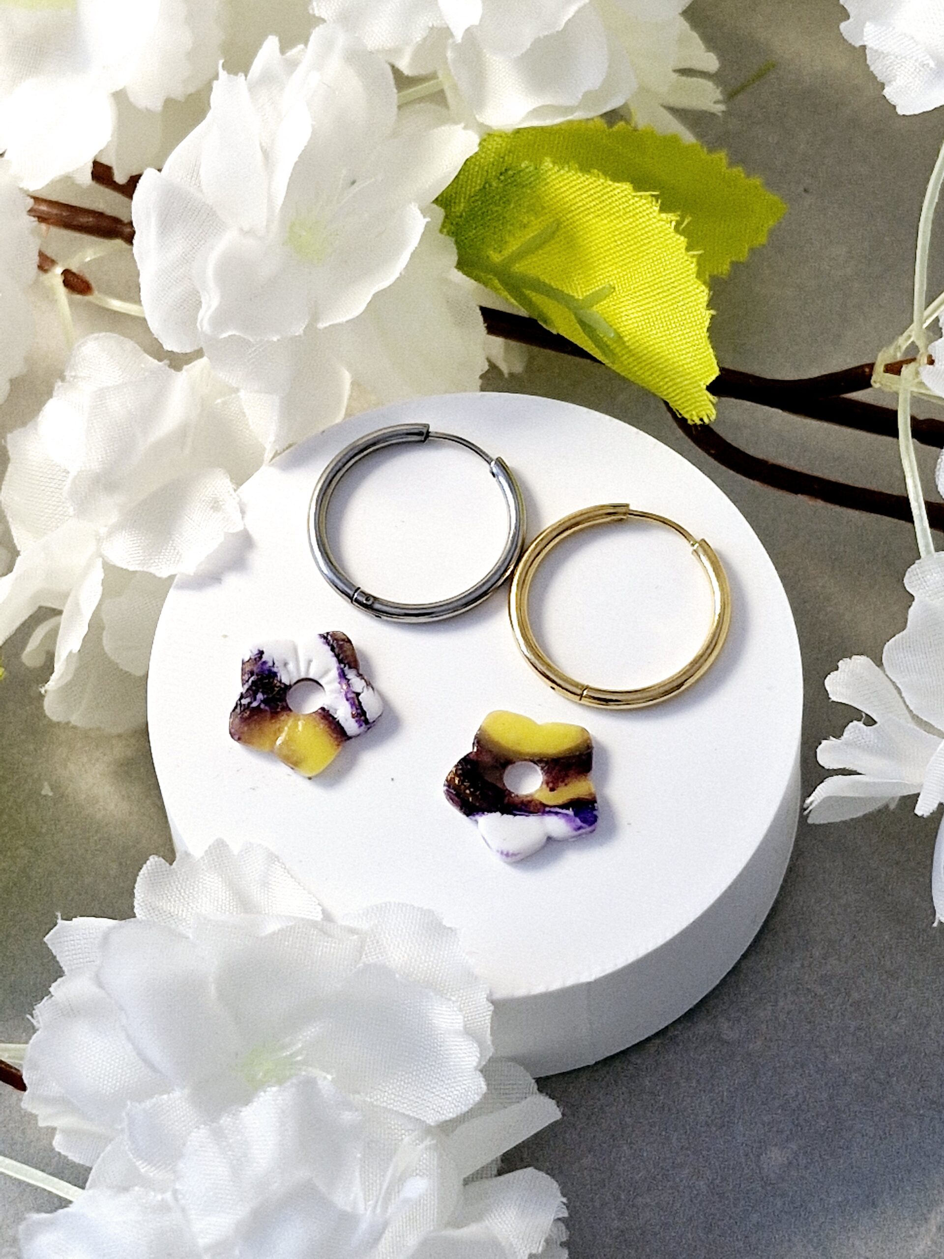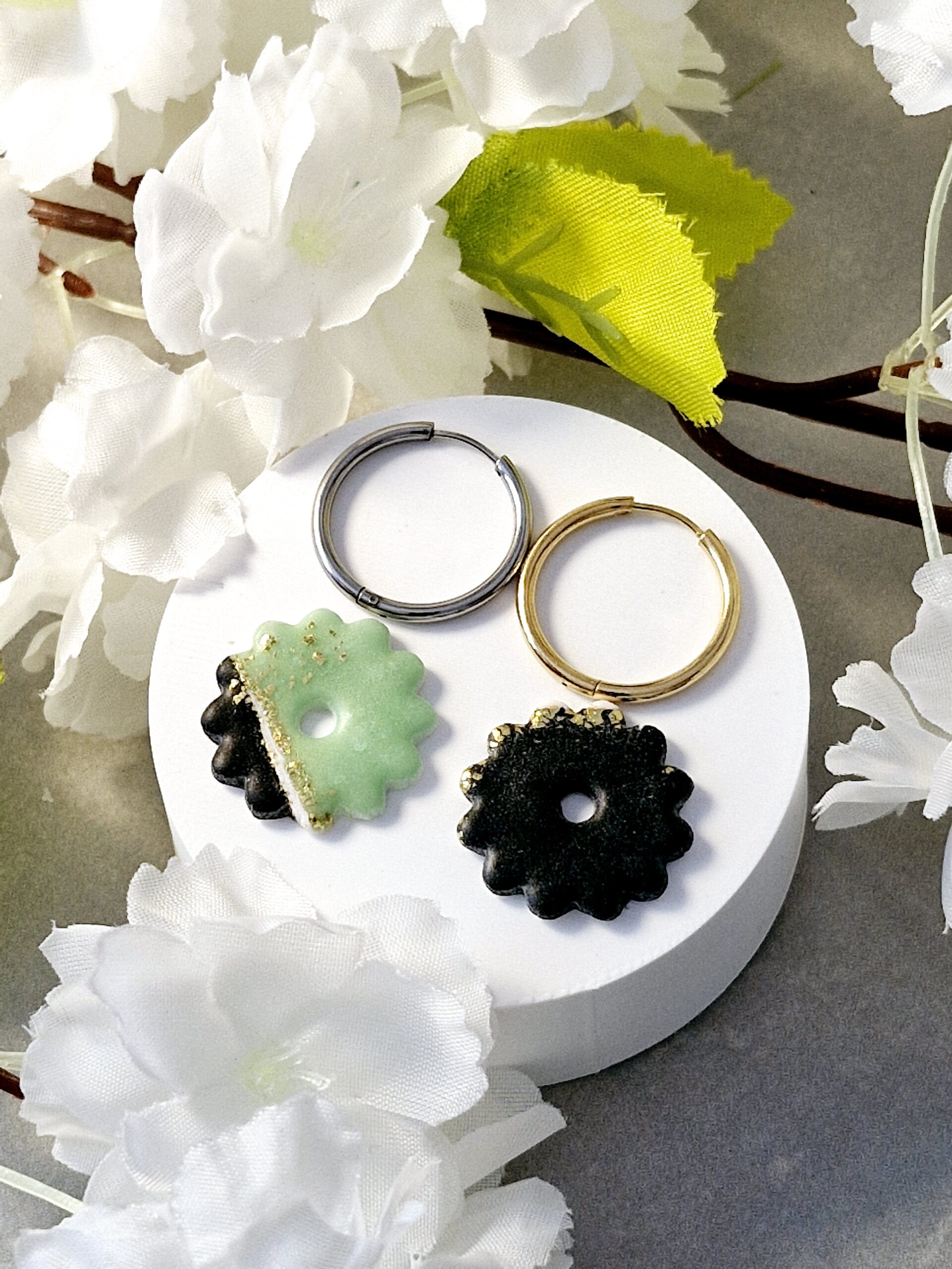 Ces pampilles sont réalisées à la main en pâte polymère, légères et agréables à porter.