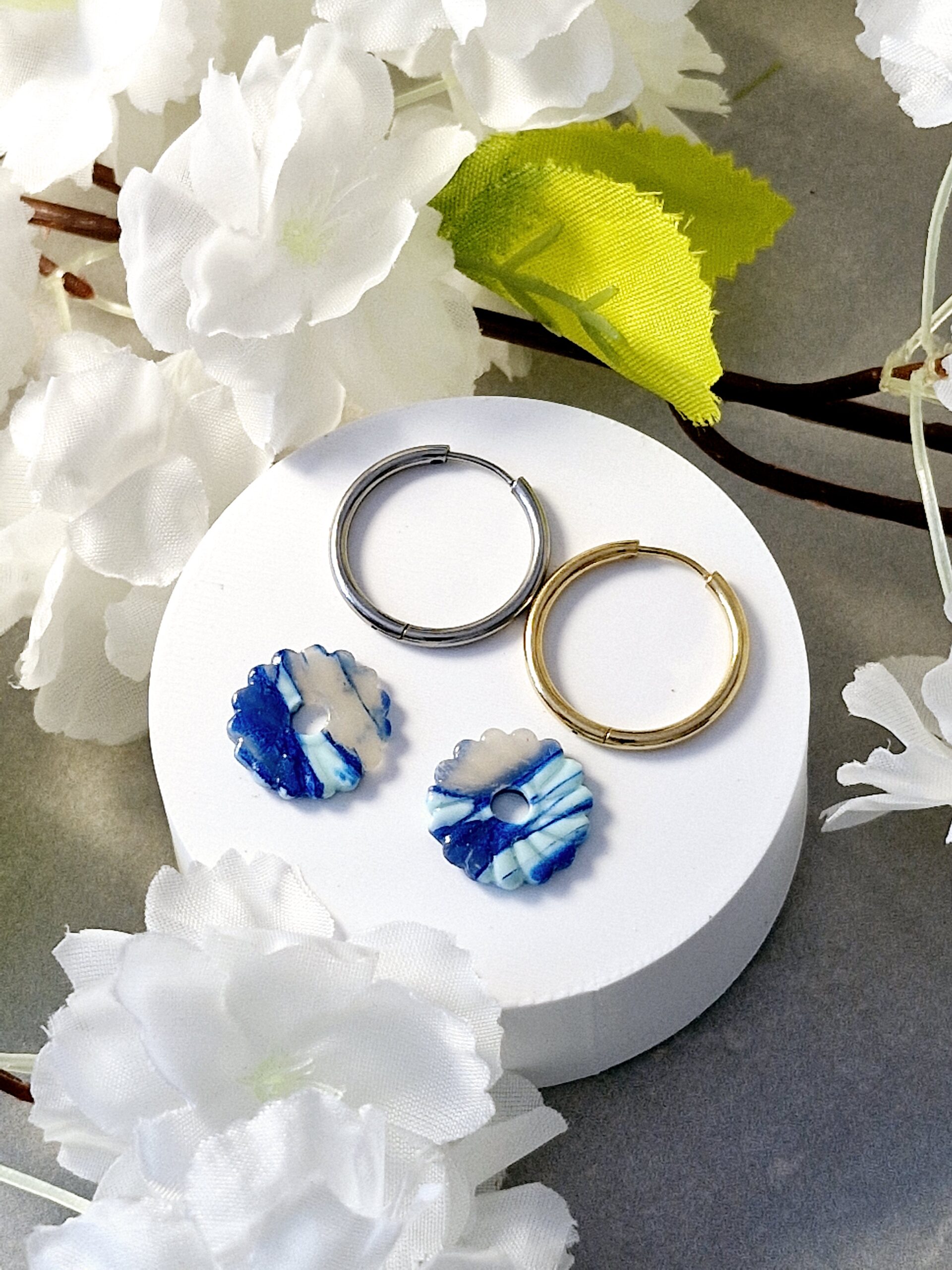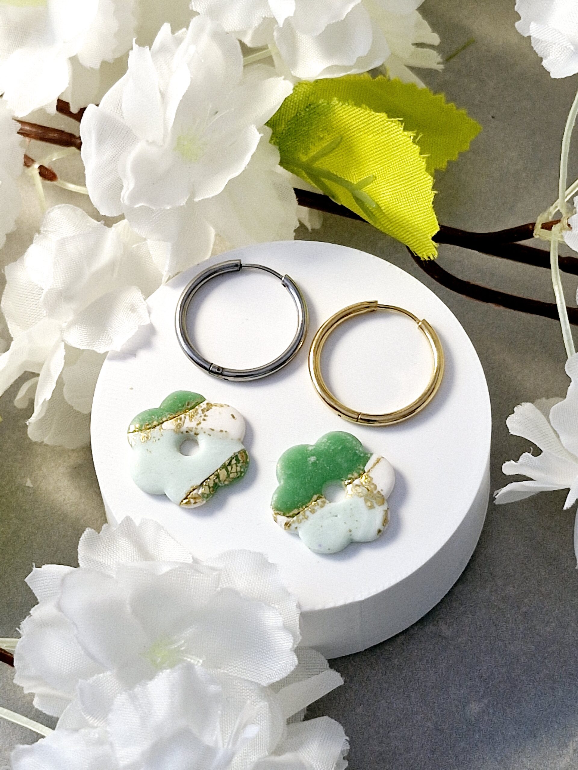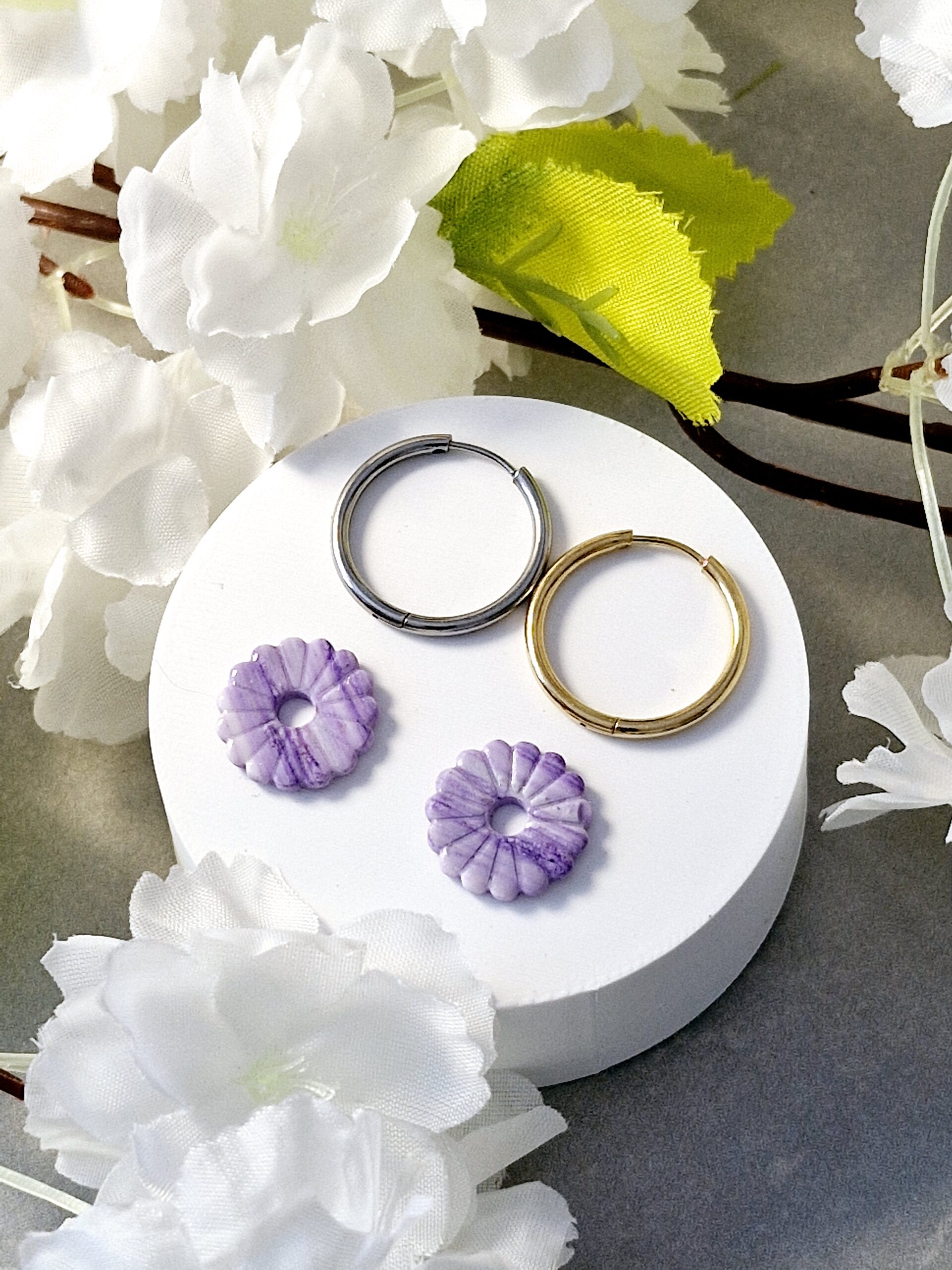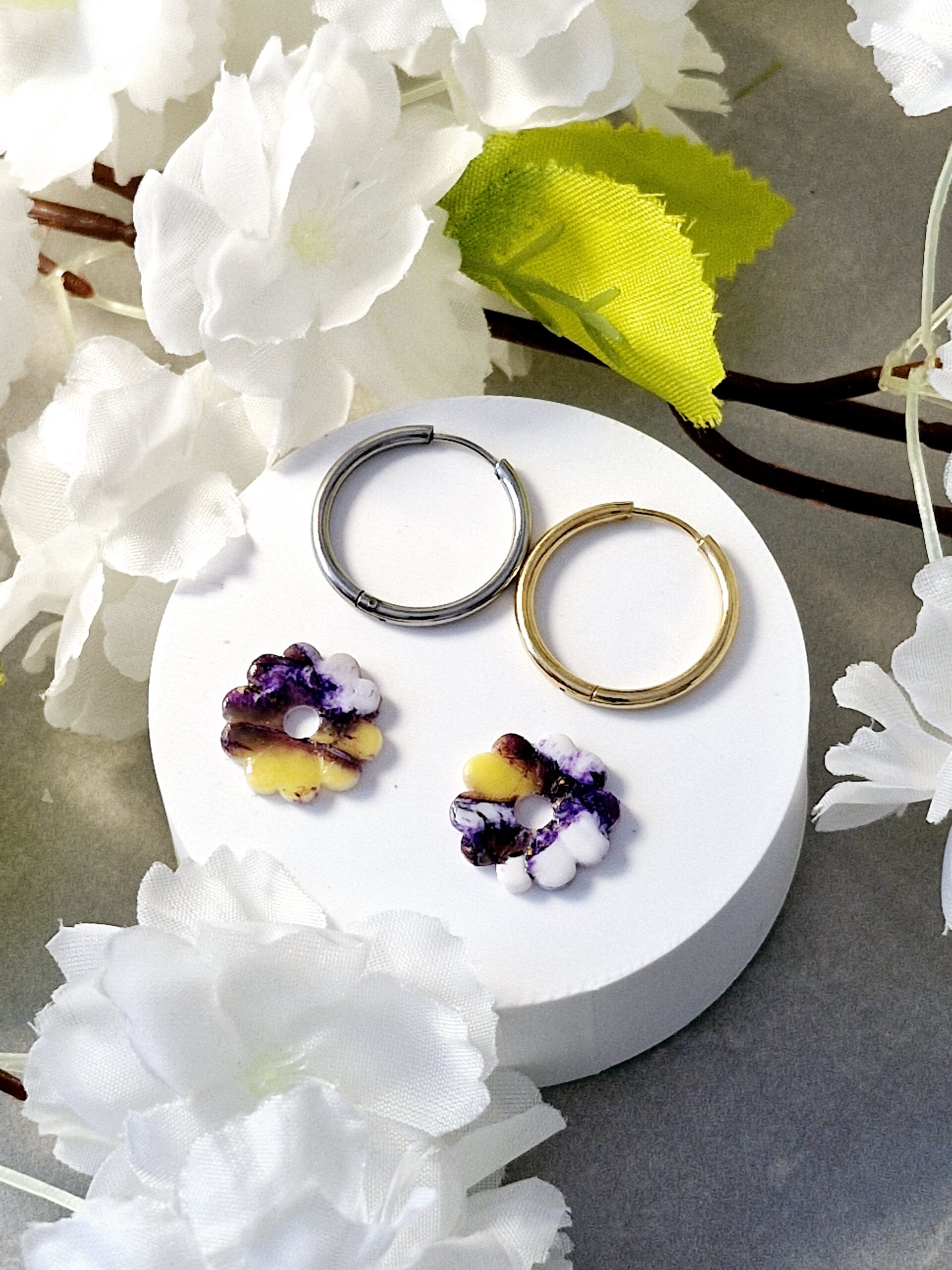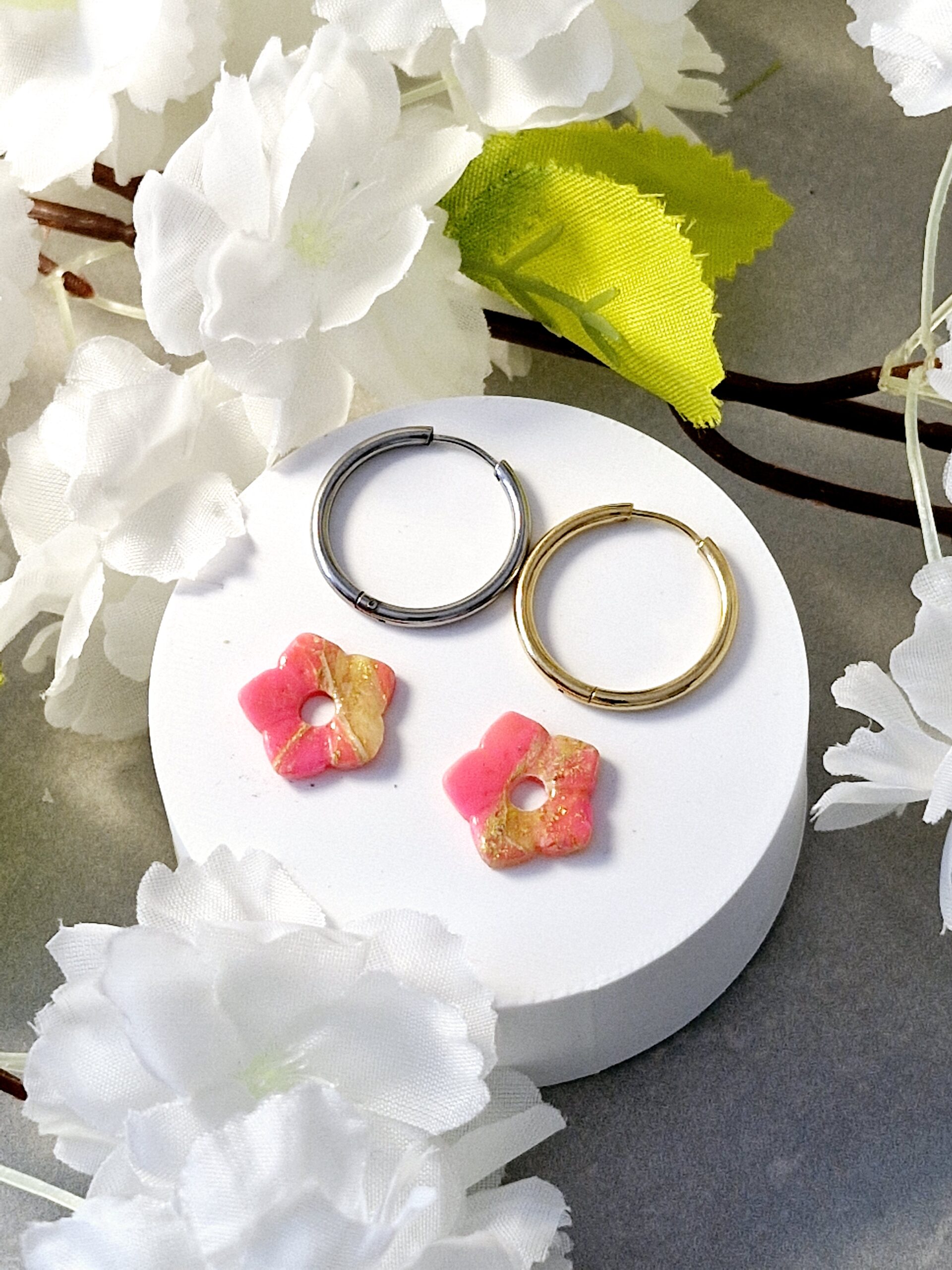 Ces pampilles sont réalisées à la main en pâte polymère, légères et agréables à porter.