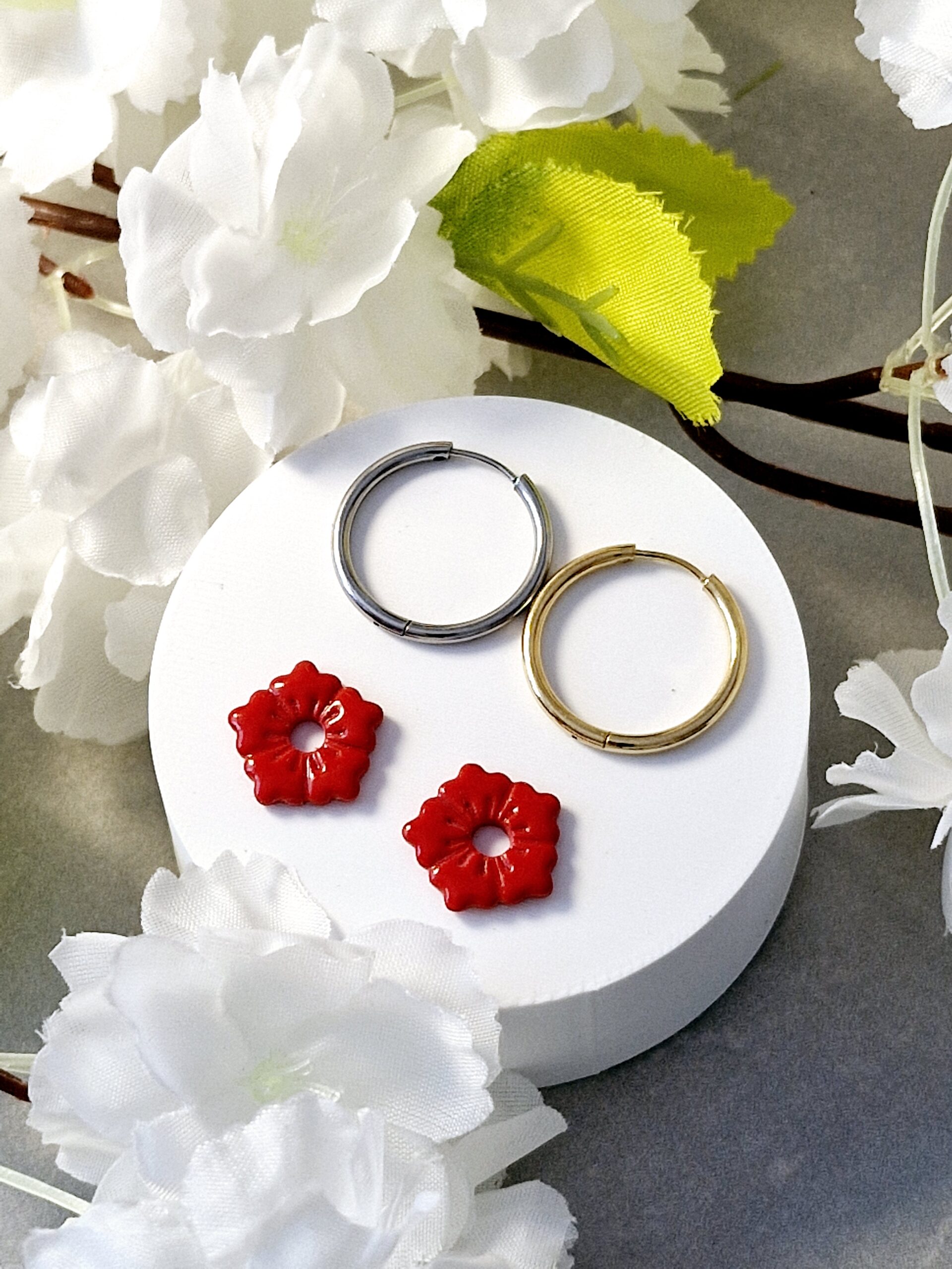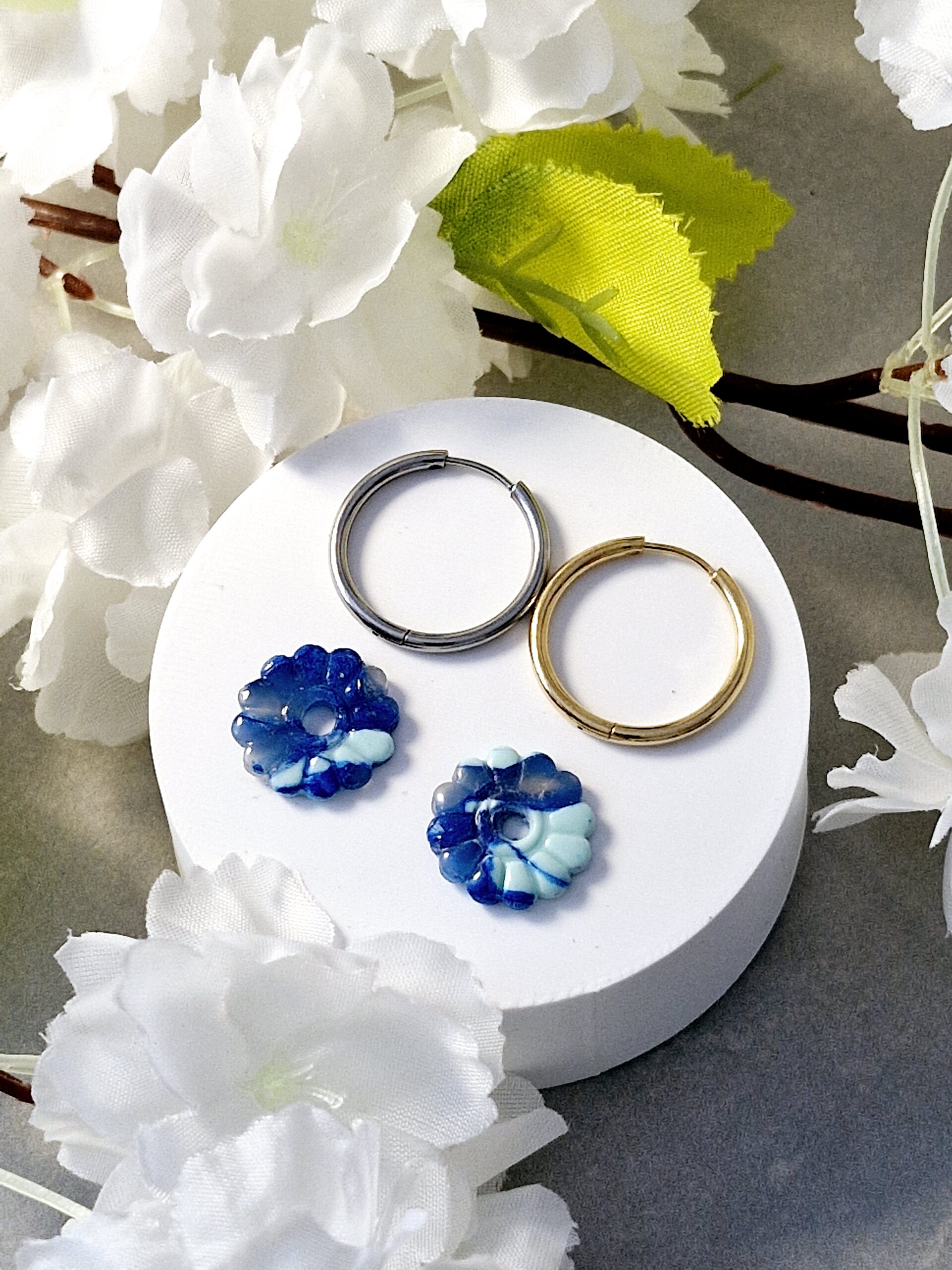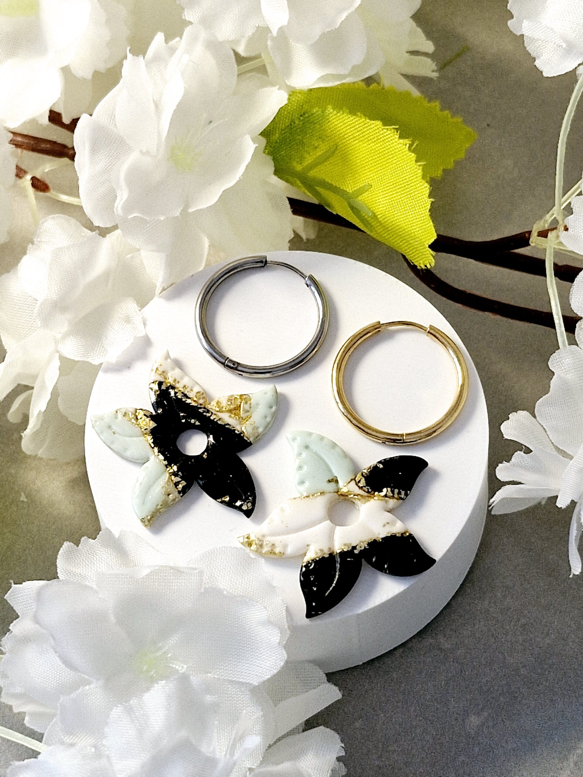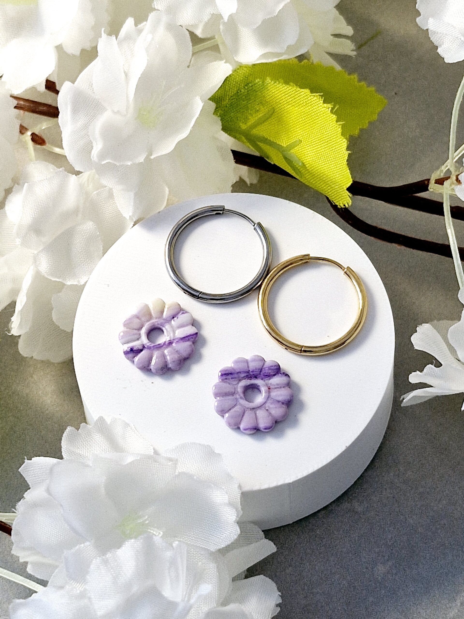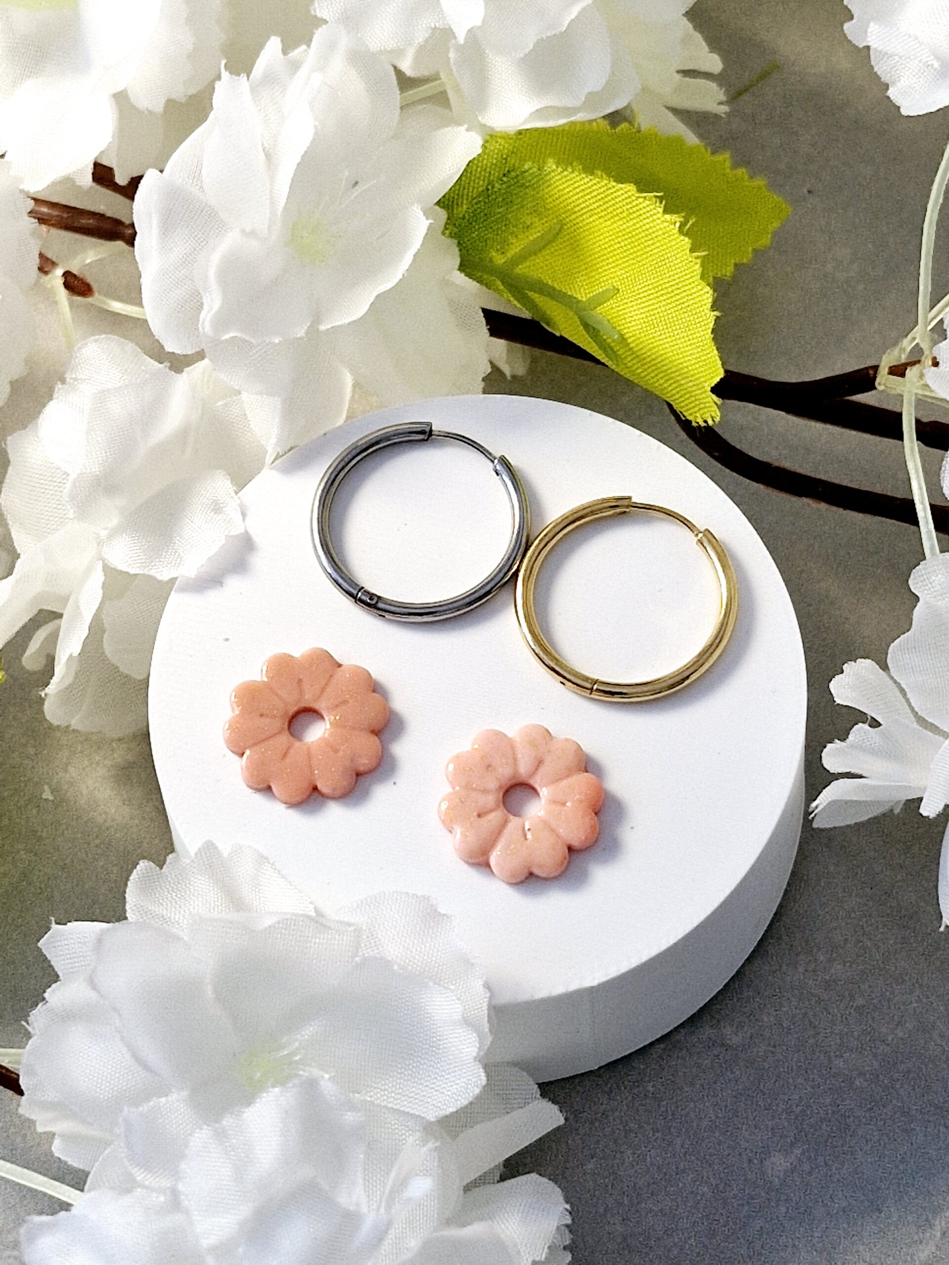 Ces pampilles sont réalisées à la main en pâte polymère, légères et agréables à porter.