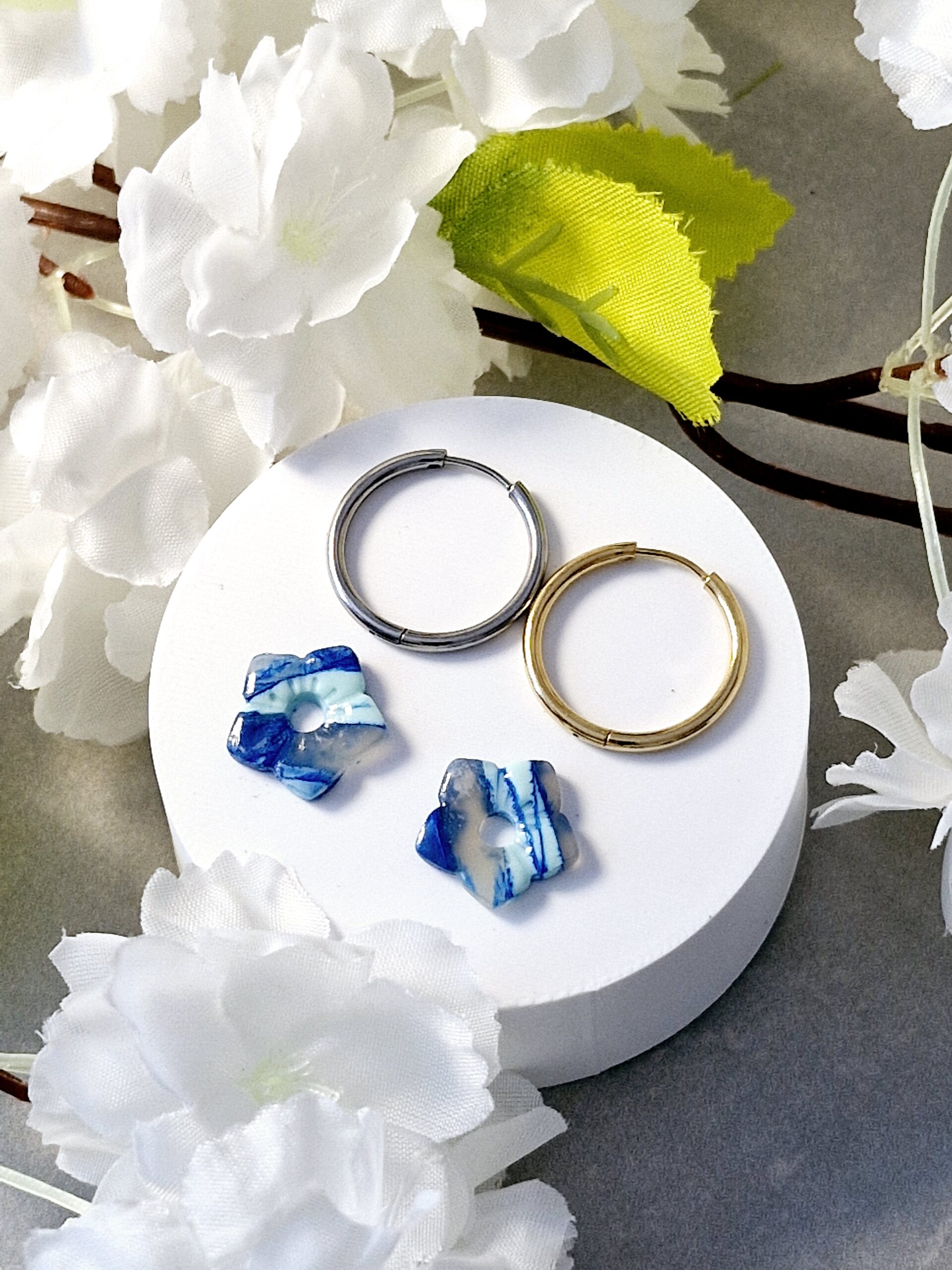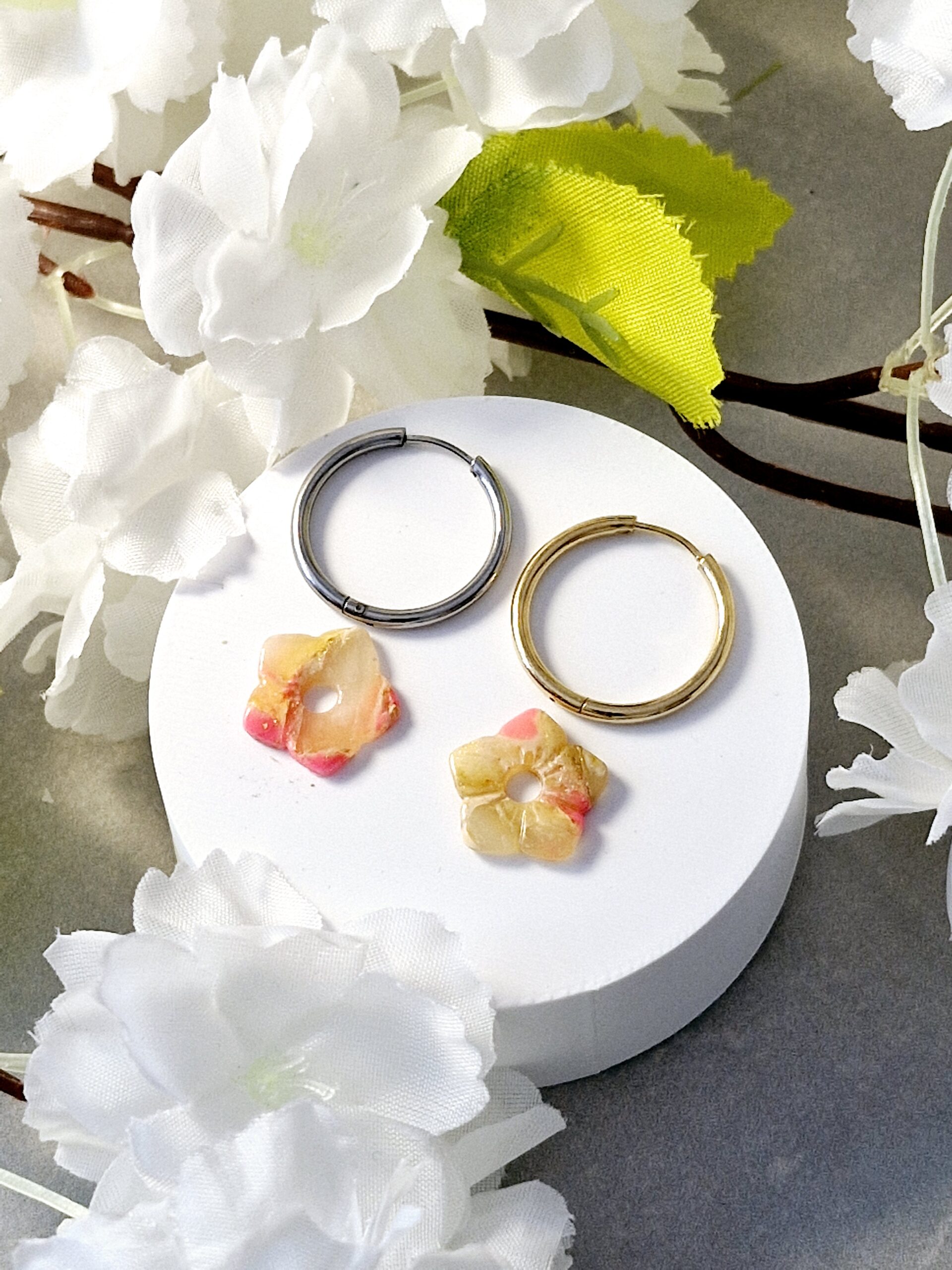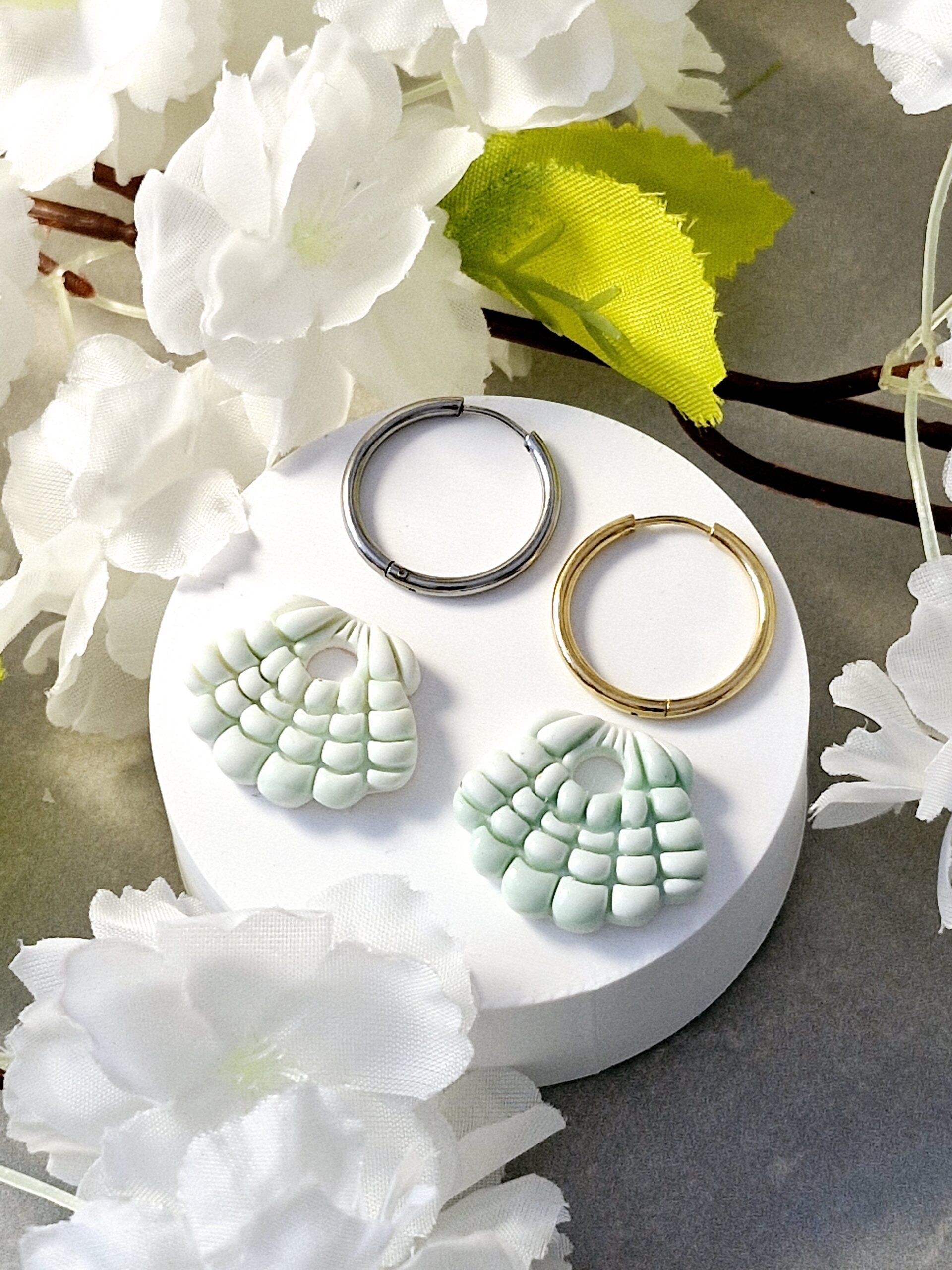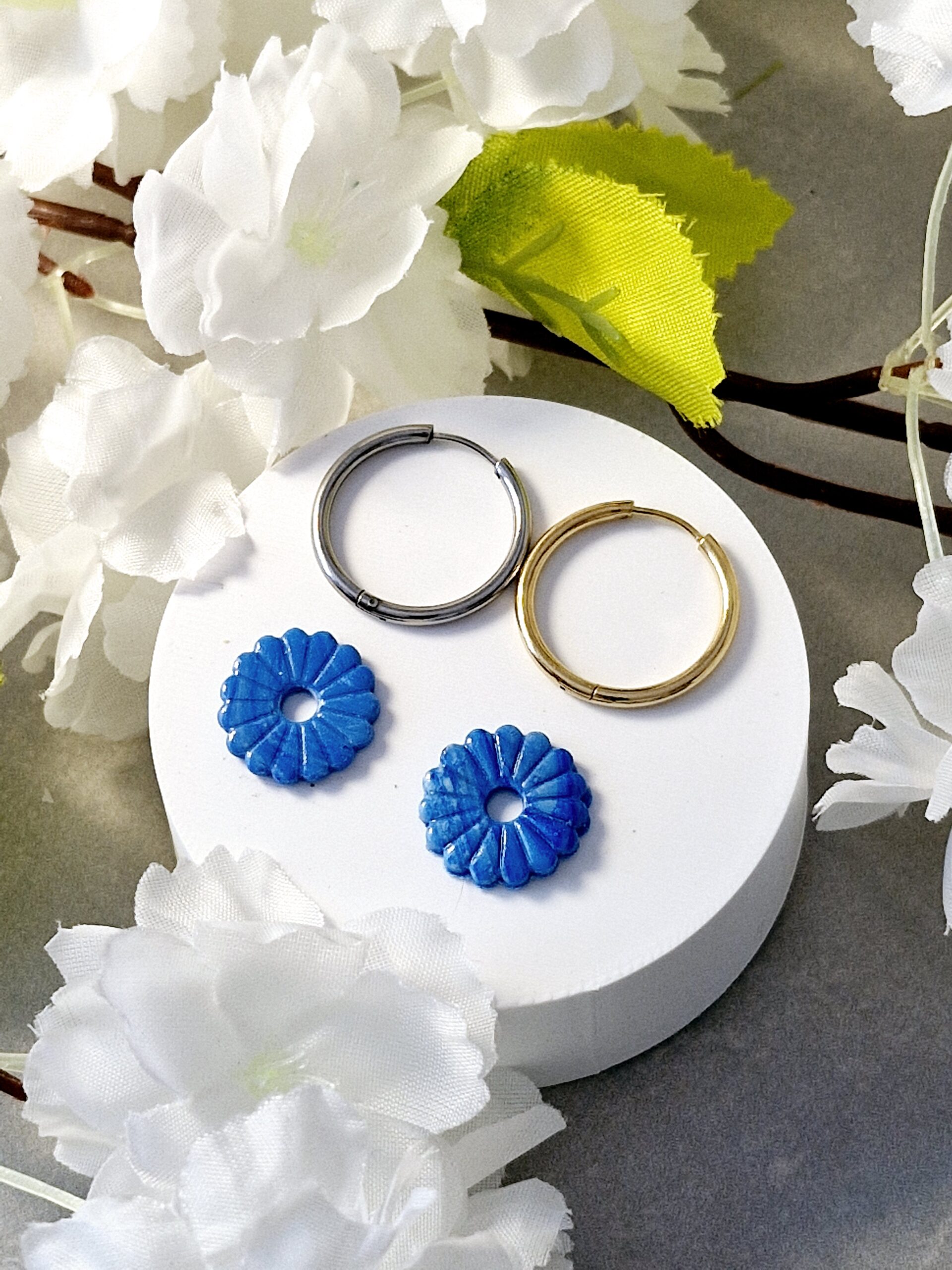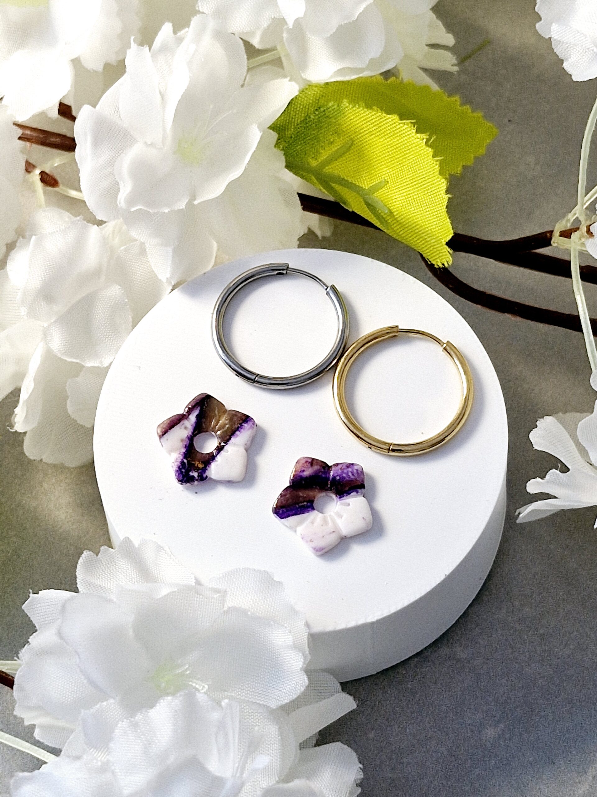 Ces pampilles sont réalisées à la main en pâte polymère, légères et agréables à porter.
