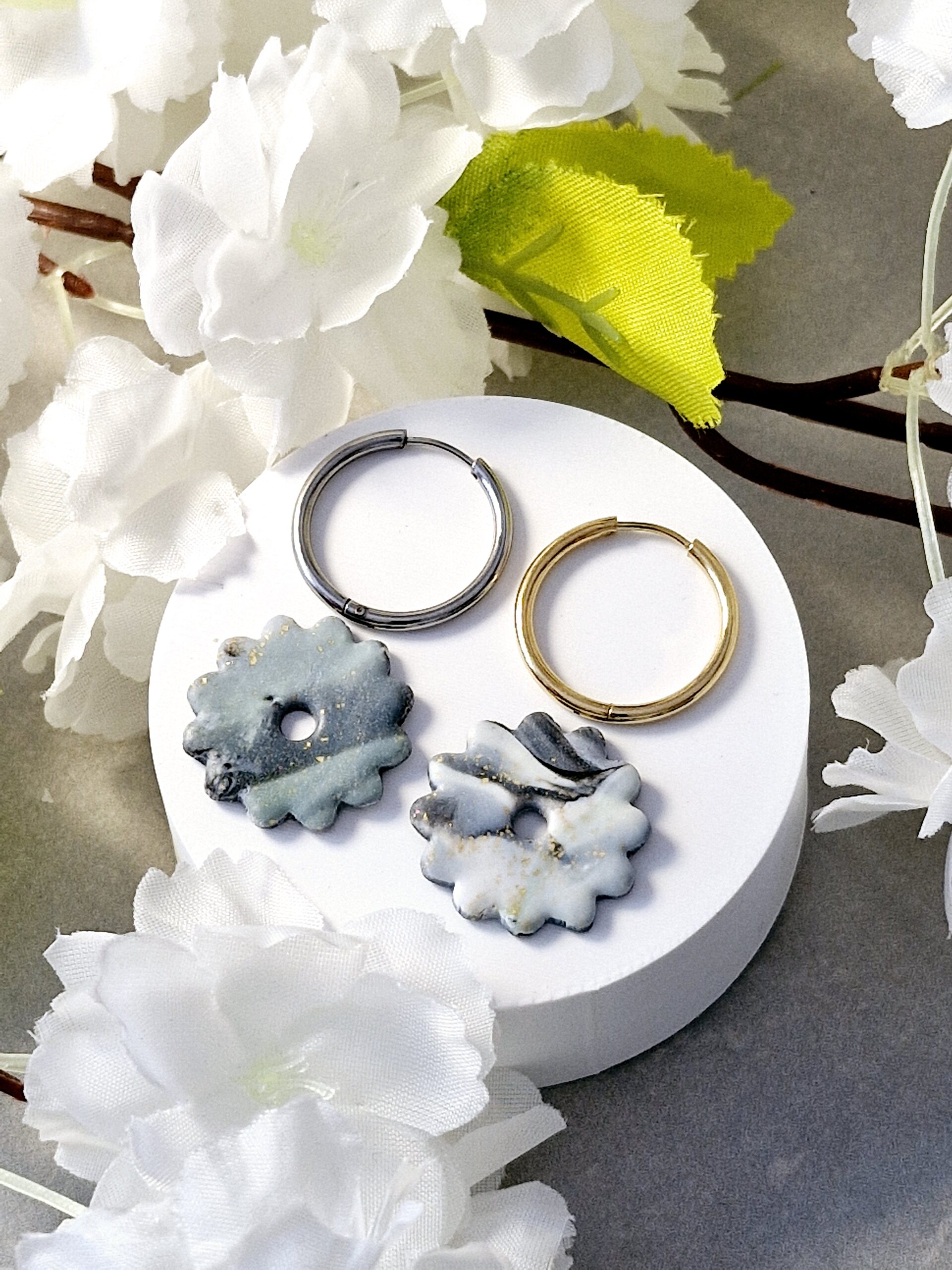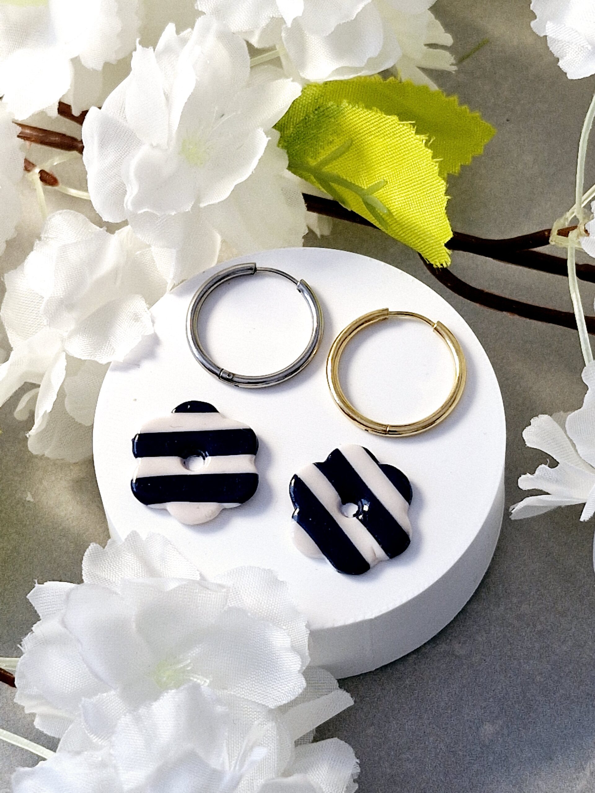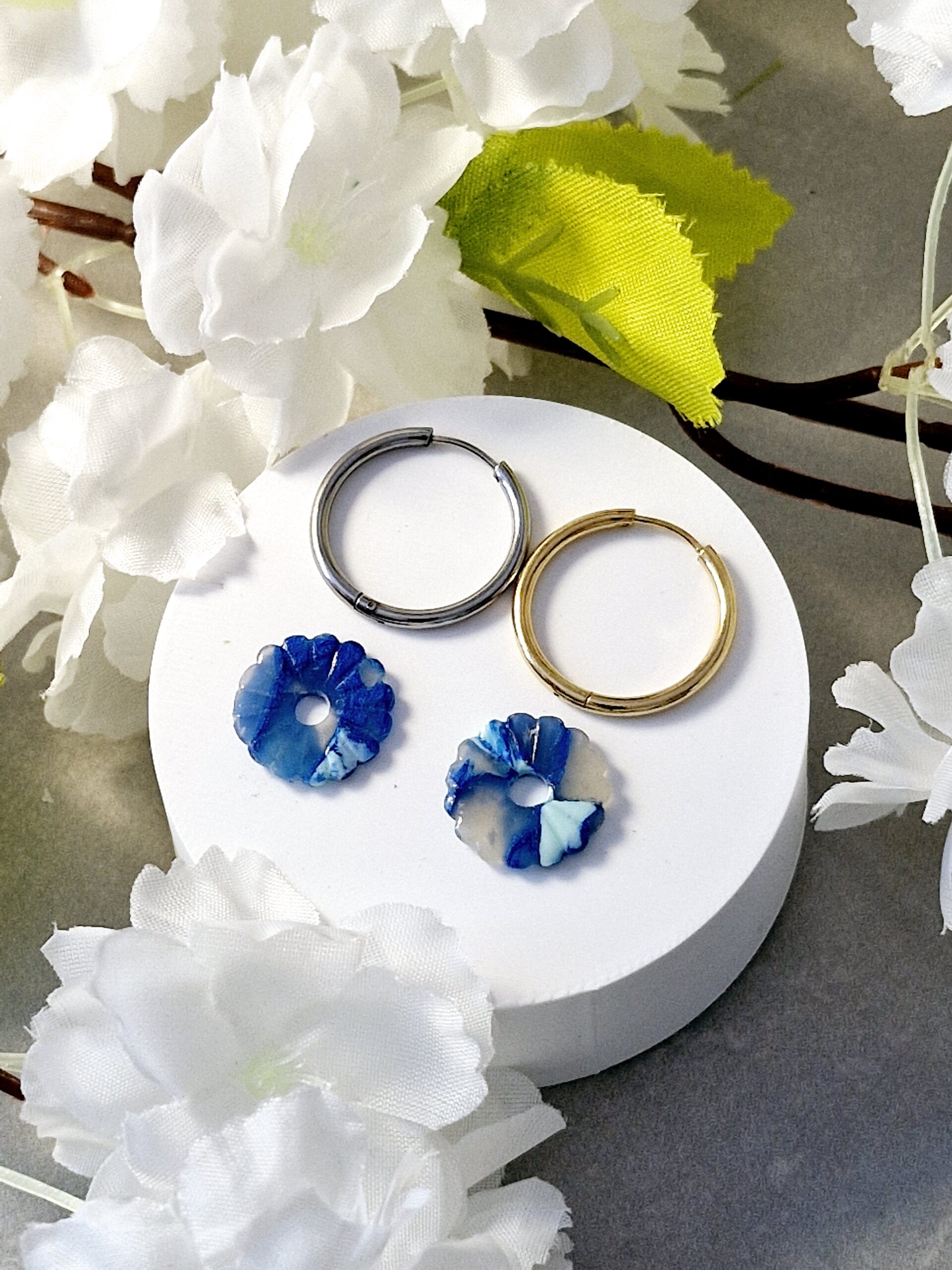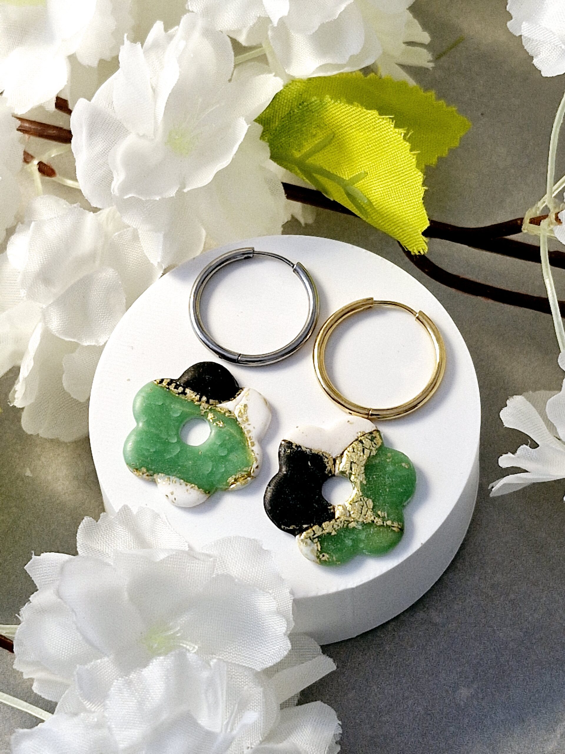 Ces pampilles sont réalisées à la main en pâte polymère, légères et agréables à porter.