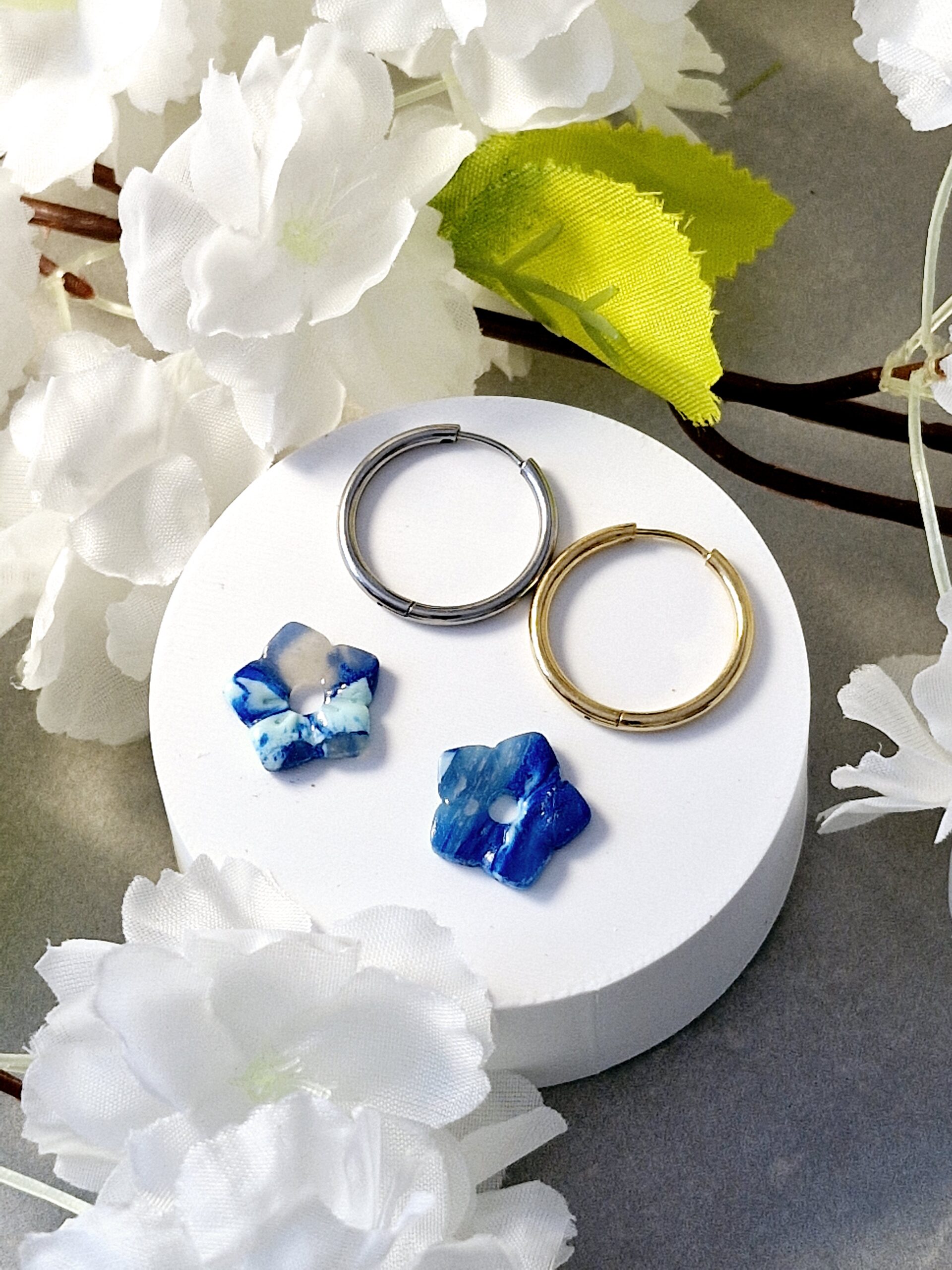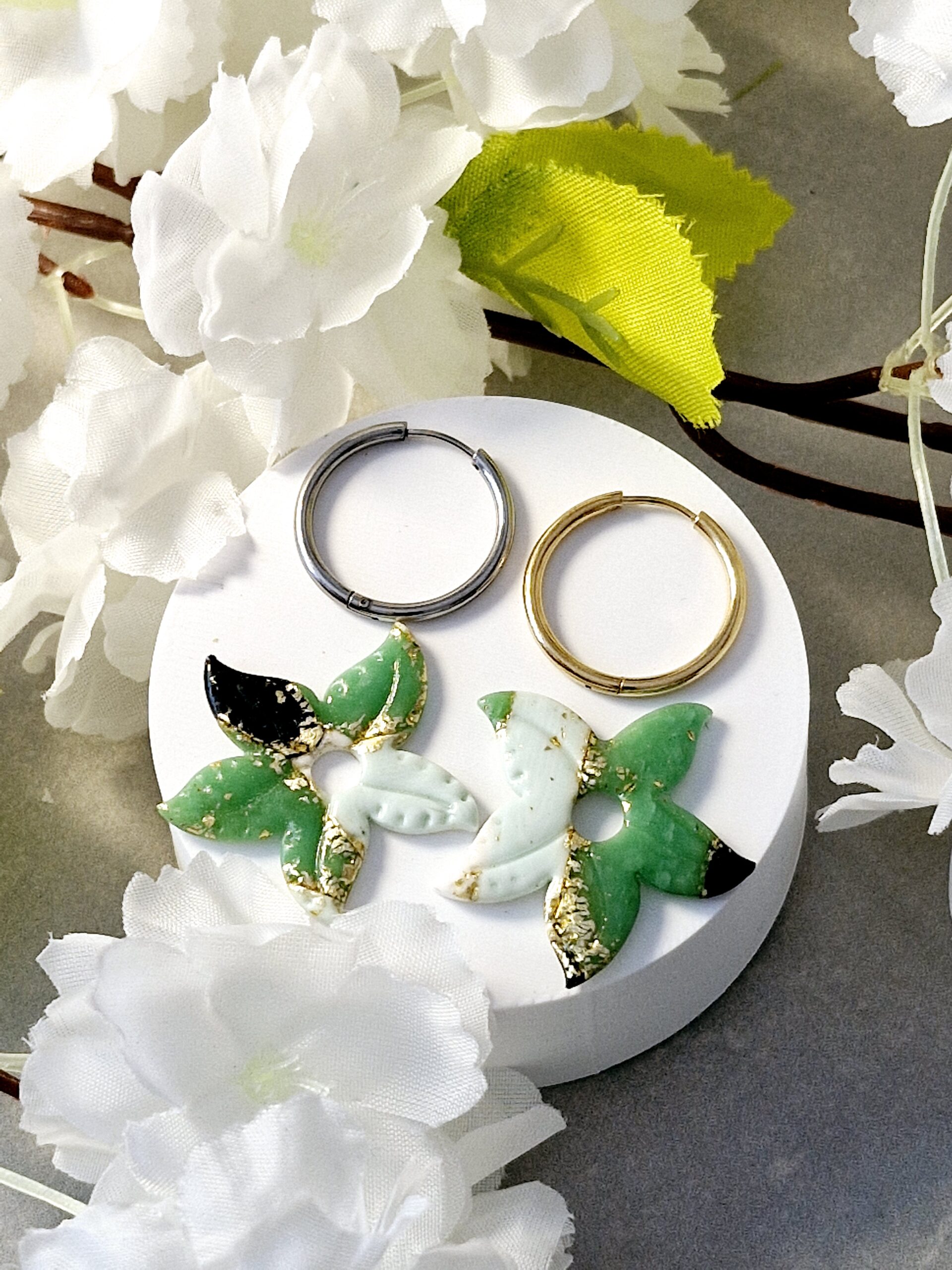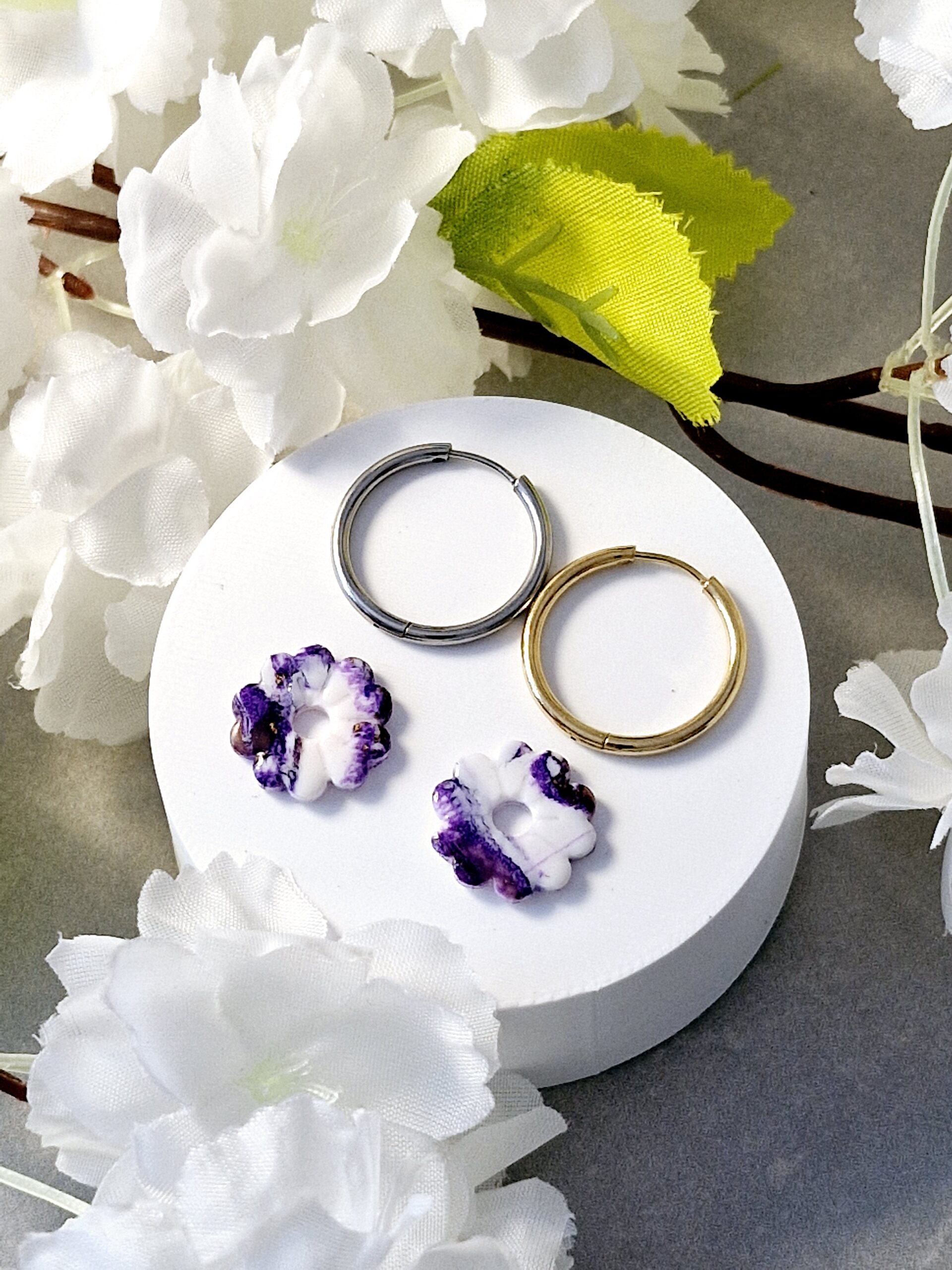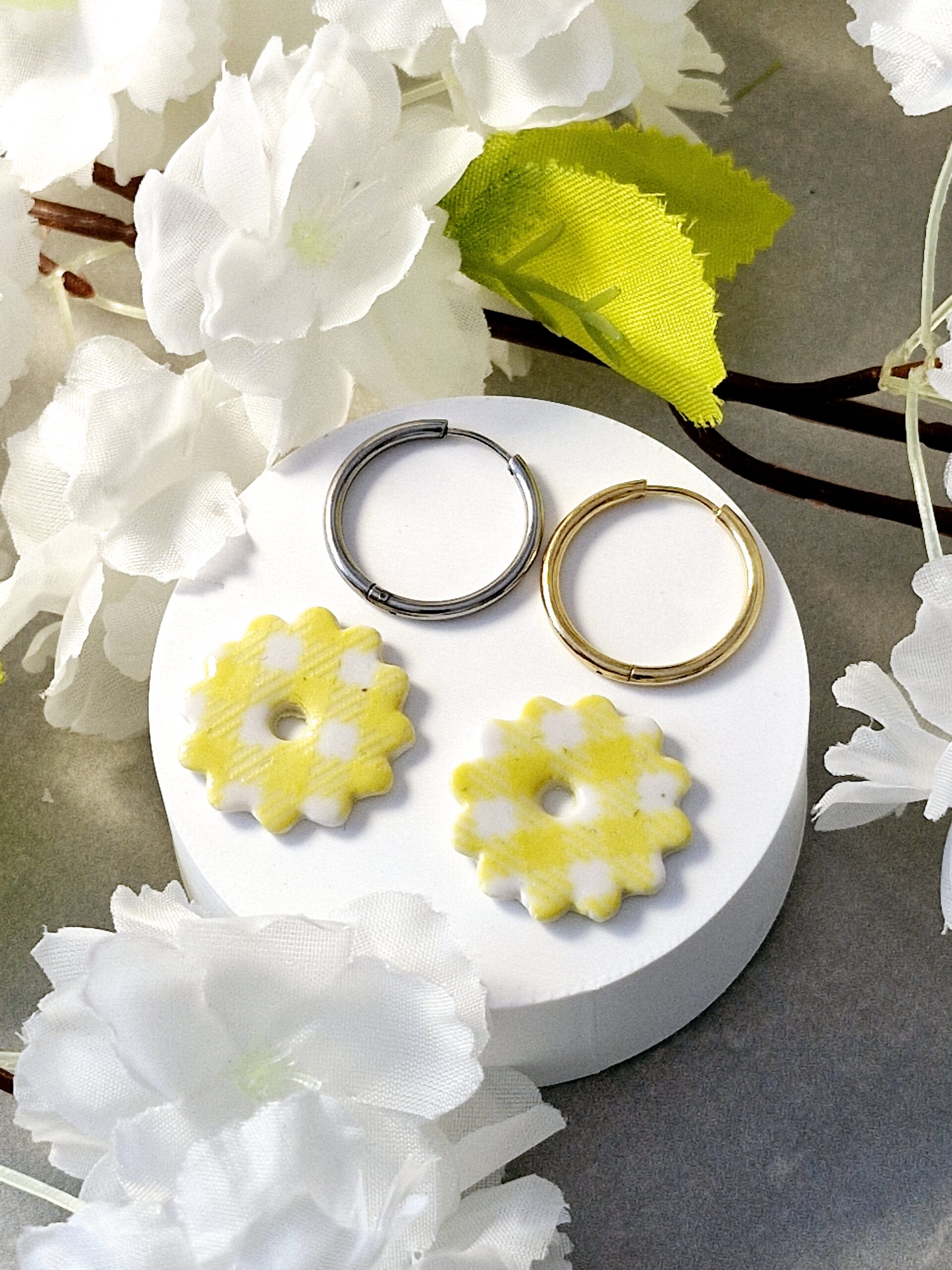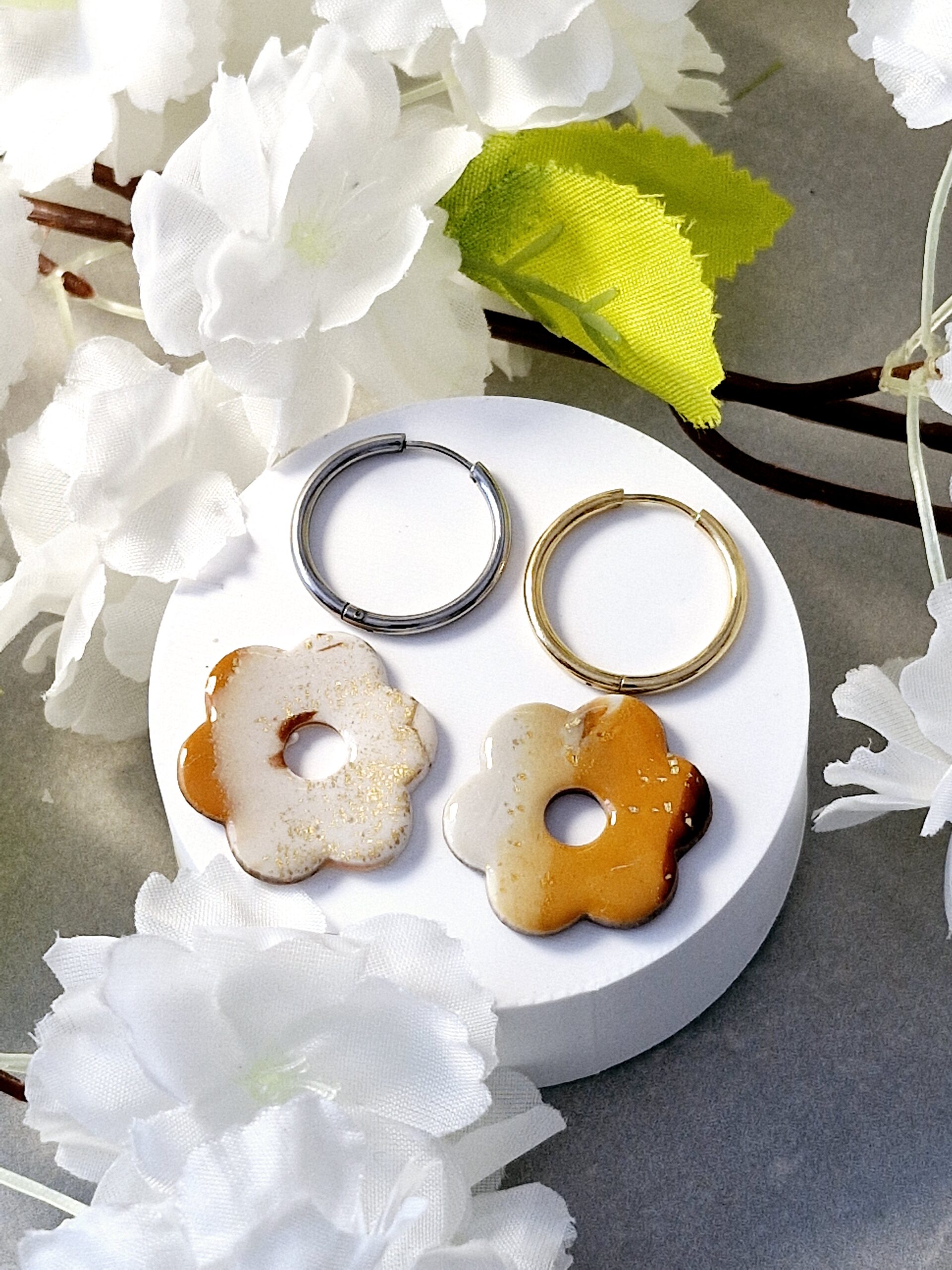 Ces pampilles sont réalisées à la main en pâte polymère, légères et agréables à porter.