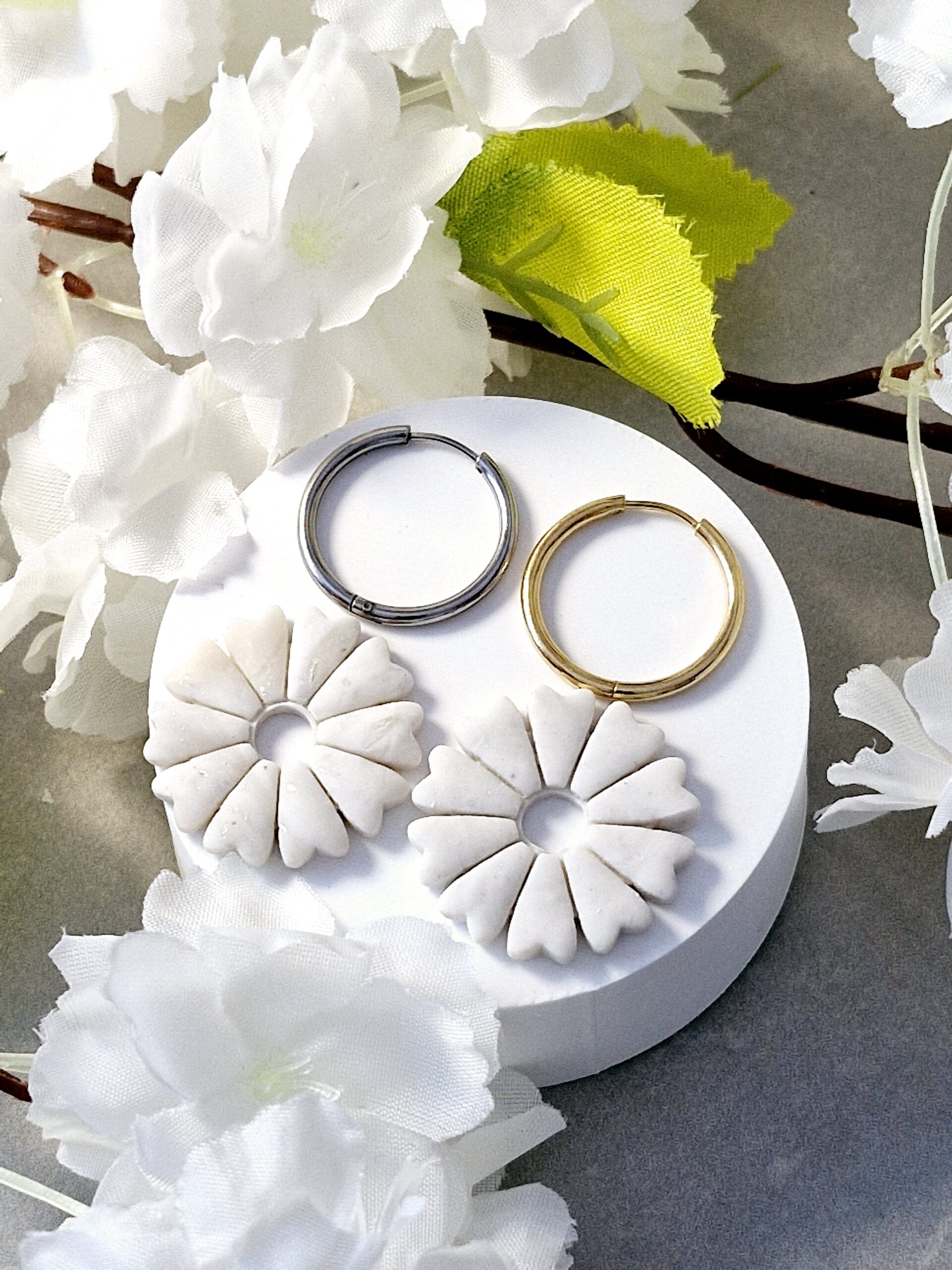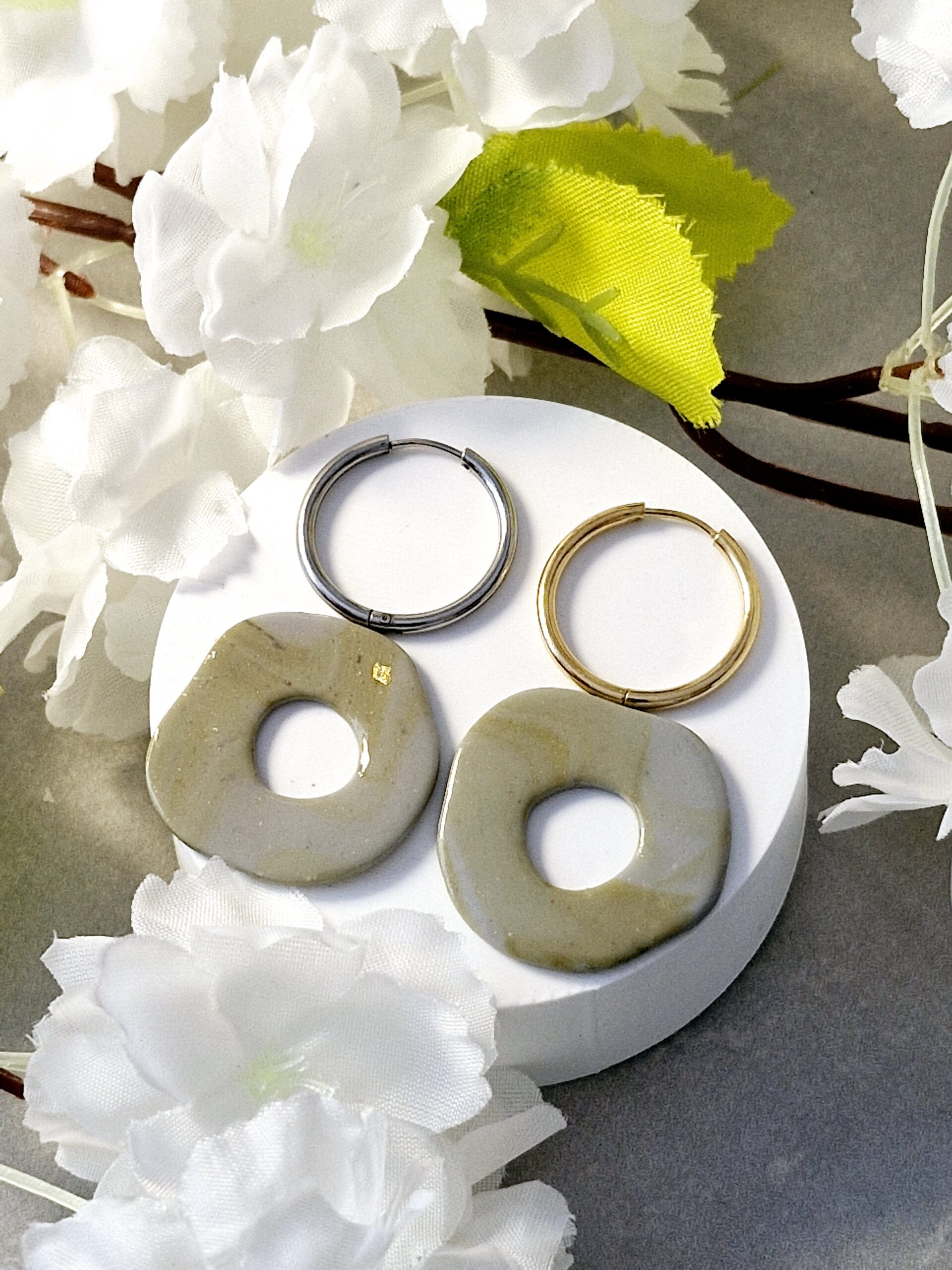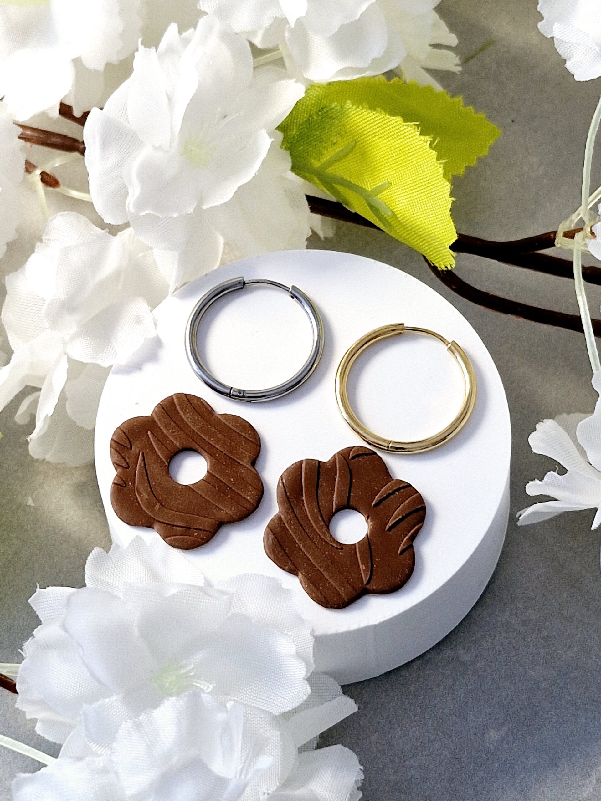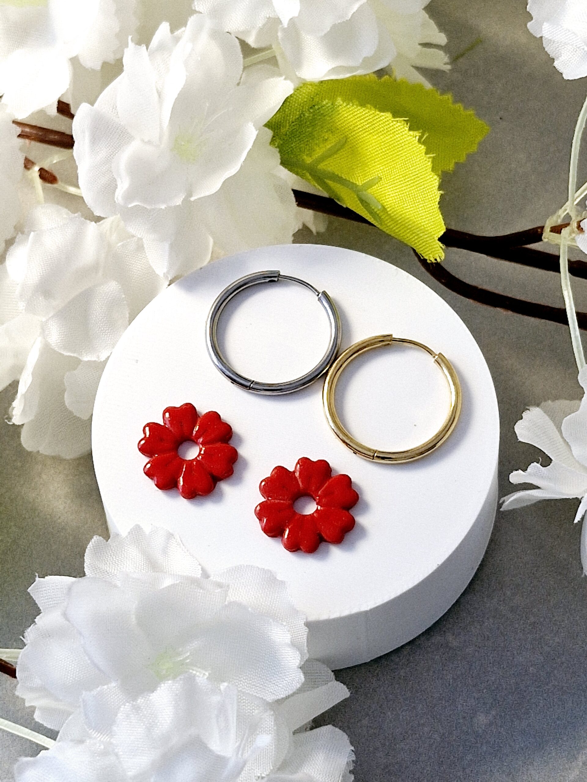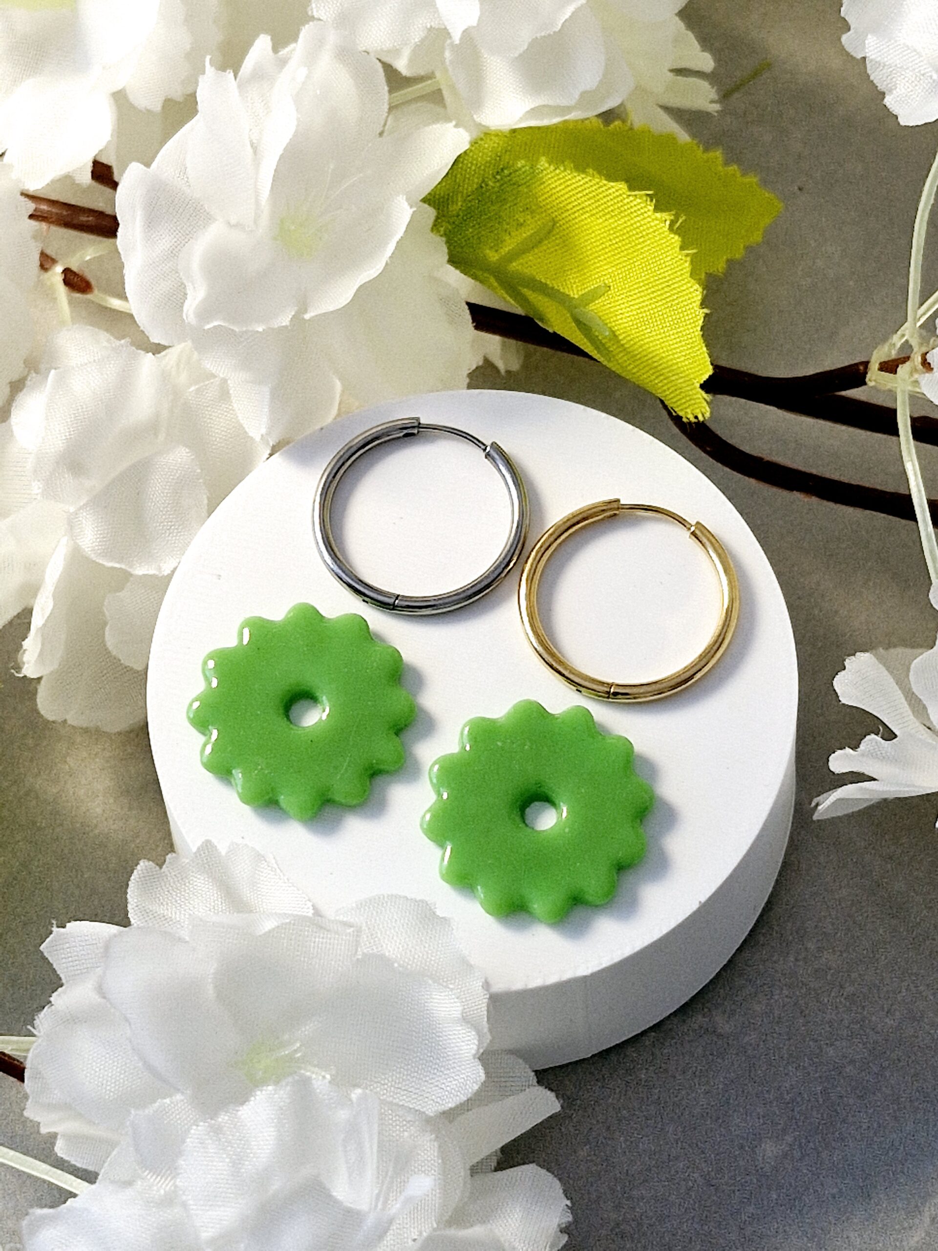 Ces pampilles sont réalisées à la main en pâte polymère, légères et agréables à porter.