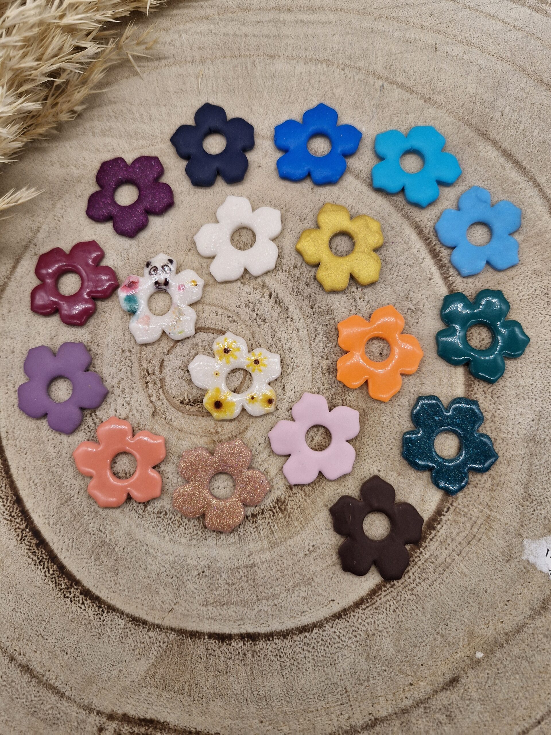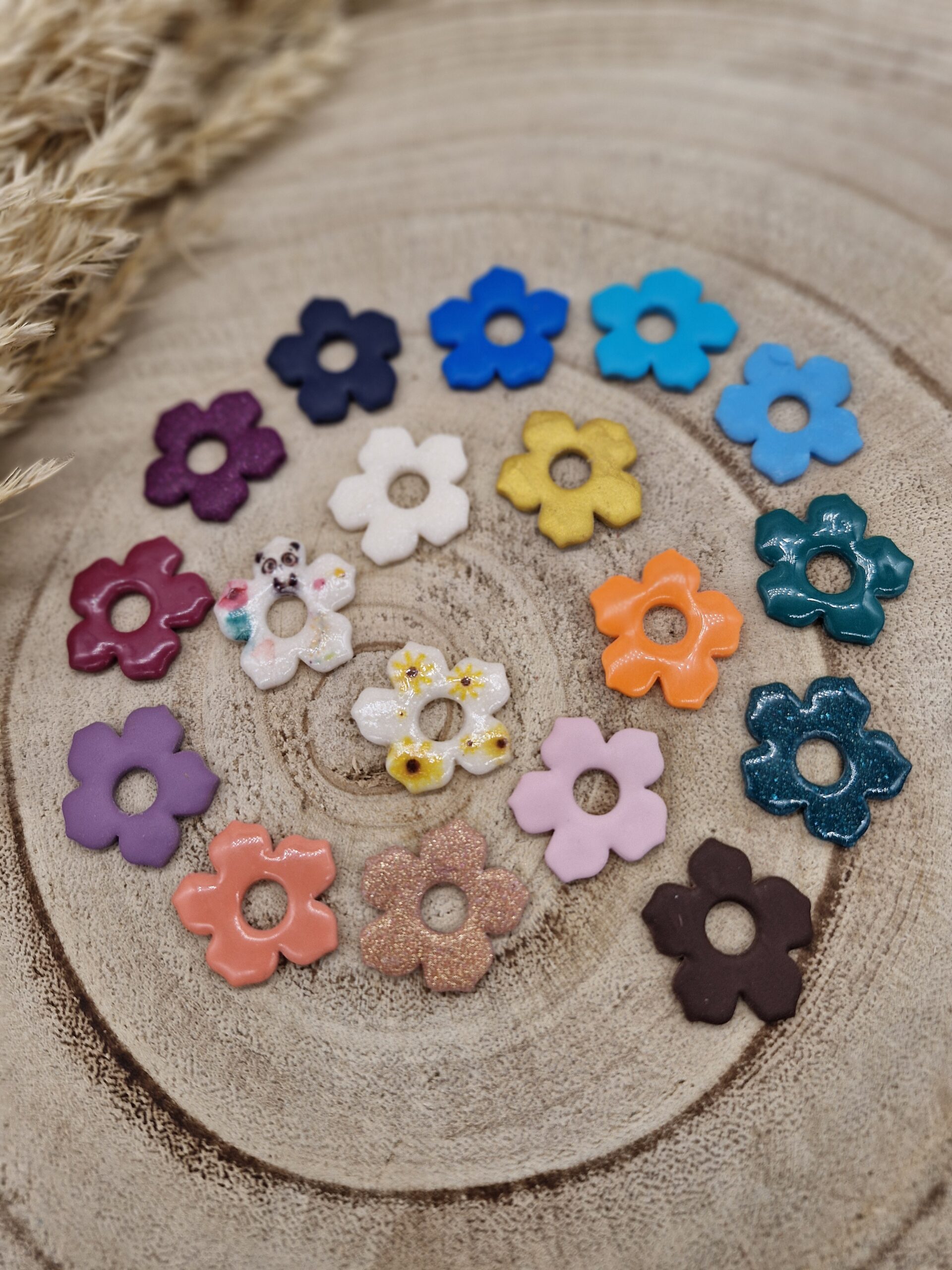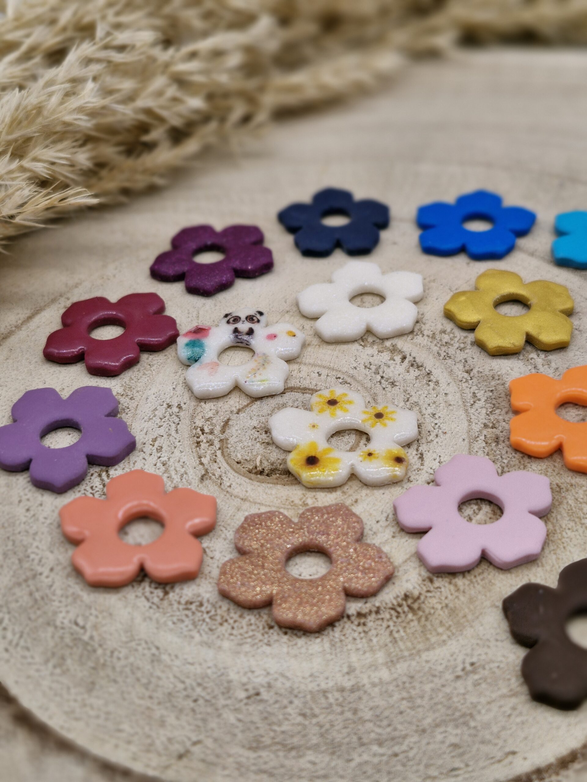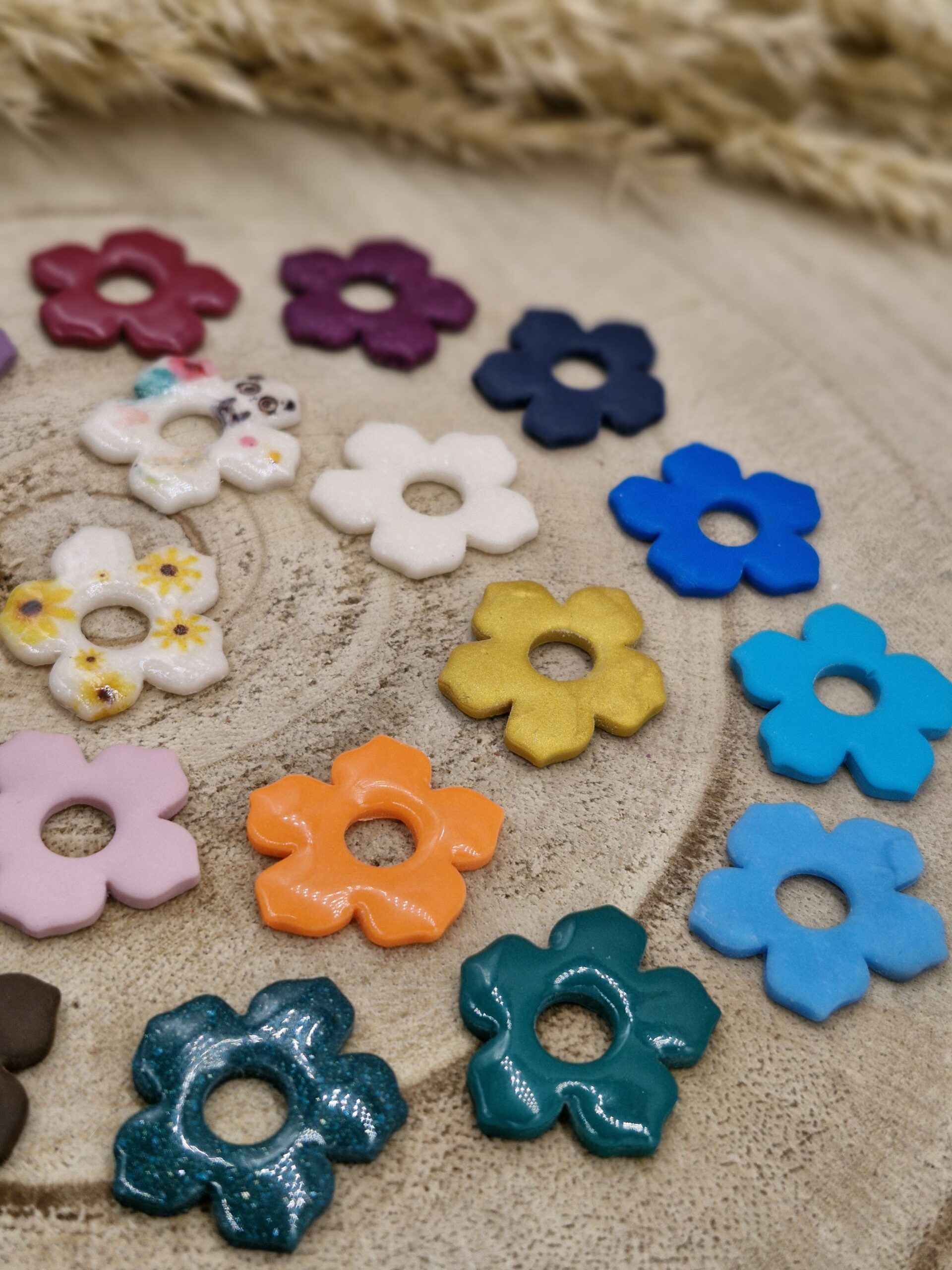 Ces pampilles en formes de fleurs sont réalisées à la main en pâte polymère, légères et agréables à porter.