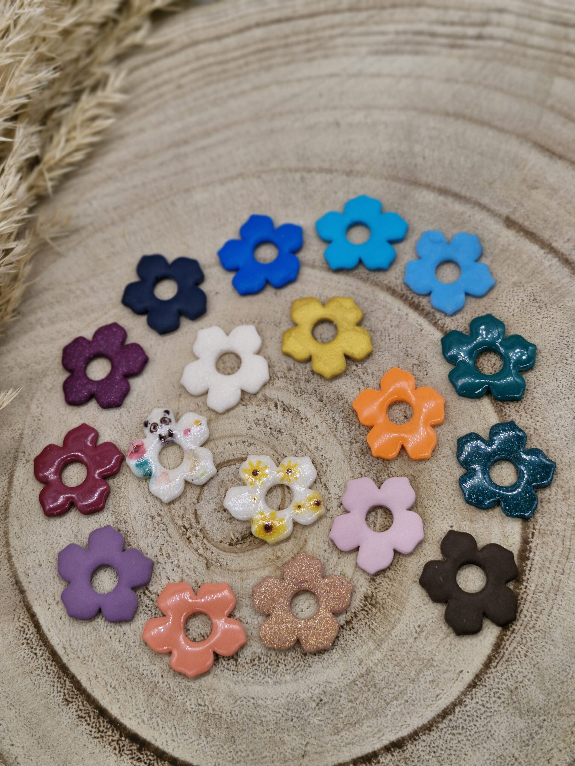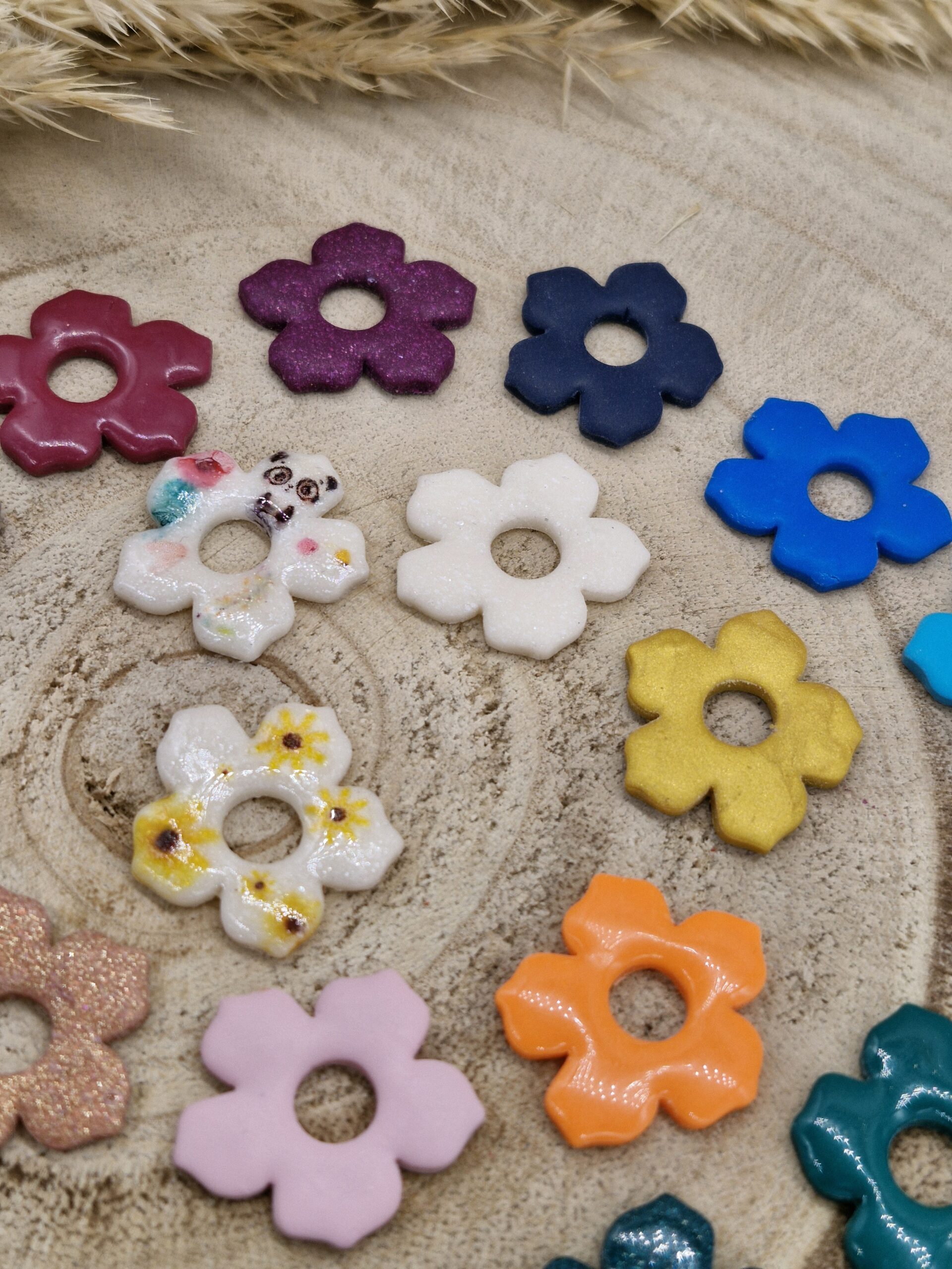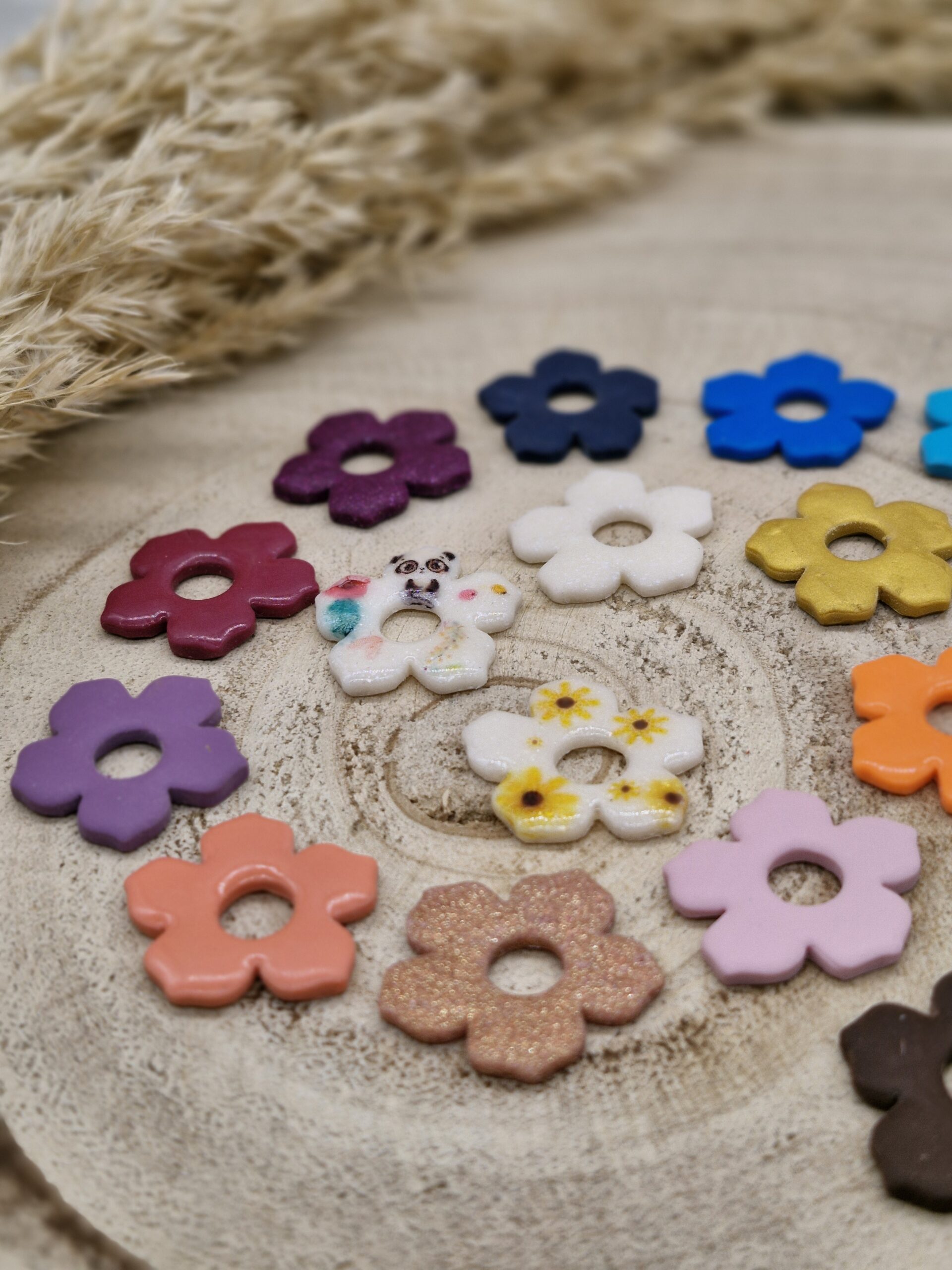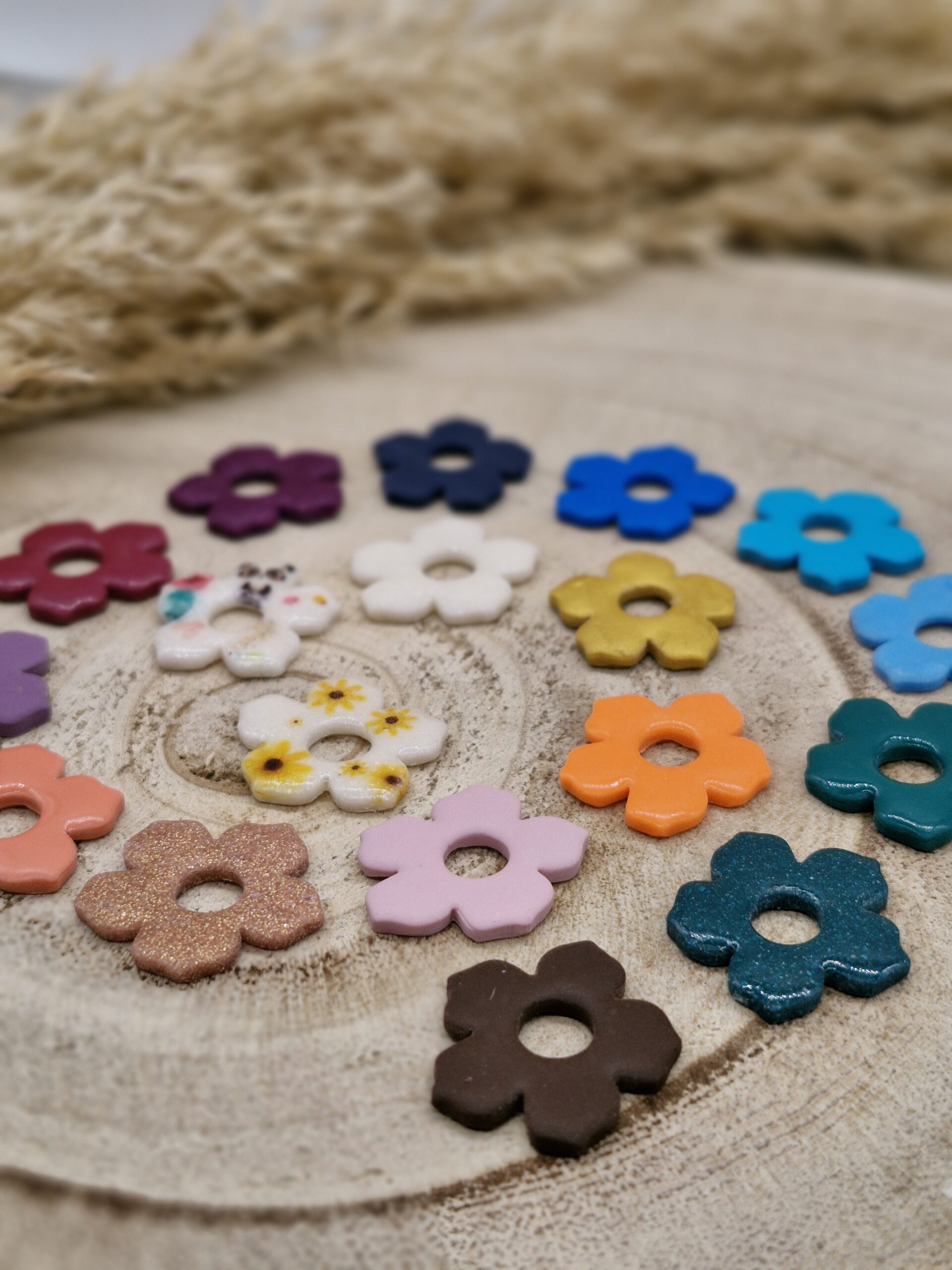 Ces pampilles en formes de fleurs sont réalisées à la main en pâte polymère, légères et agréables à porter.