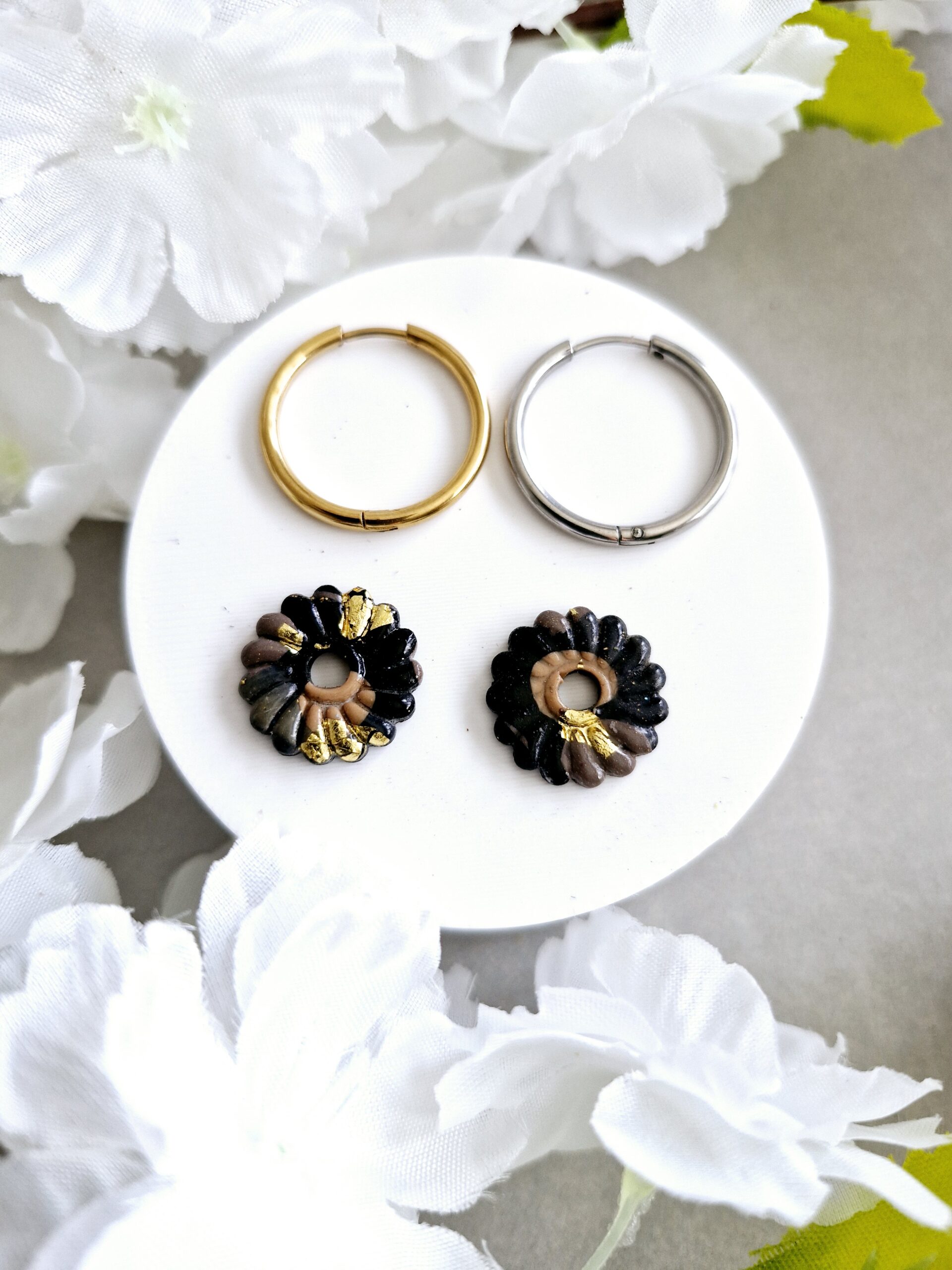 Ces pampilles en formes de fleurs sont réalisées à la main en pâte polymère, légères et agréables à porter.
