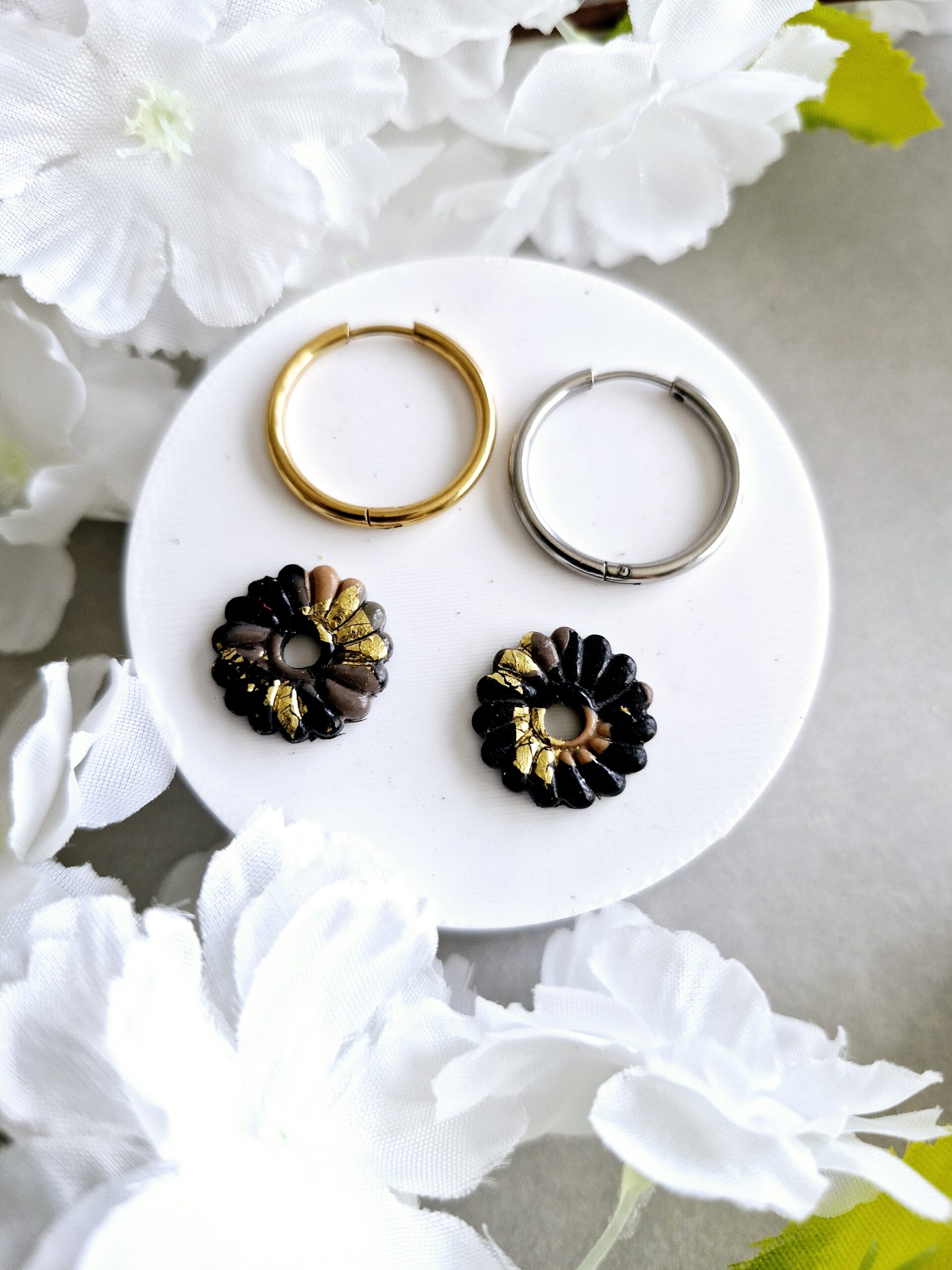Ces pampilles en formes de fleurs sont réalisées à la main en pâte polymère, légères et agréables à porter.